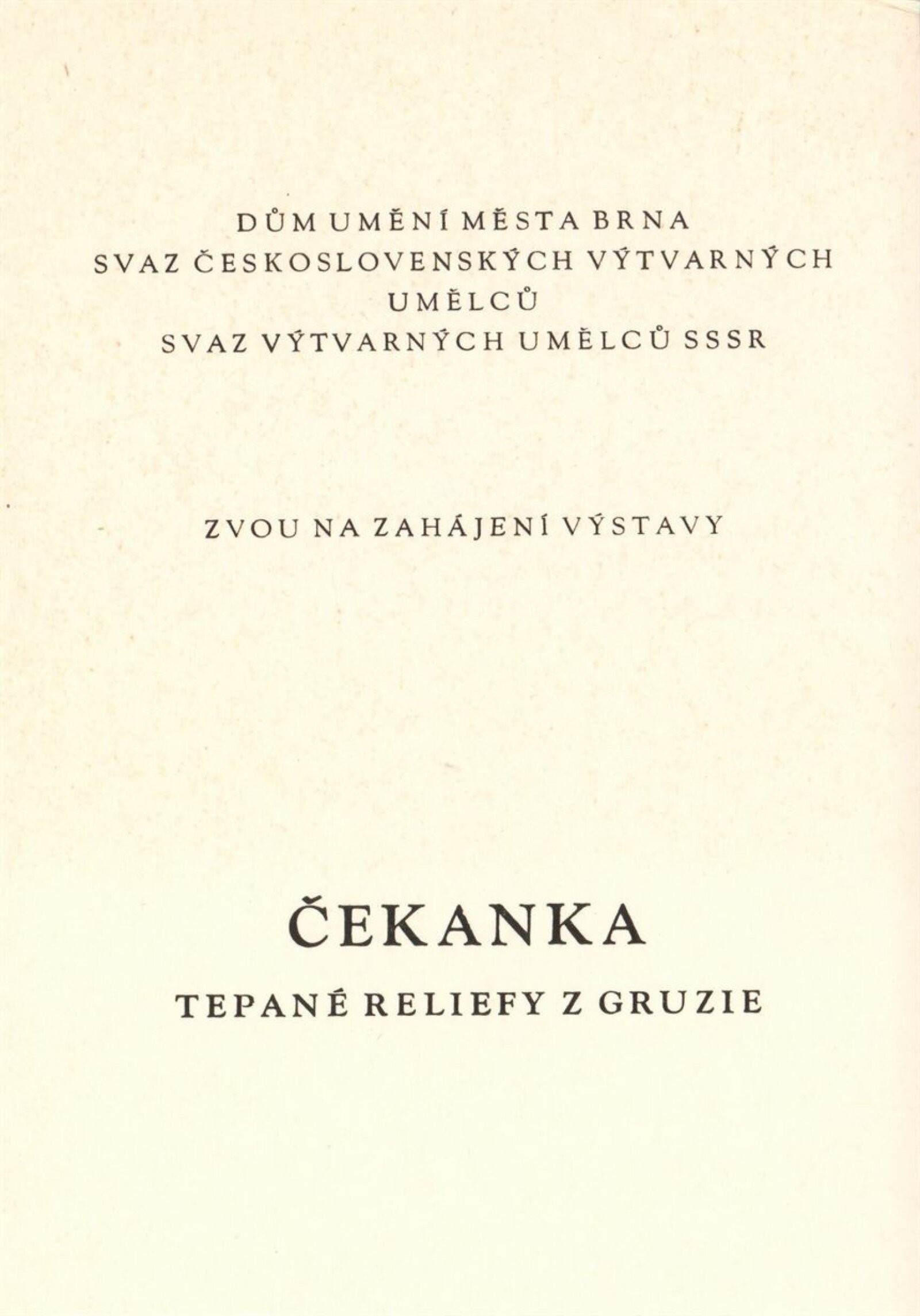 Čekanka. Tepané reliéfy z Gruzie: Dům pánů z Kunštátu 11. 11. – 9. 12. 1979 / Text Natela Lalua. - Brno: DUmB, - 12 s., obr. DPK 720; MZK; MG
