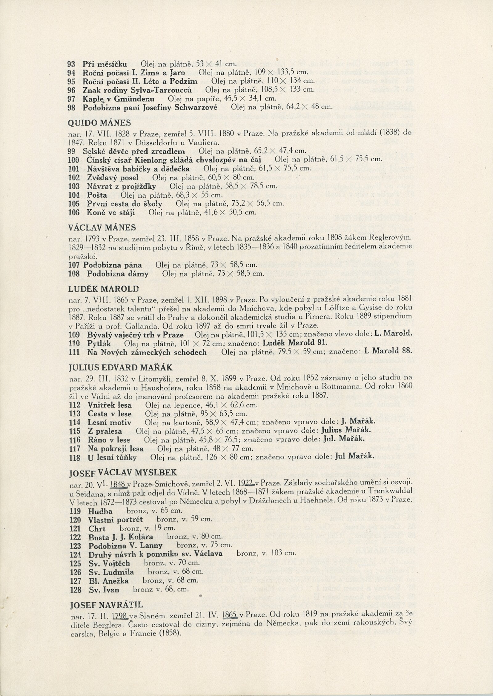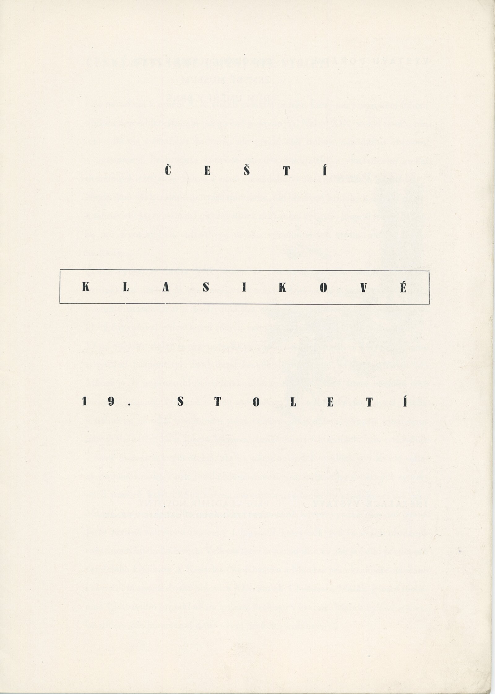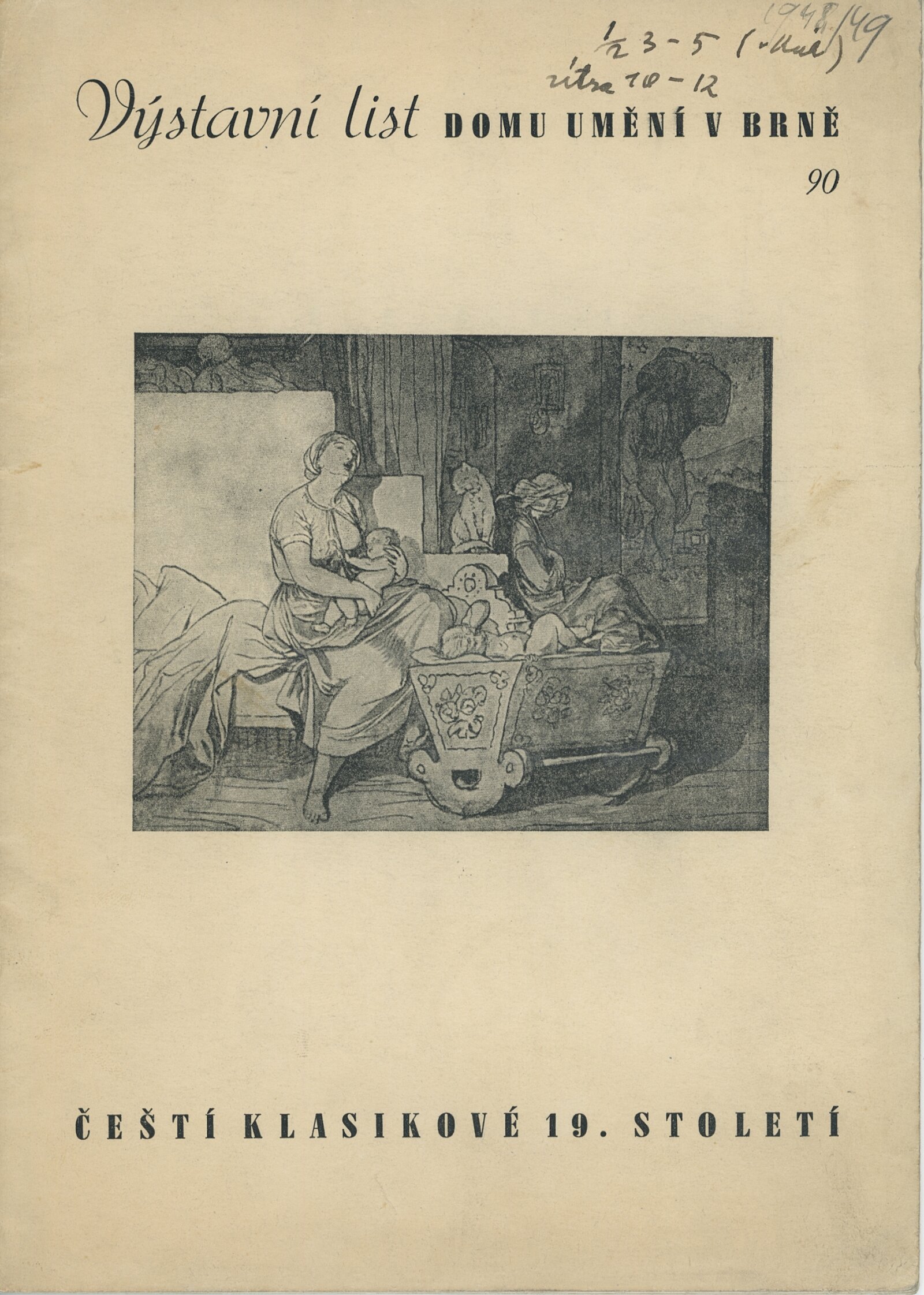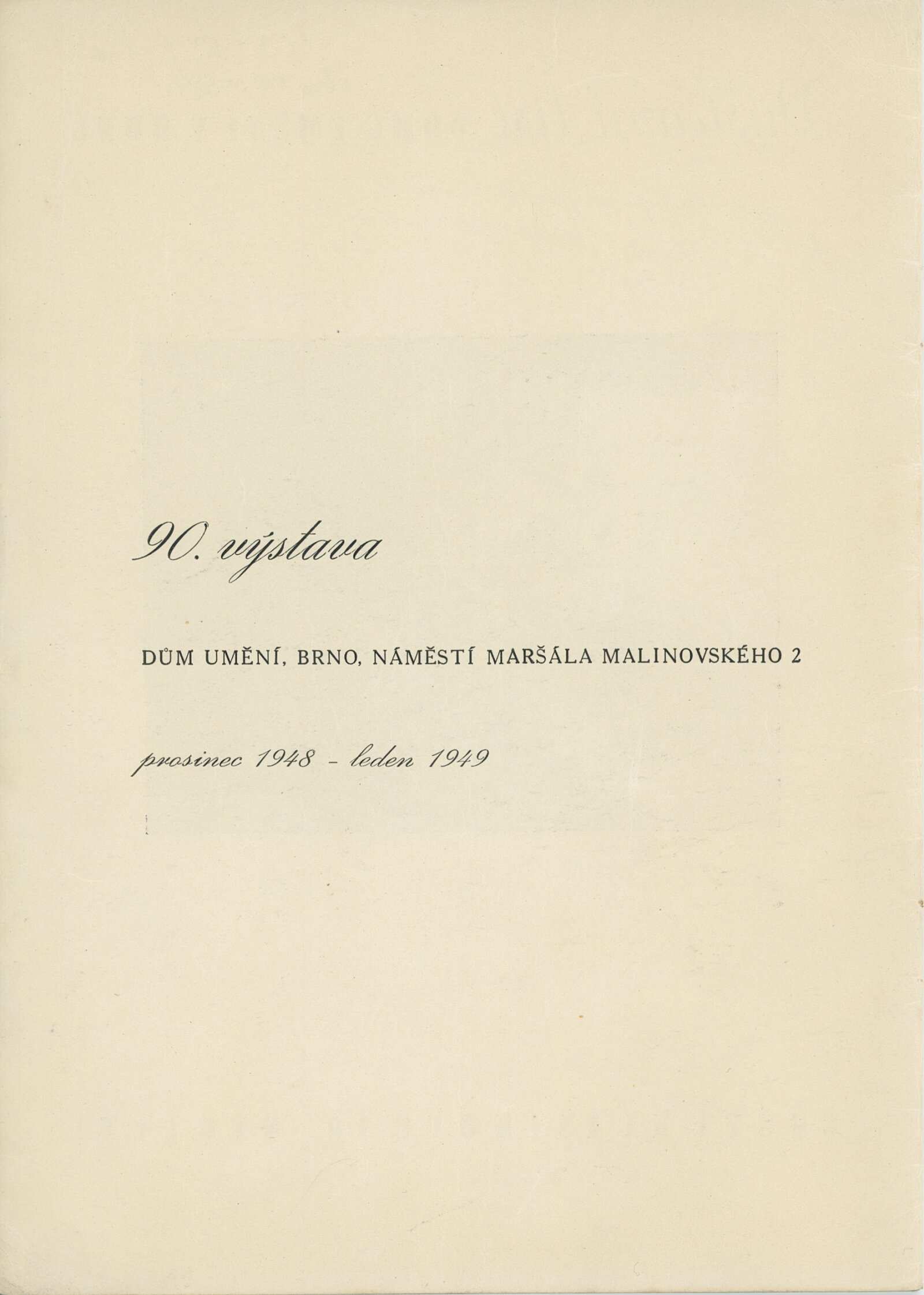Čeští klasikové 19. století. 90. výstava (výstavní list): Dům umění, 5. 12. 1948 – 9. 1. 1949 / Text: L. K. – Brno: Dům umění, 1948. – 20 s., obr., životní data vystavujících umělců, DU 90. – MG