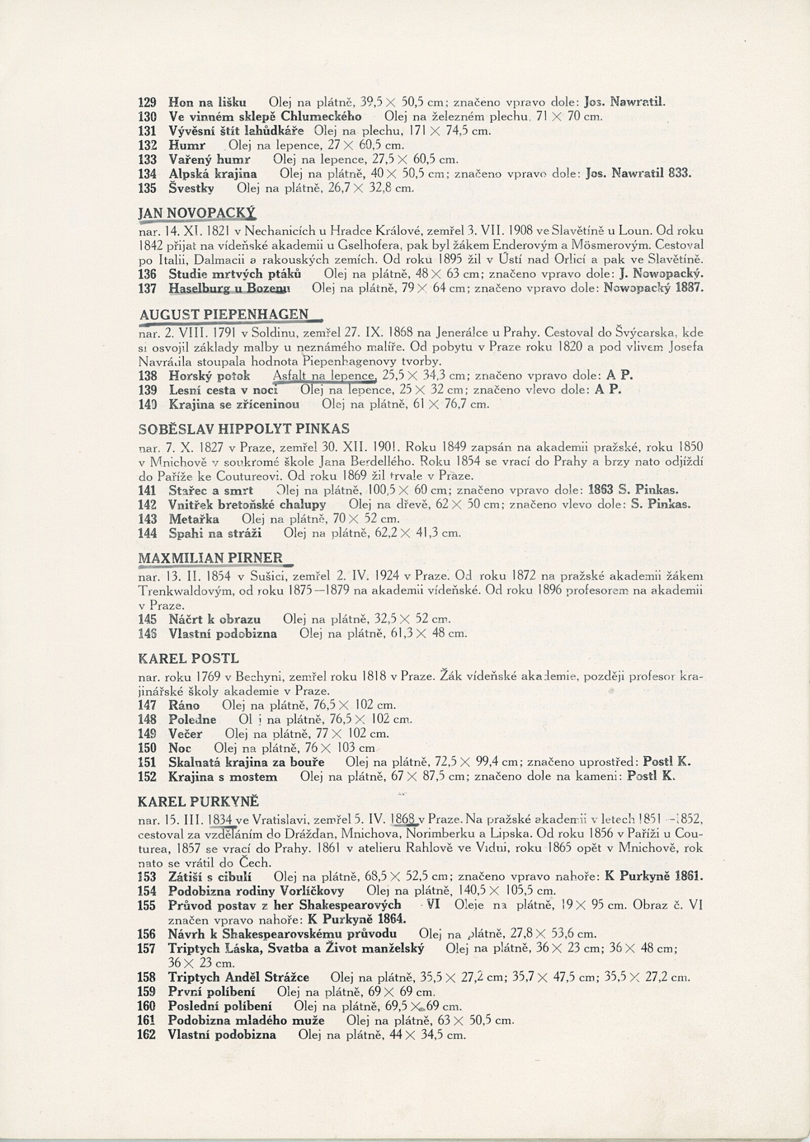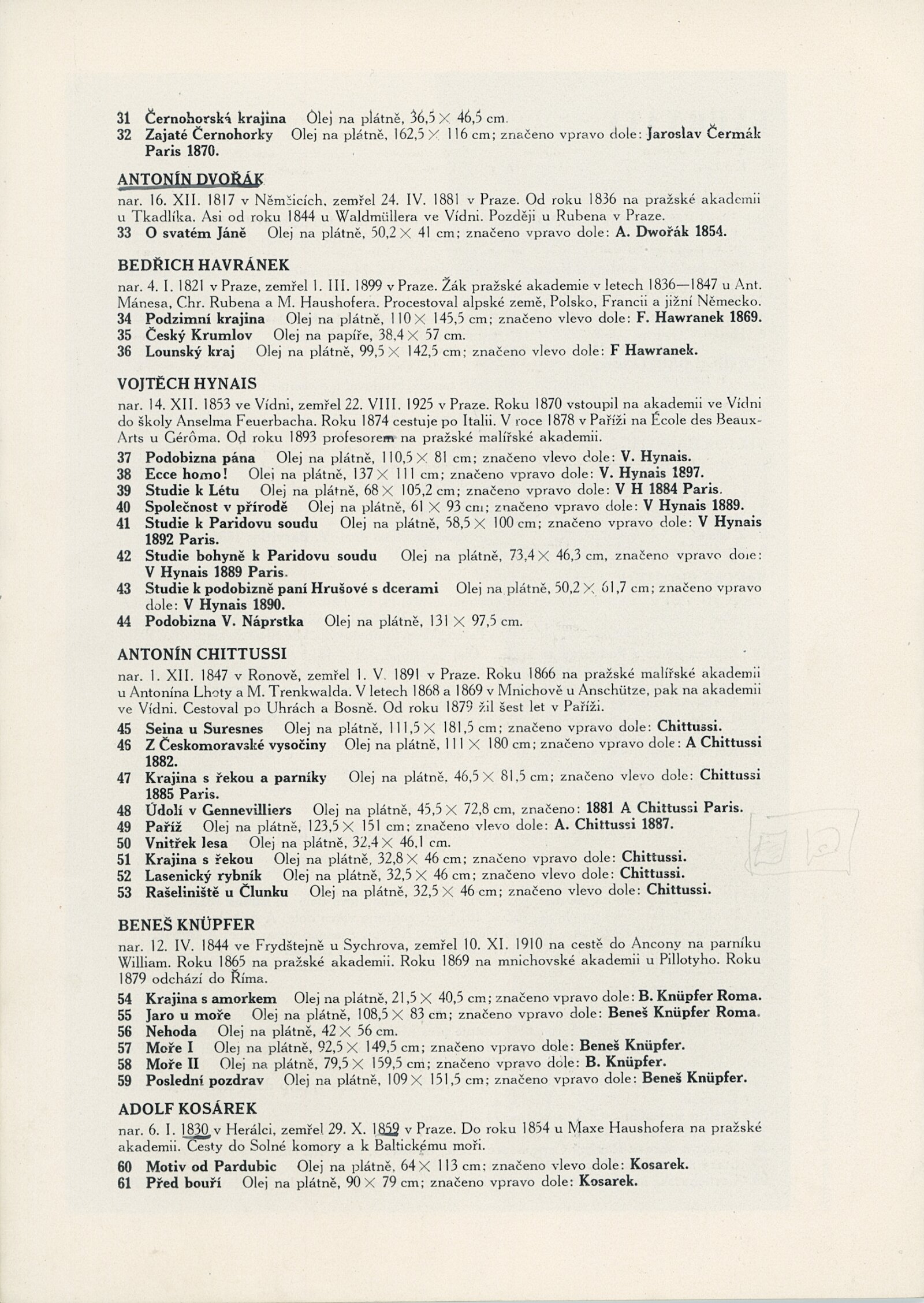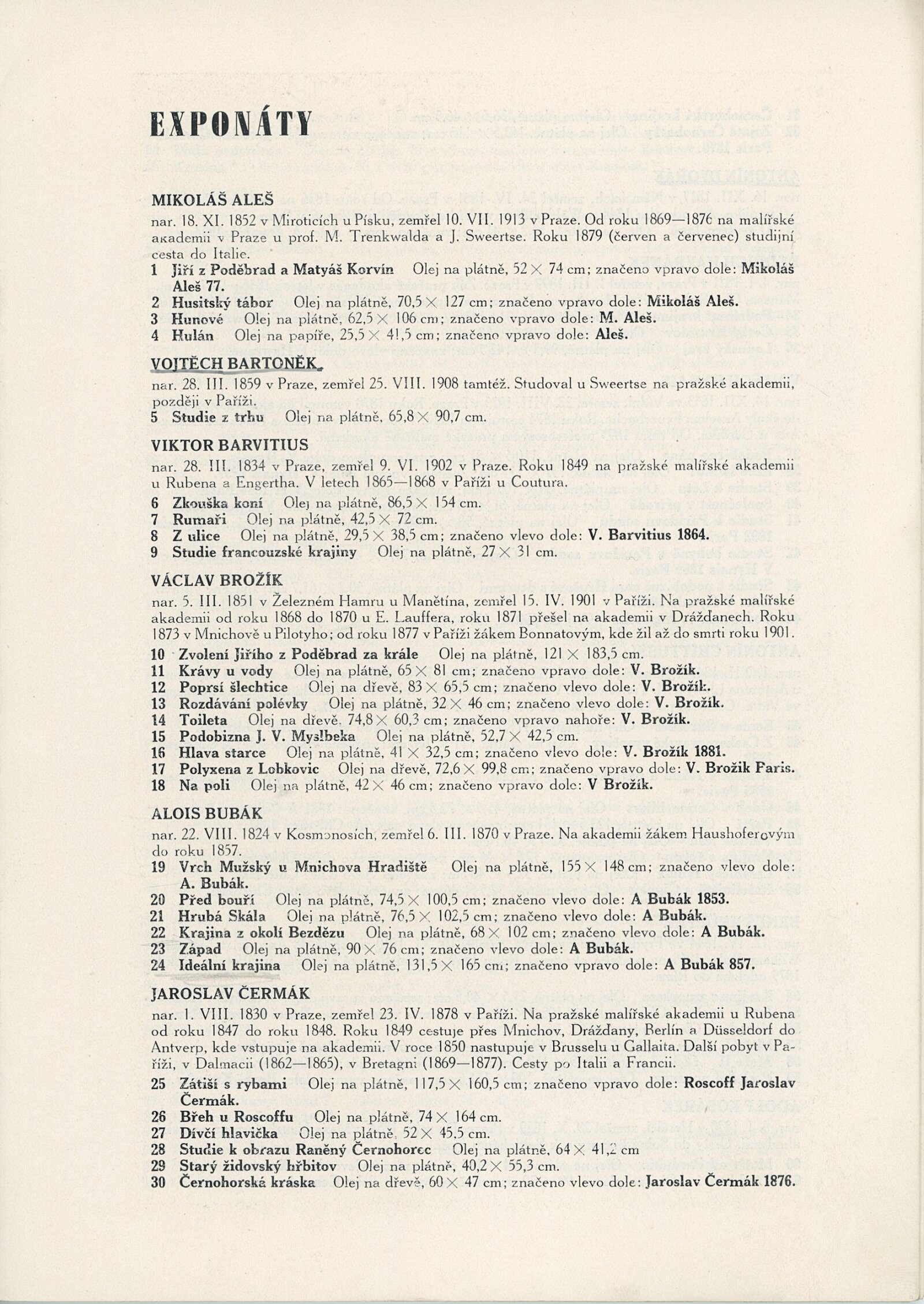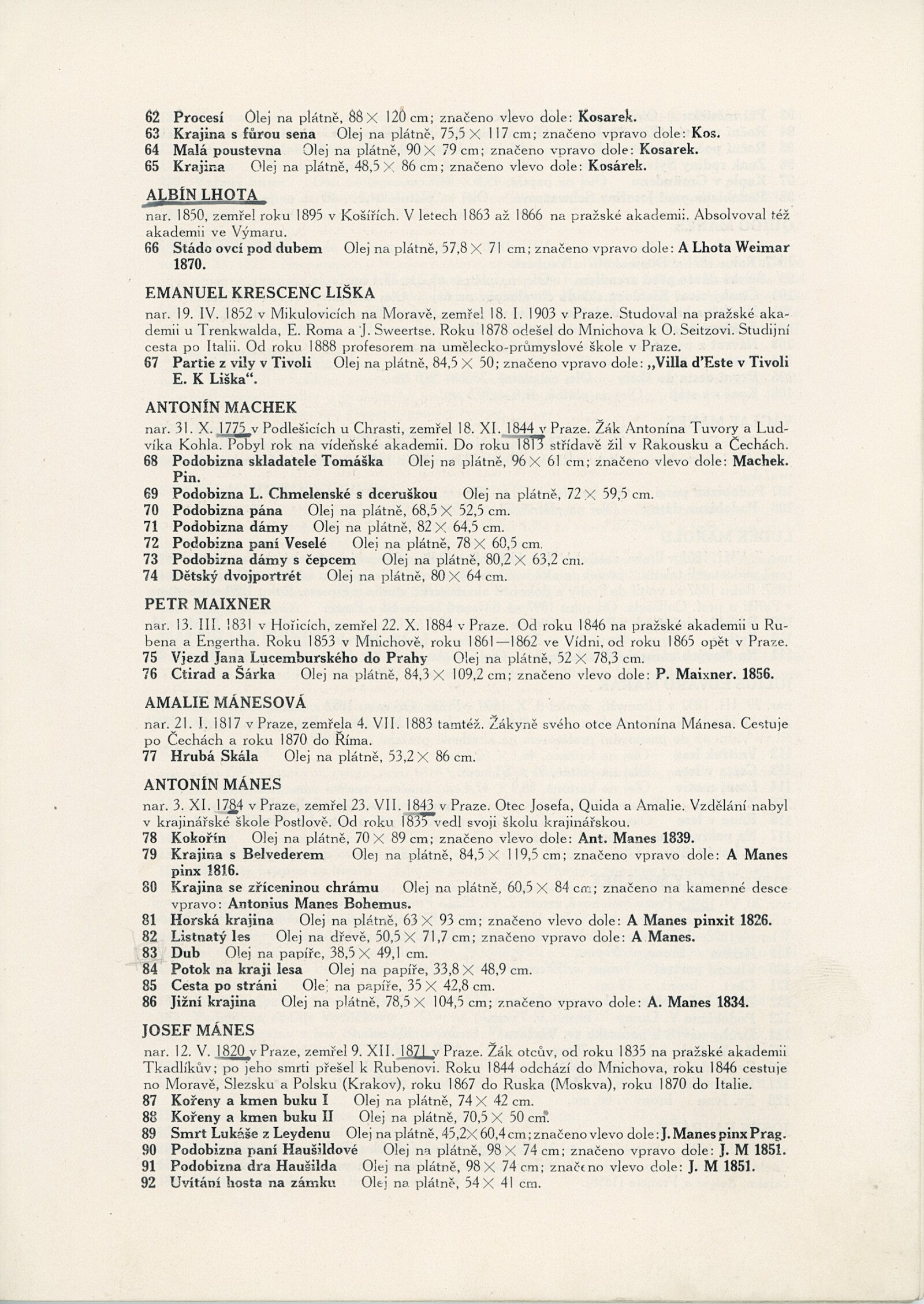 Čeští klasikové 19. století. 90. výstava (výstavní list): Dům umění, 5. 12. 1948 – 9. 1. 1949 / Text: L. K. – Brno: Dům umění, 1948. – 20 s., obr., životní data vystavujících umělců, DU 90. – MG