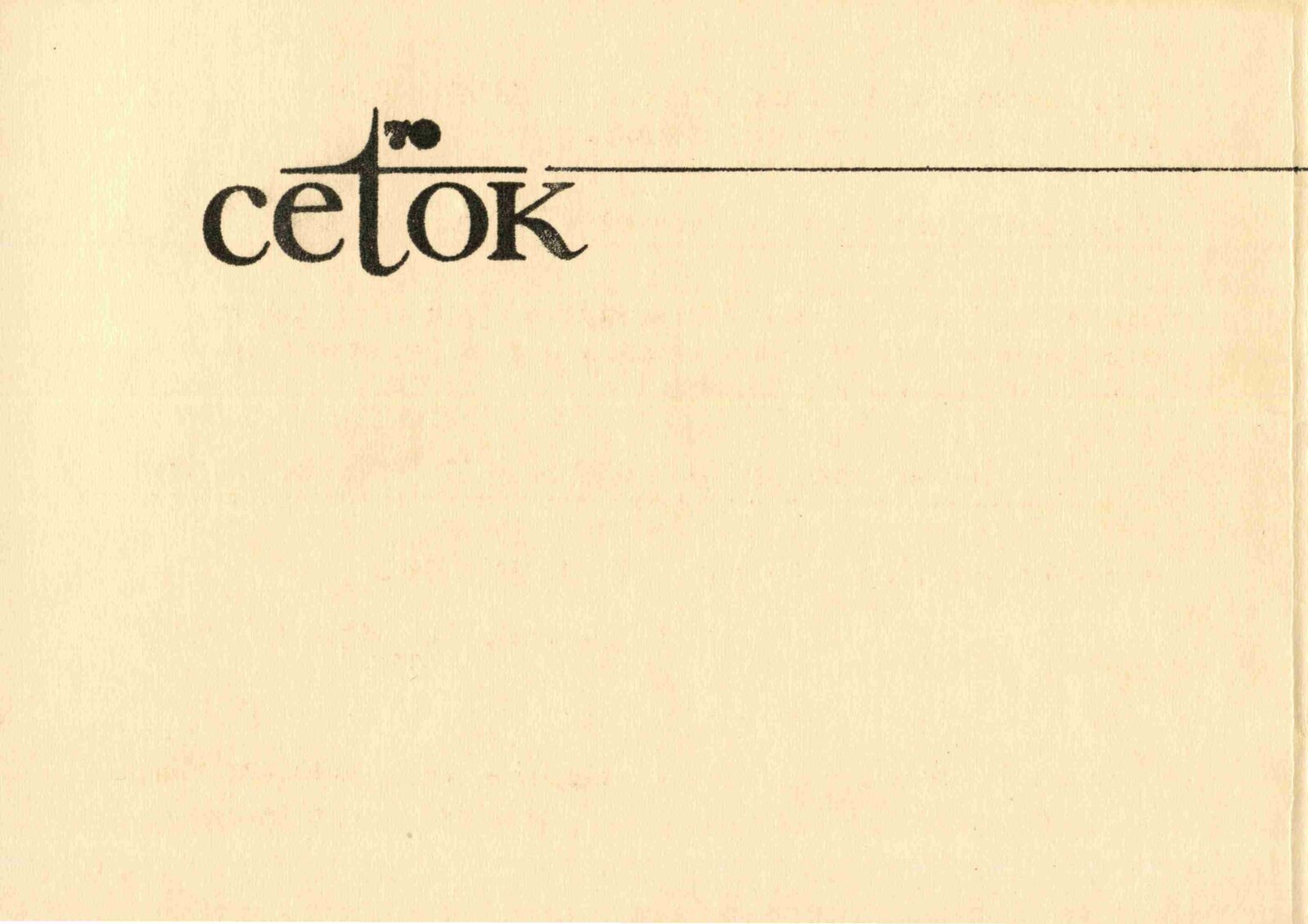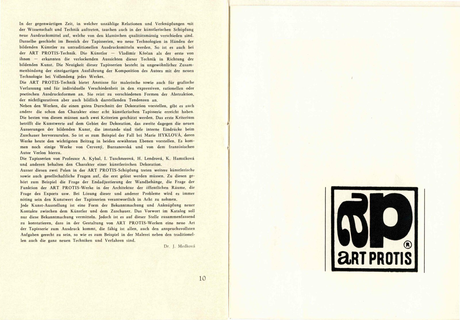 Cetok. Textilní a oděvní průmysl včera, dnes a zítra: Dům umění, 9. 10. – 1. 11. 1970 / Kromě řady propagačních materiálů vydán dílčí katalog Art protis. Text Jiřina Medková. – Brno: Rapid, československá reklamní agentura, 1970. – 10 s., seznam vybraných exponátů 4 s., skládačka 8 s., DU 554