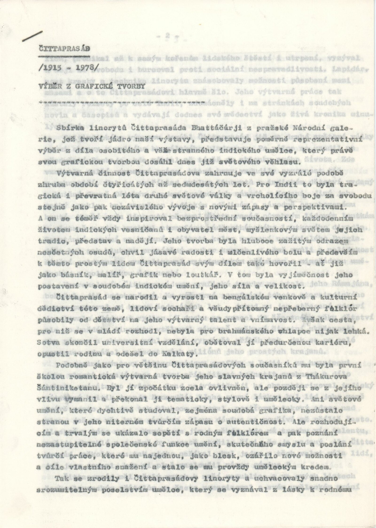 Čittaprasád. Grafika: Dům umění, hala, 22. 2. – 29. 3. 1981 / Text: Miloslav Krása, básně autor, přeložil Dušan Zbavitel. – Brno: DUmB, 1981. – 8 s., obr., DU 725. – MZK; MG