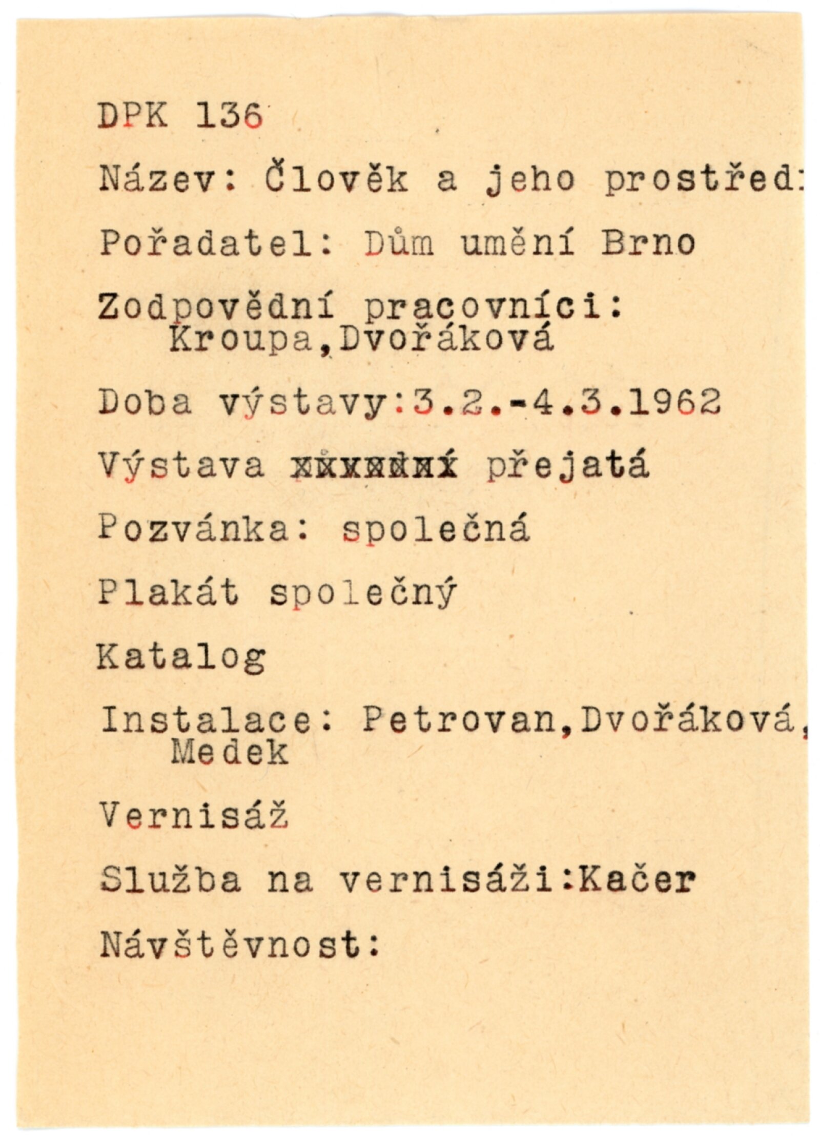 karta k výstavě, seznam vystavených fotografií, korespondence (DU + Ústřední dům lidové tvořivosti – pořádání výstavy, dodání materiálů), recenze v tisku, plakát (Gottwaldov)