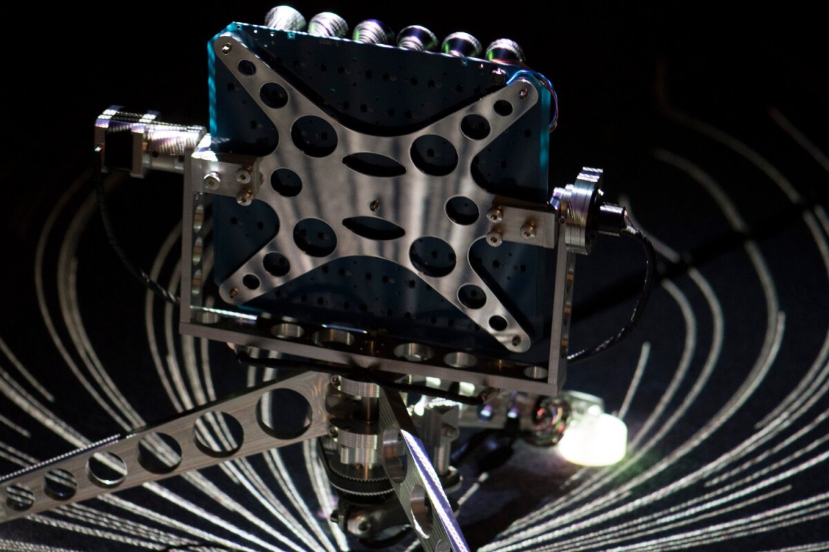 This robotic installation with responsive projection is as much an apparatus of art as it is a tool for music and an instrument of psychology and physics. Tautophone is a reference to the projective “auditory Rorschach” tests developed by psychologists Skinner, Rosenzweig, and Shakow in the 1930s and 1940s, while Curious here refers to the robot's motivation to explore its surroundings and to learn.