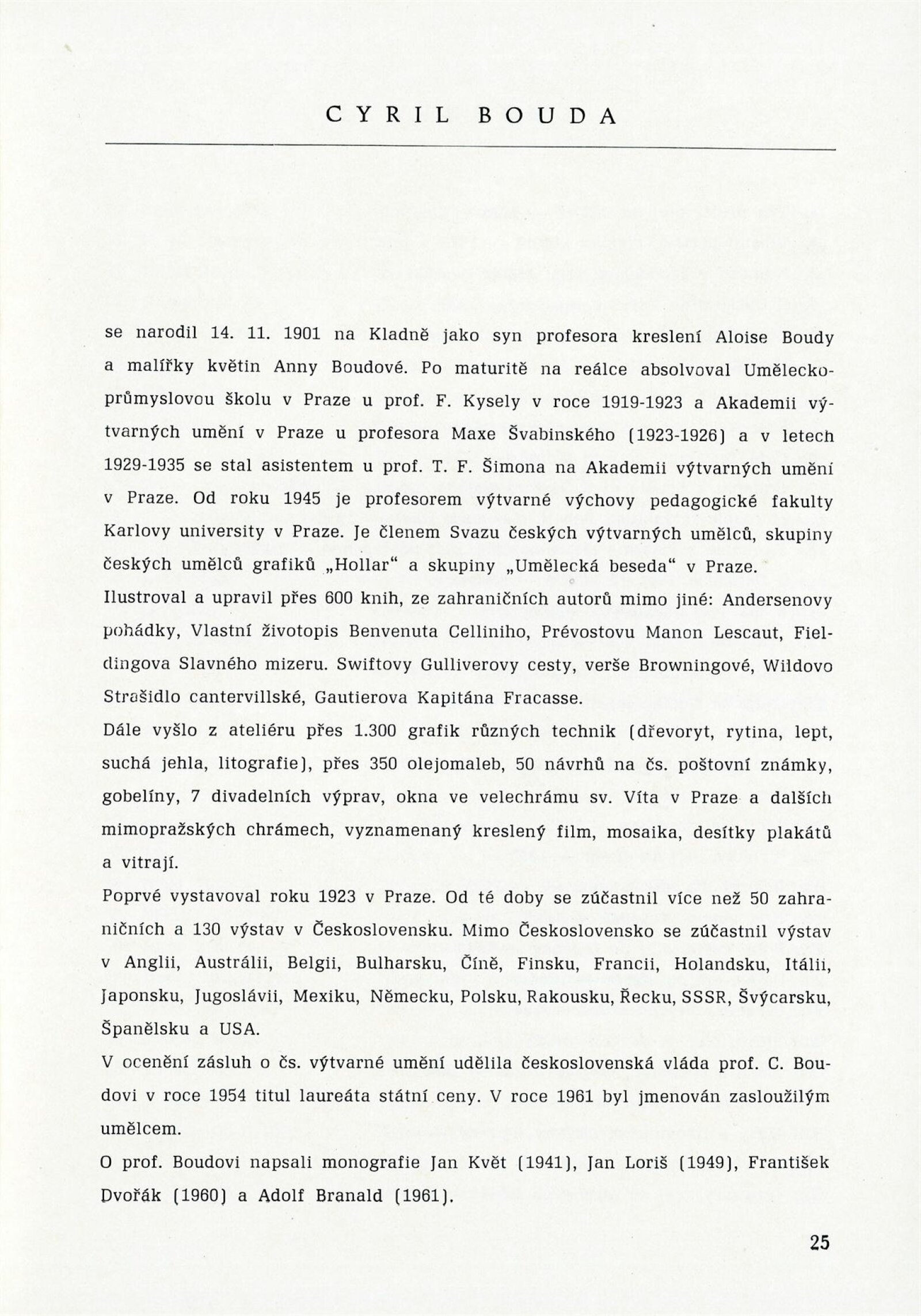 Cyril Bouda. Výběr z díla: Dům umění města Brna / Dům pánů z Kunštátu, 15. 10. – 7. 11. 1971 / Texty: Josef Lev Nerad, Sergěj Machonin. – Praha: SČVU, 1971. – 31 s., obr., portrét, životopis