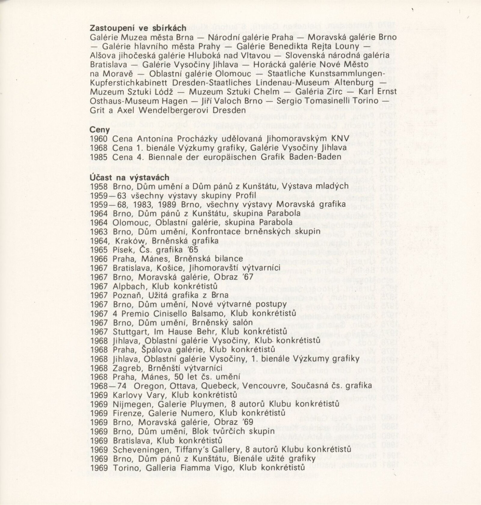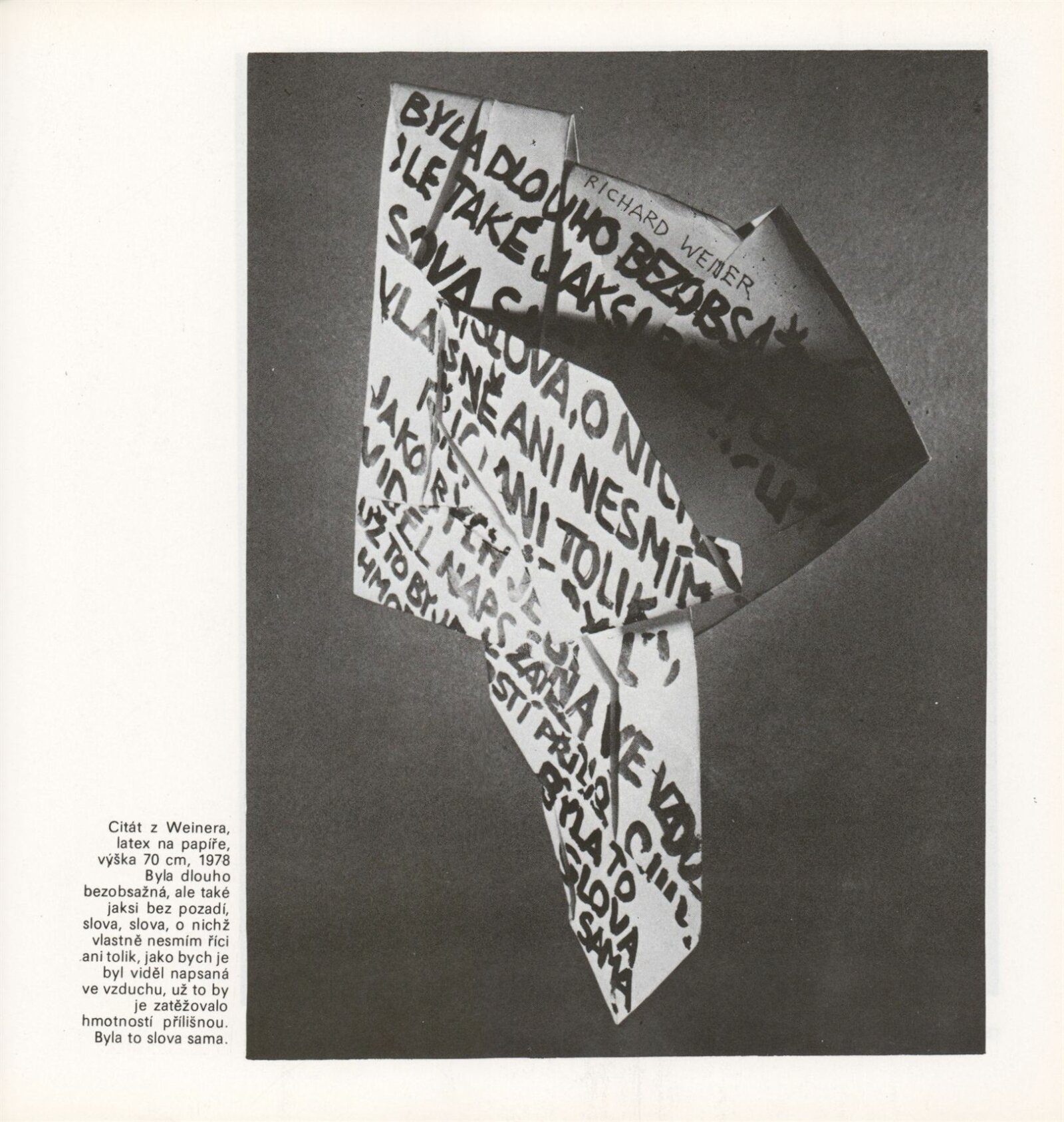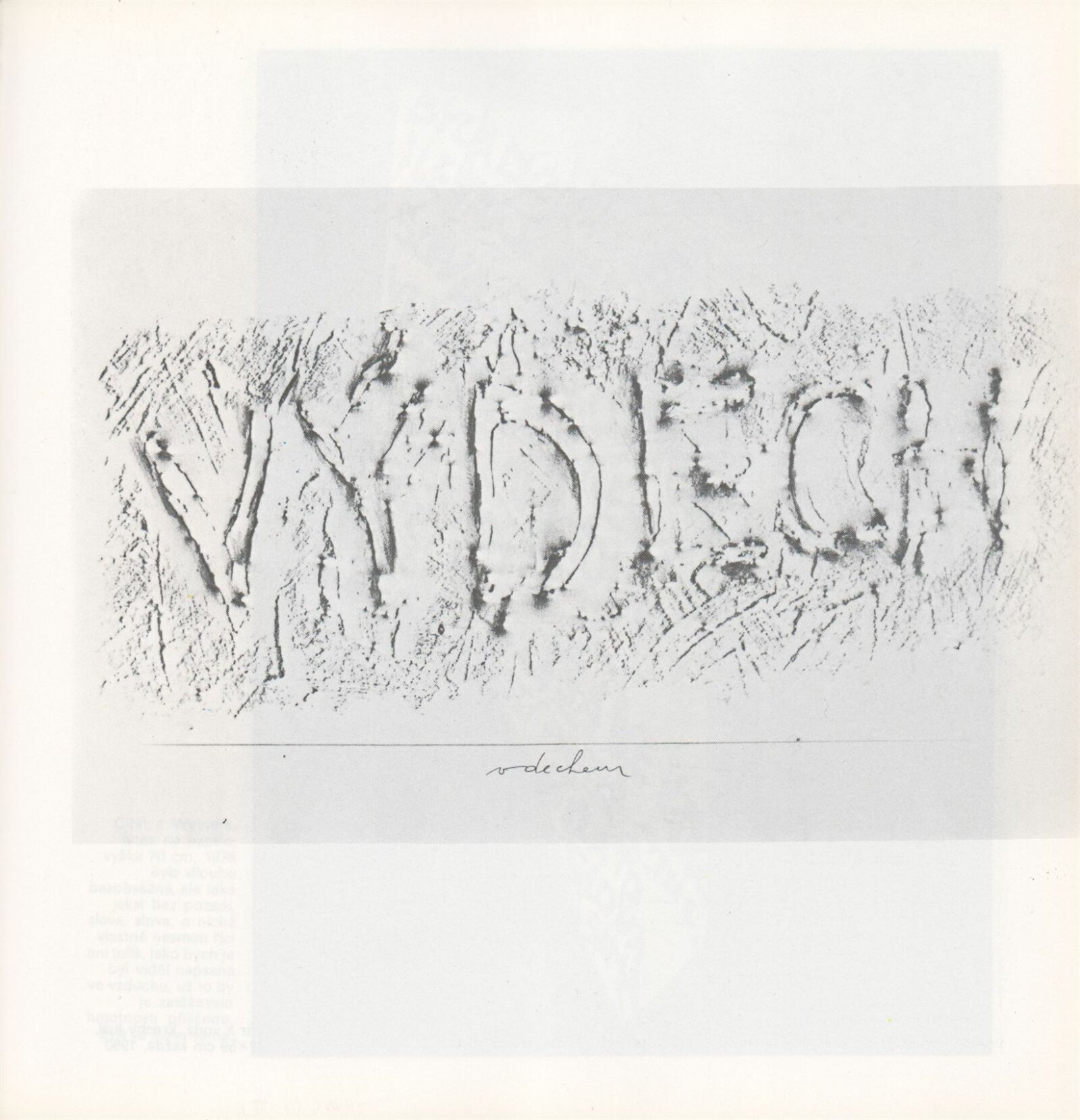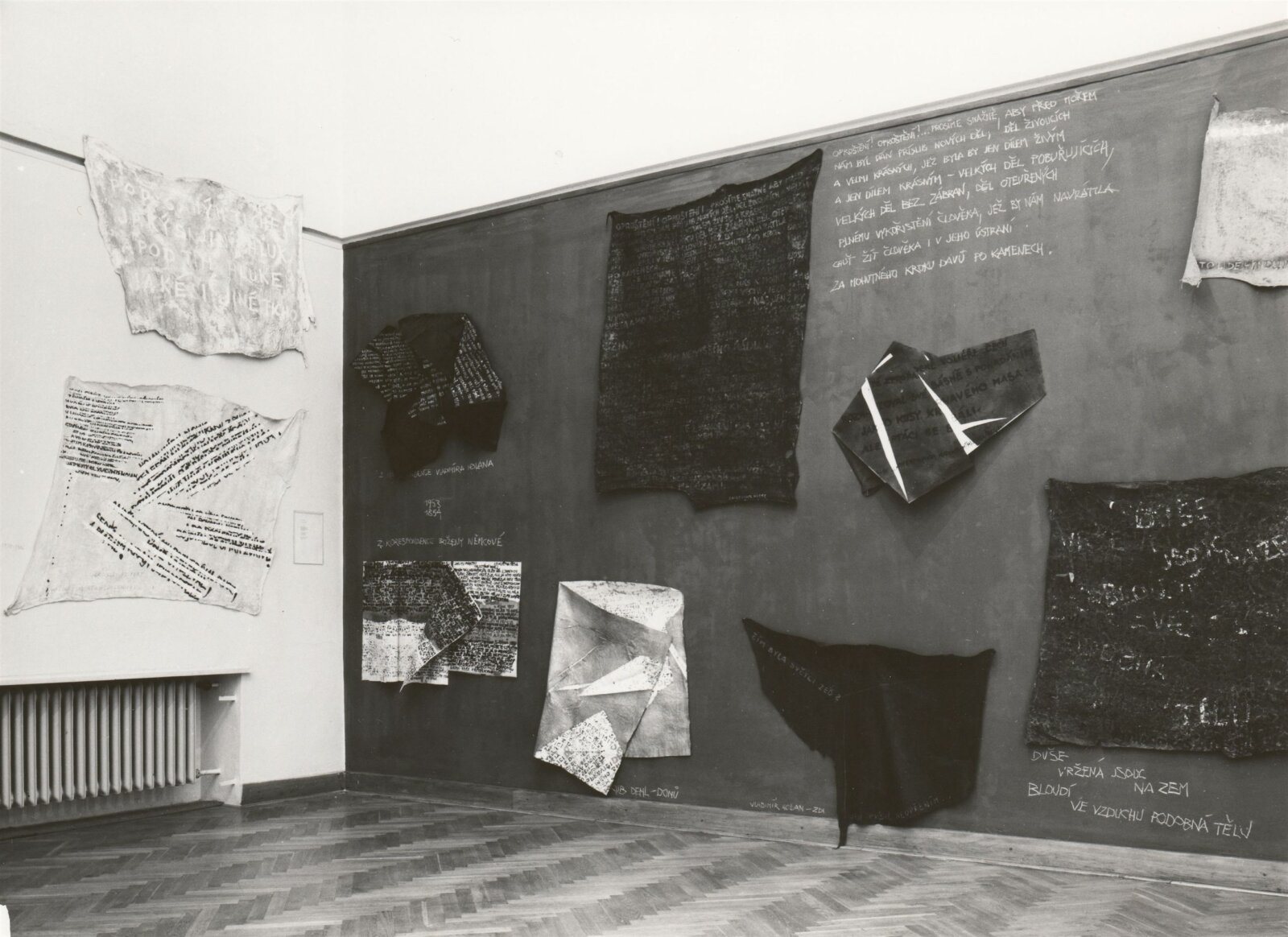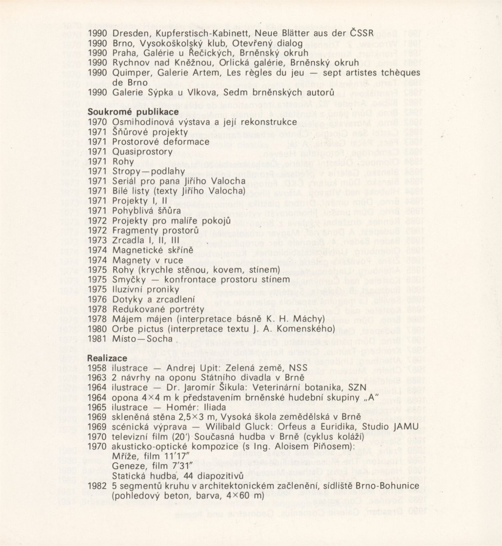 pozvánka , katalog , fotografie děl, výstavy a vernisáže, CD sken, pozvánka na tisk. konferenci, provozní korespondence, smlouva o výpůjčce, předávací protokol, recenze v tisku, poznámky, pozvánky z převzaté výstavy (Zlín), digitalizovaný videozáznam výstavy z archivu Aleše Záboje (29.12.1990, 0:22, S-VHS, 1990/04/25)