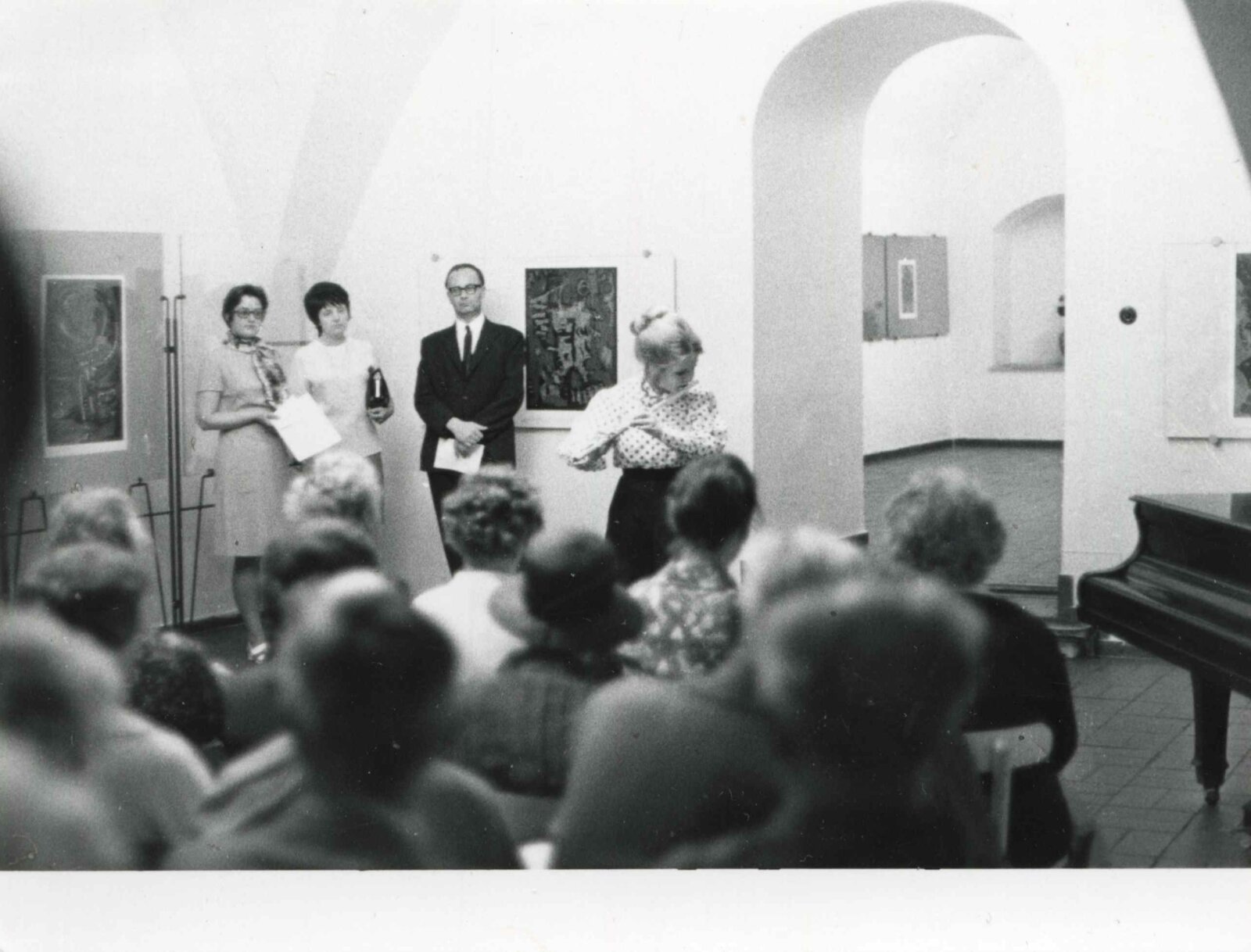 pozvánka, fotografie vernisáže, strojopis úvodního slova k vernisáži (Jaroslav Slavík), seznam vystavených děl s cenami, dopis Jaroslava Slavíka Gertě Pospíšilové (nabídka výstavy), žádost o povolení výstavy, pozvánky a katalog (GVK Praha), recenze v tisku