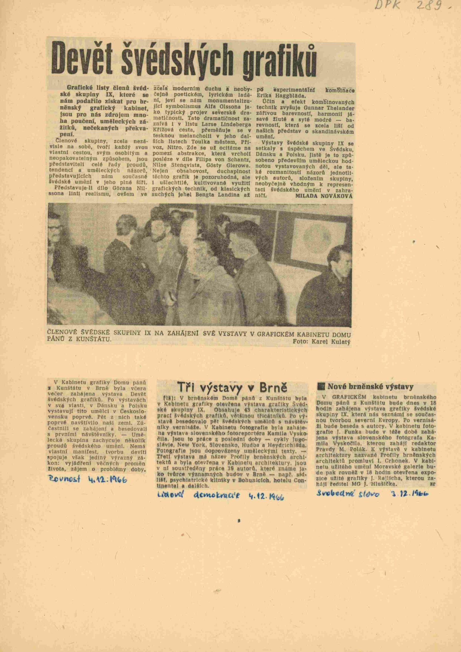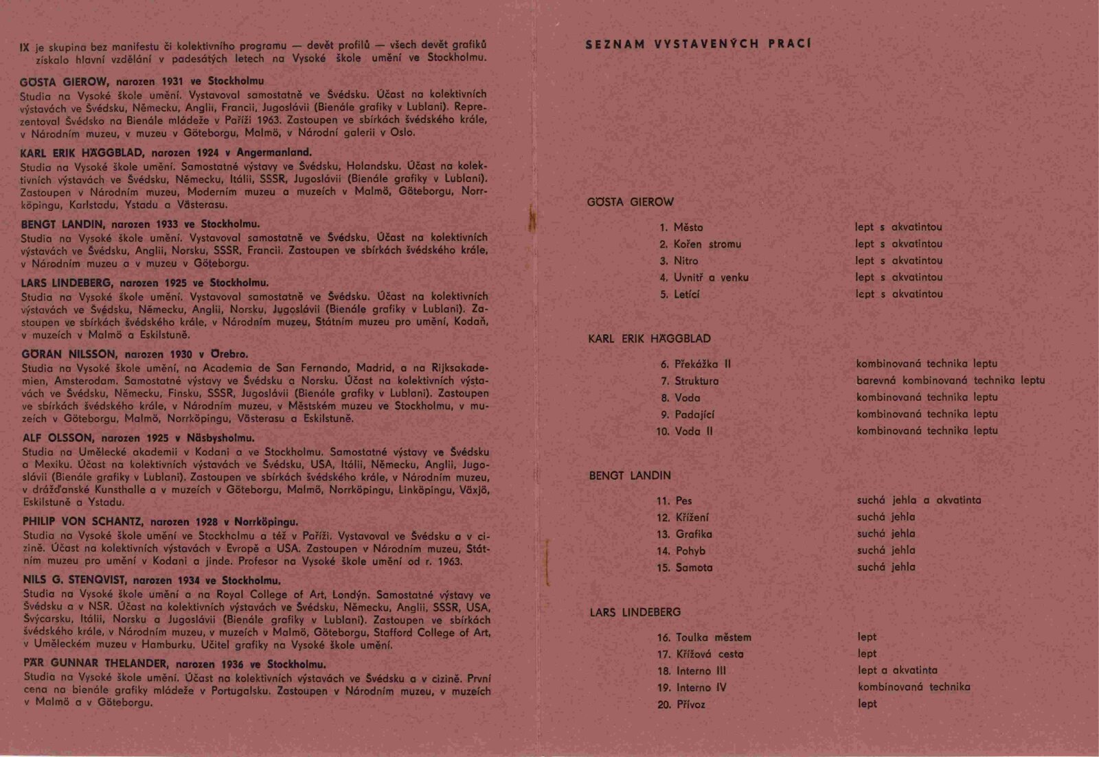 pozvánka, katalog, medailony grafiků, plakát k výstavě, strojopis textu do katalogu, seznam děl, fotografie z vernisáže, provozní korespondence, recenze v tisku, pozvánka (Hollar Praha)