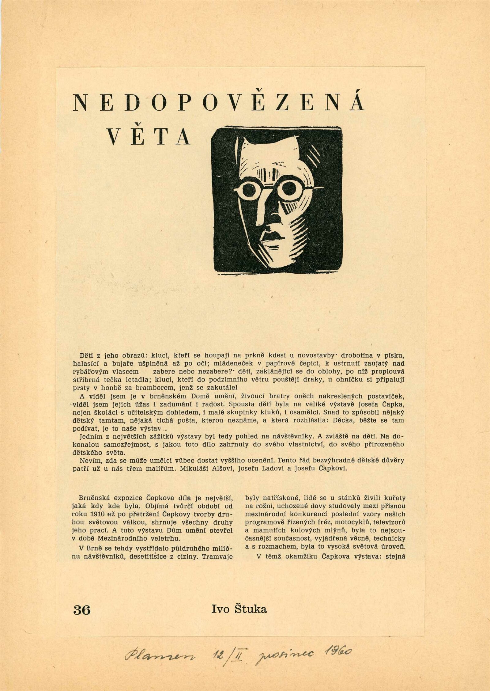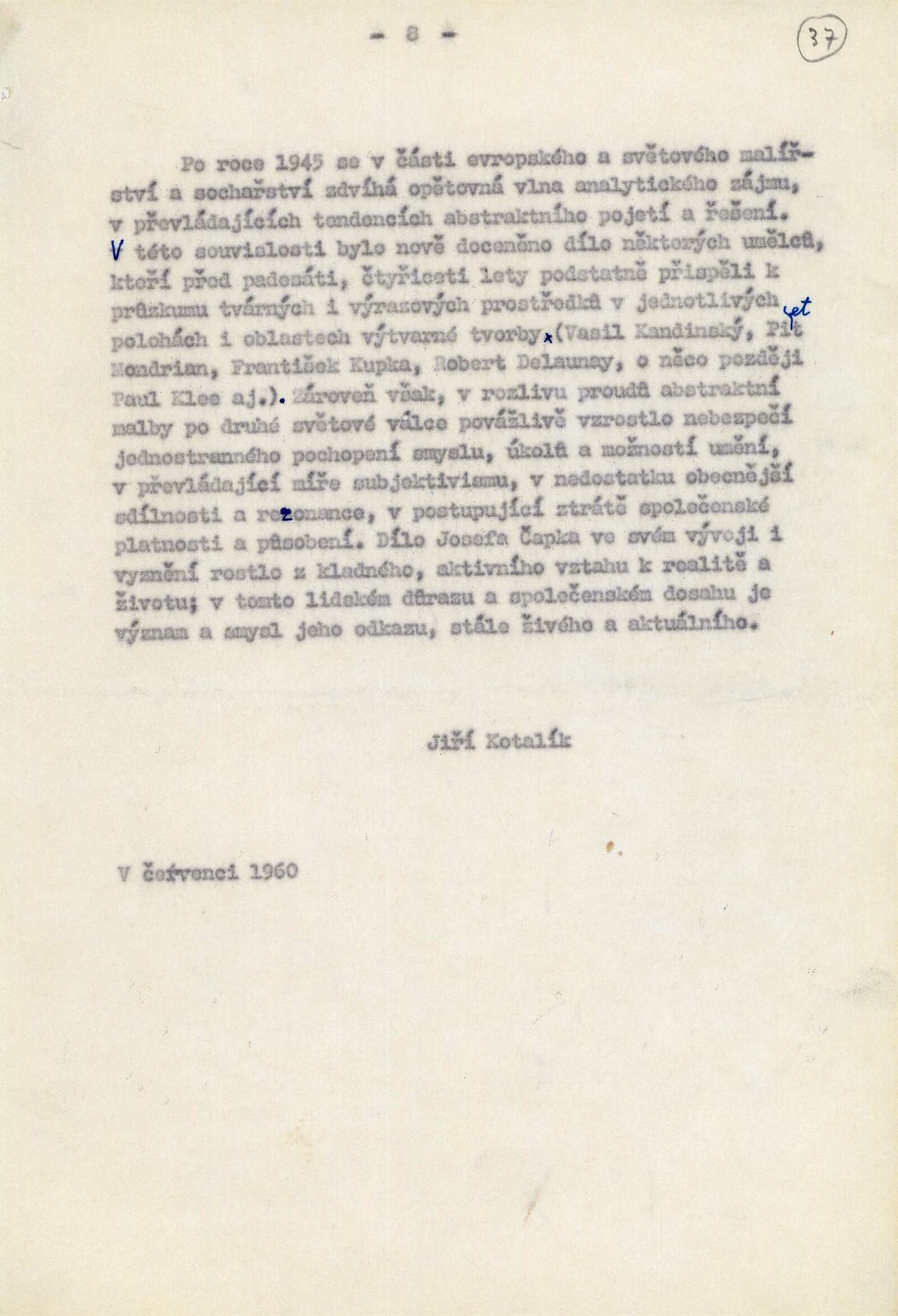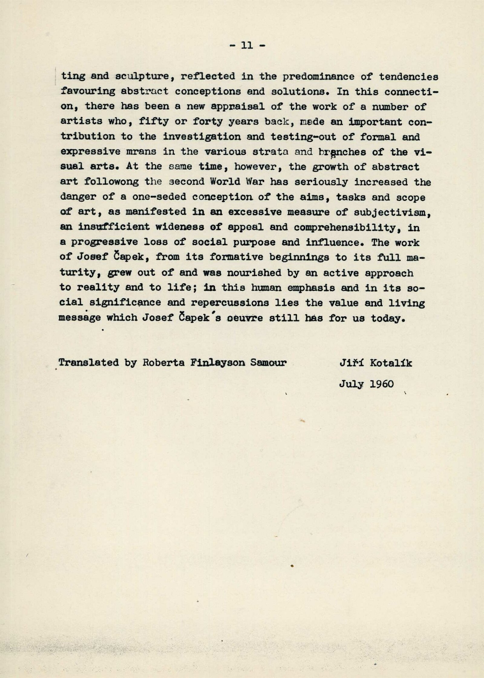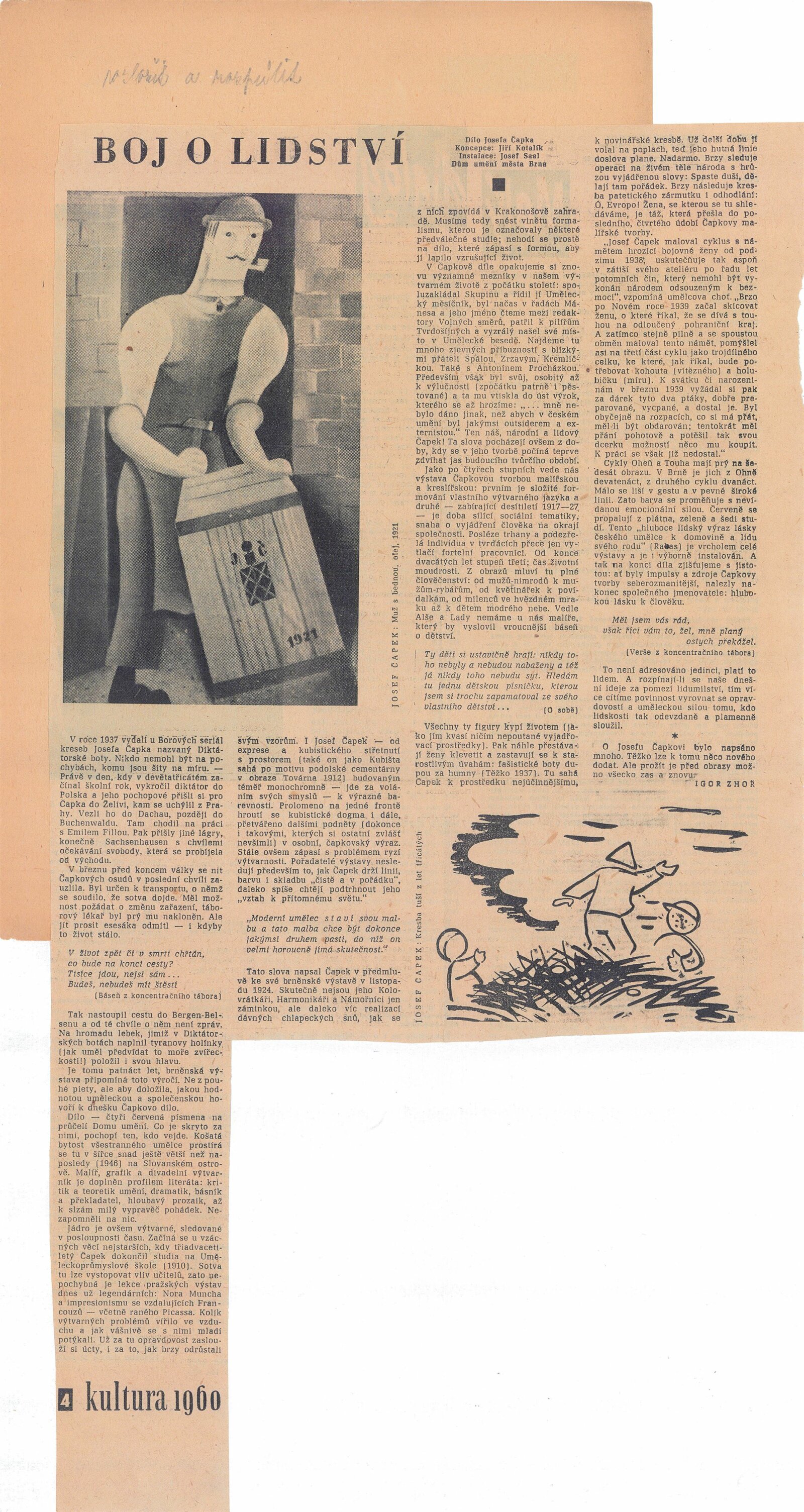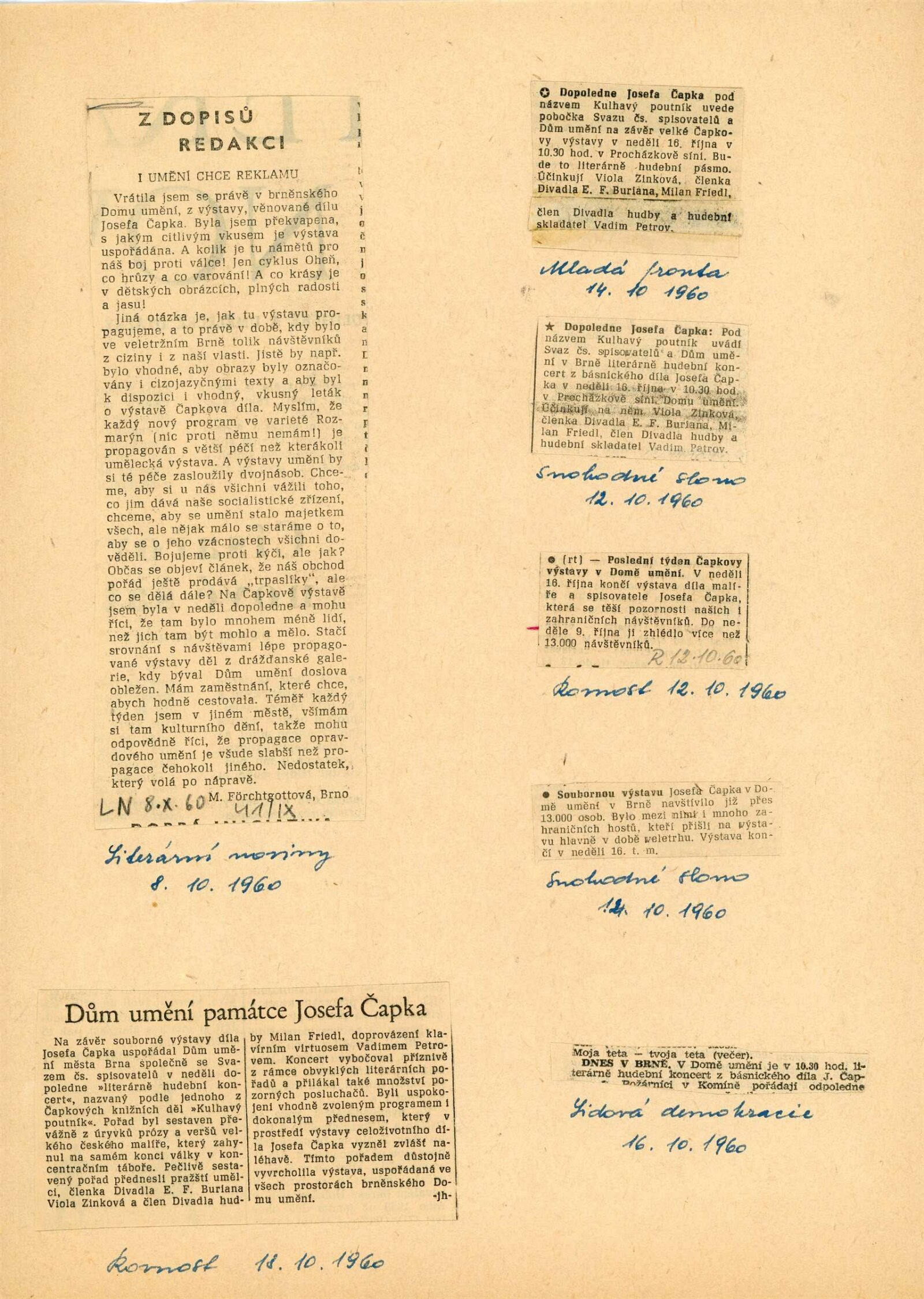Dílo Josefa Čapka: Dům umění města Brna, 4. 9. – 16. 10. 1960 / Text: Jiří Kotalík. – Brno: DUmB, 1960. – 32 s., obr., seznam exponátů 6 s., DU 379. – MG; MMB
