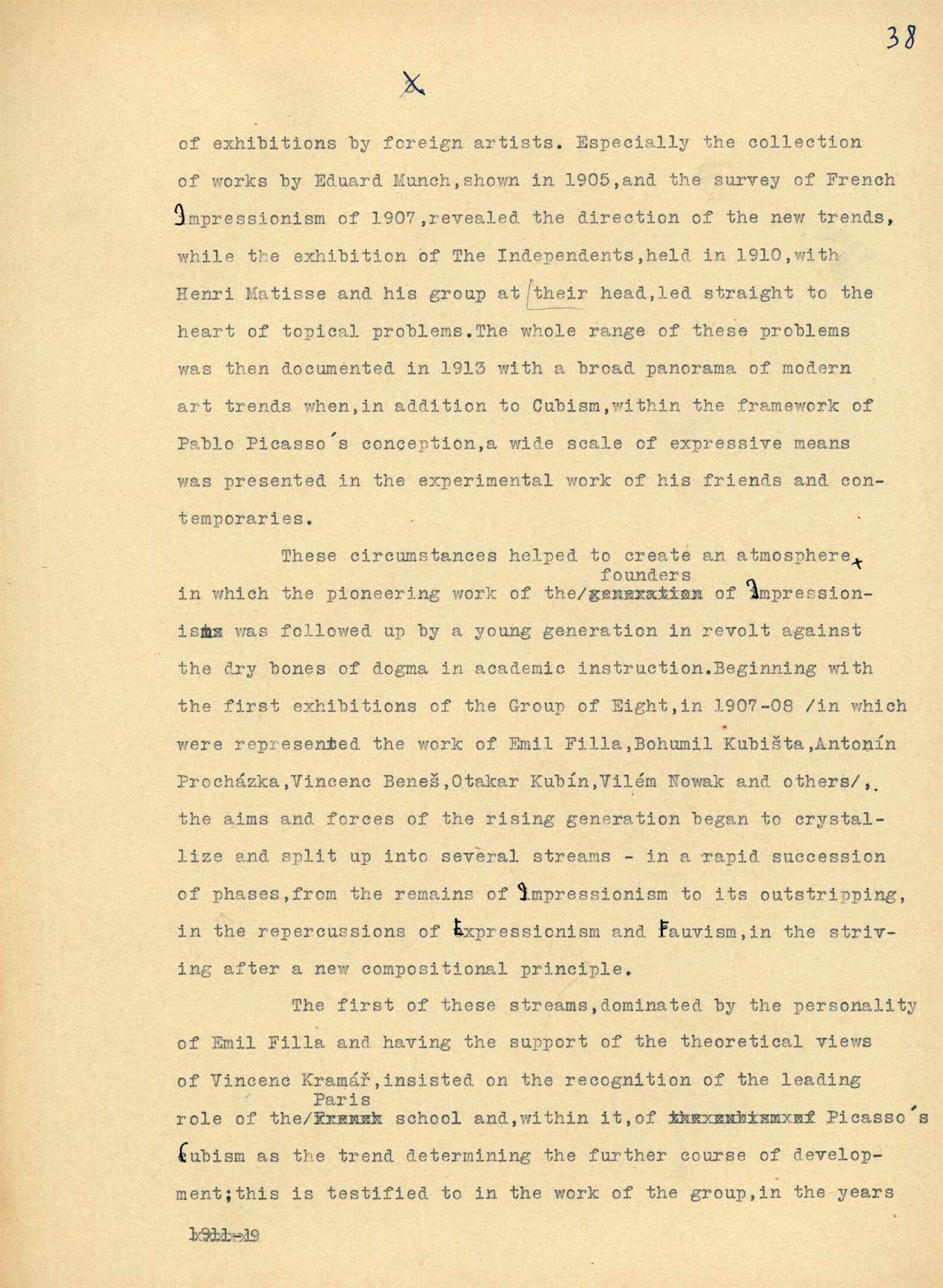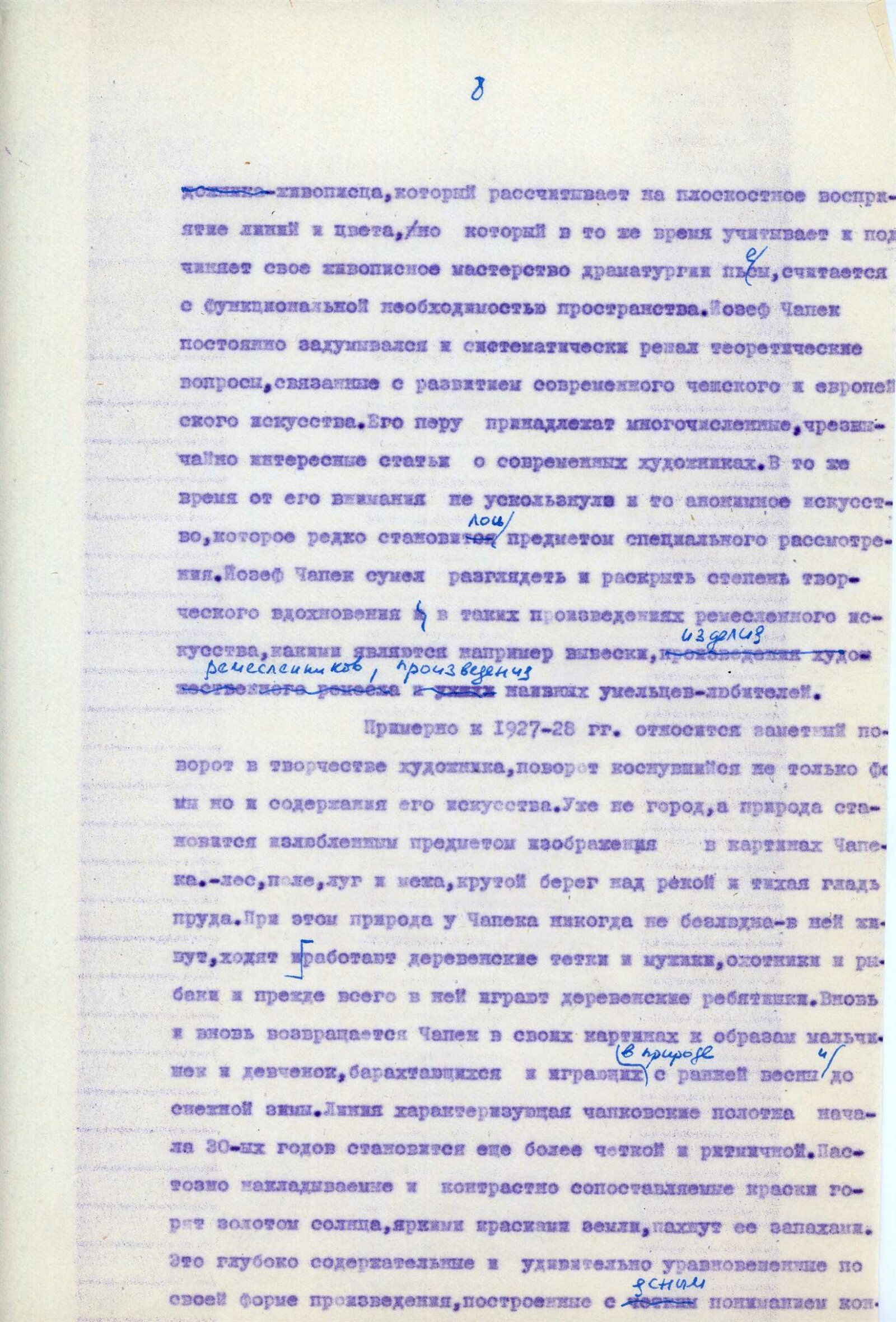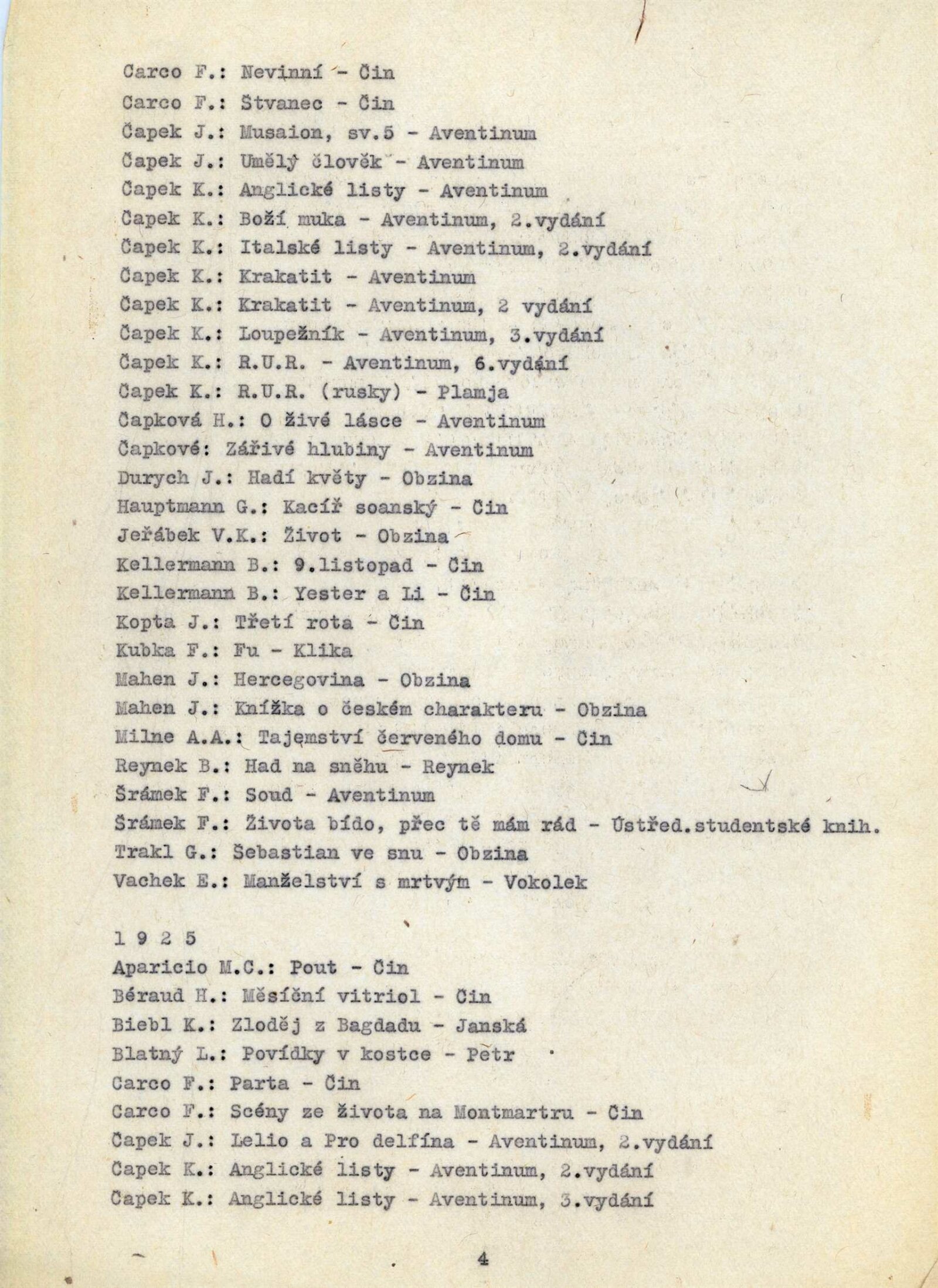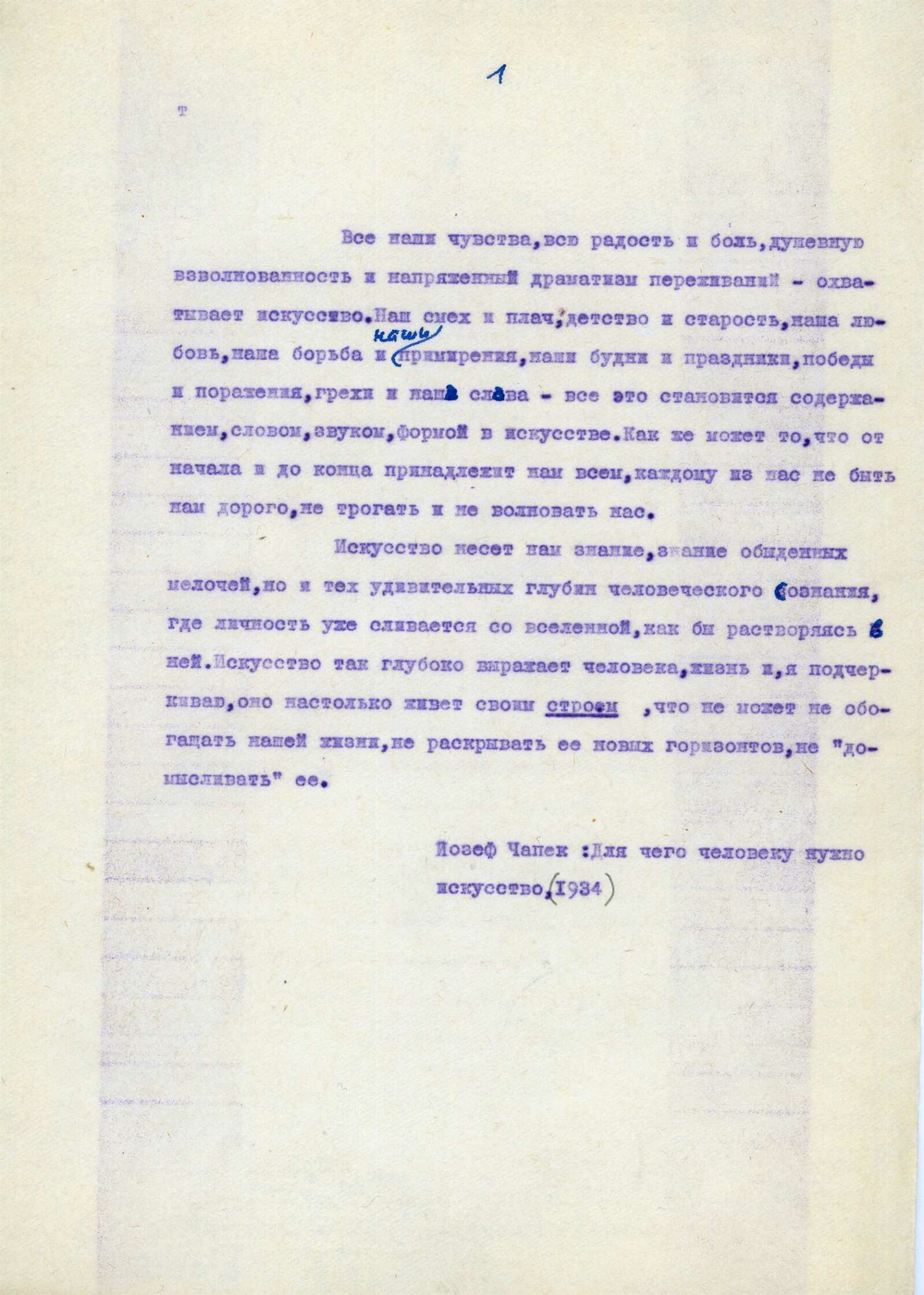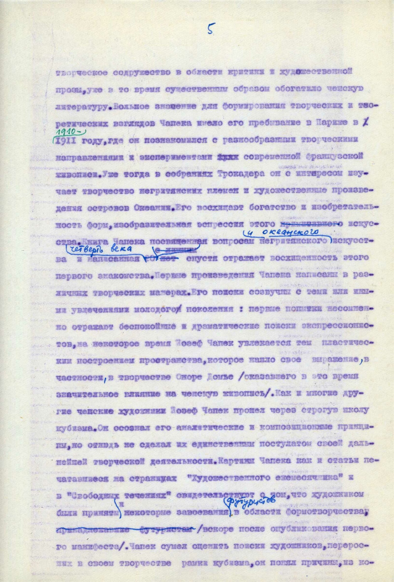 pozvánka, katalog, text přivítání na vernisáži (Gerta Pospíšilová), texty k výstavě (básně Josefa Čapka, L. Stehlíka, texty ČJ, AJ, FJ, RJ), popisky, seznam exponátů, fotografie děl pro katalog, foto Jiřího Kotalíka z vernisáže, seznam zápůjček (dokumenty, knihy, předměty, seznam knih Čapkem graficky upravovaných), korespondence (o rozpočtu s SČSVU a o financování výstavy, provozní korespondence, dopisy Dr. Slavíka, M. Míčka), seznam adres pro pozvánky, zápisy z přípravných schůzí a jednání s Jiřím Kotalíkem, koncepce výstavy a její členění, rozpočet, přihlášky pro výstavu, potvrzení o převzetí děl, reverzy, pojištění výstavy, zápisy z jednání a nástin výstavy (Jiří Kotalík), smlouvy o dílo (překlady, instalace atd.), rozpočet, recenze v tisku, podpisová kniha z výstavy (asi 60 stran)