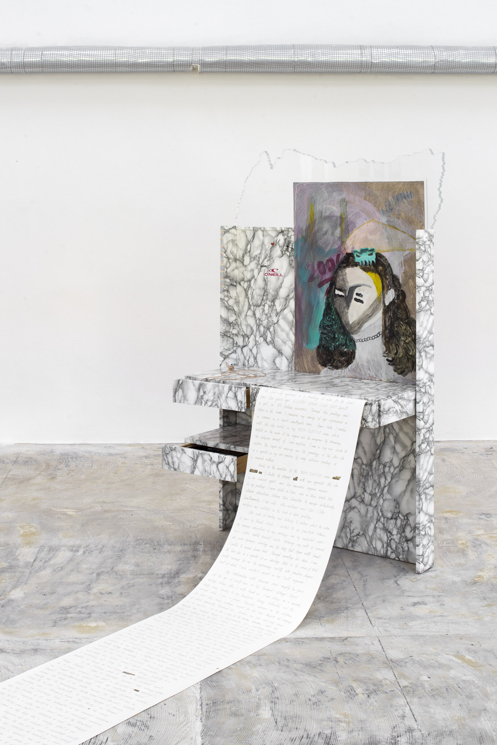 Dominika Trapp (1988, Budapest) graduated from the painting department of the Hungarian University of Fine Arts in 2012. Her practice has been characterized by a two-way interest: on the one hand, a sensitive painterly approach that allows for intuition and introspection; and on the other hand, an outward-directed sensitivity aiming to facilitate dialogues between communities in the service of collective self-knowledge. In her works, she often addresses topics such as the relationship between tradition and contemporary culture, women’s room for manoeuvre in Hungarian peasant communities, the historical context of eating disorders, or painting as a possible somatic method for artistic research. For the past two years, she has participated in the residency programs of Art in General in New York, the Erste Stiftung in Vienna, and FUTURA in Prague. In 2020, her solo exhibitions were presented at Trafó Gallery in Budapest and at Karlin Studios in Prague. In 2021 she participated at the 14th Baltic Biennale in Vilnius. She is currently enrolled in the multimedia art doctoral program of MOME—University of Applied Arts Budapest.