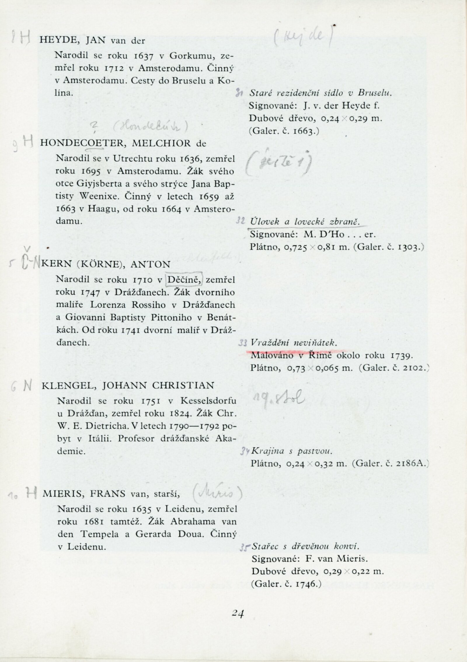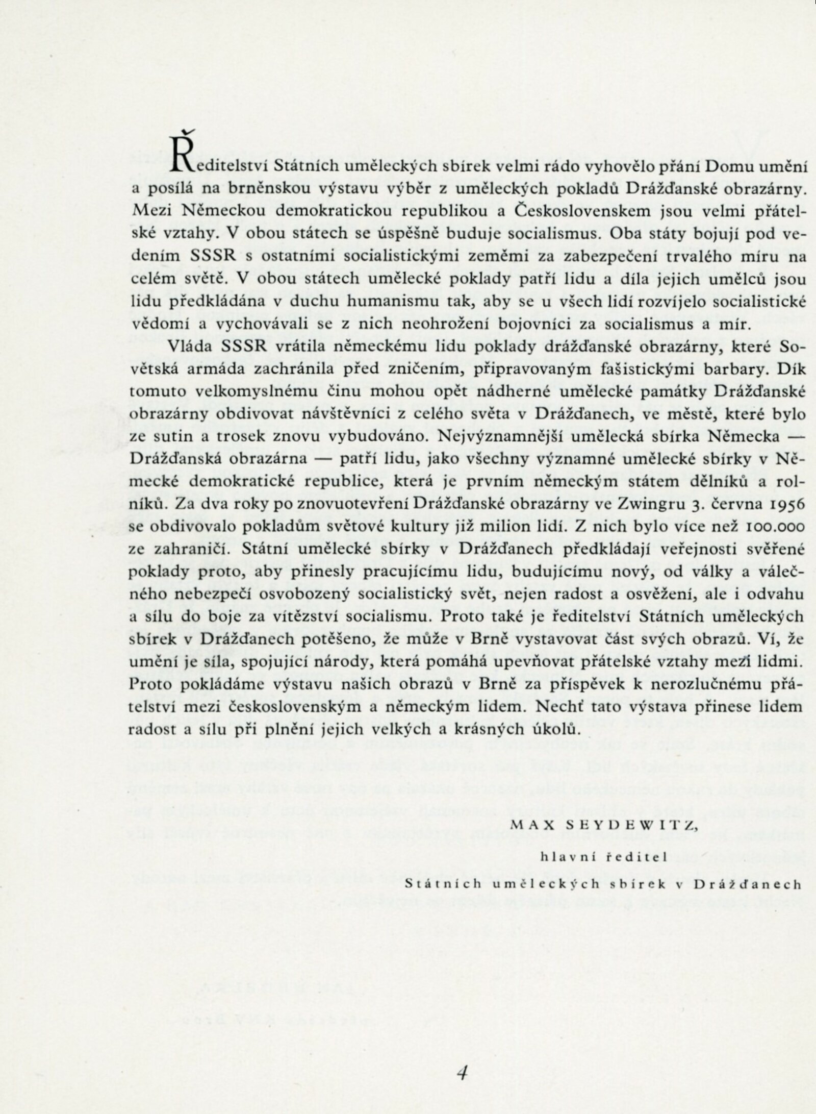 Drážďanská galerie: Dům umění města Brna, 1. 2. – 30. 3. 1959 / Texty: Jan Nedělka, Max Seydewitz, Menz. – Brno: DUmB, 1959. – 37 s., obr., seznam grafiky Drážďanské galerie na výstavě v Brně 2 s., životopisy, odborné popisy, DU 333 spr. 323. – MZK; MG