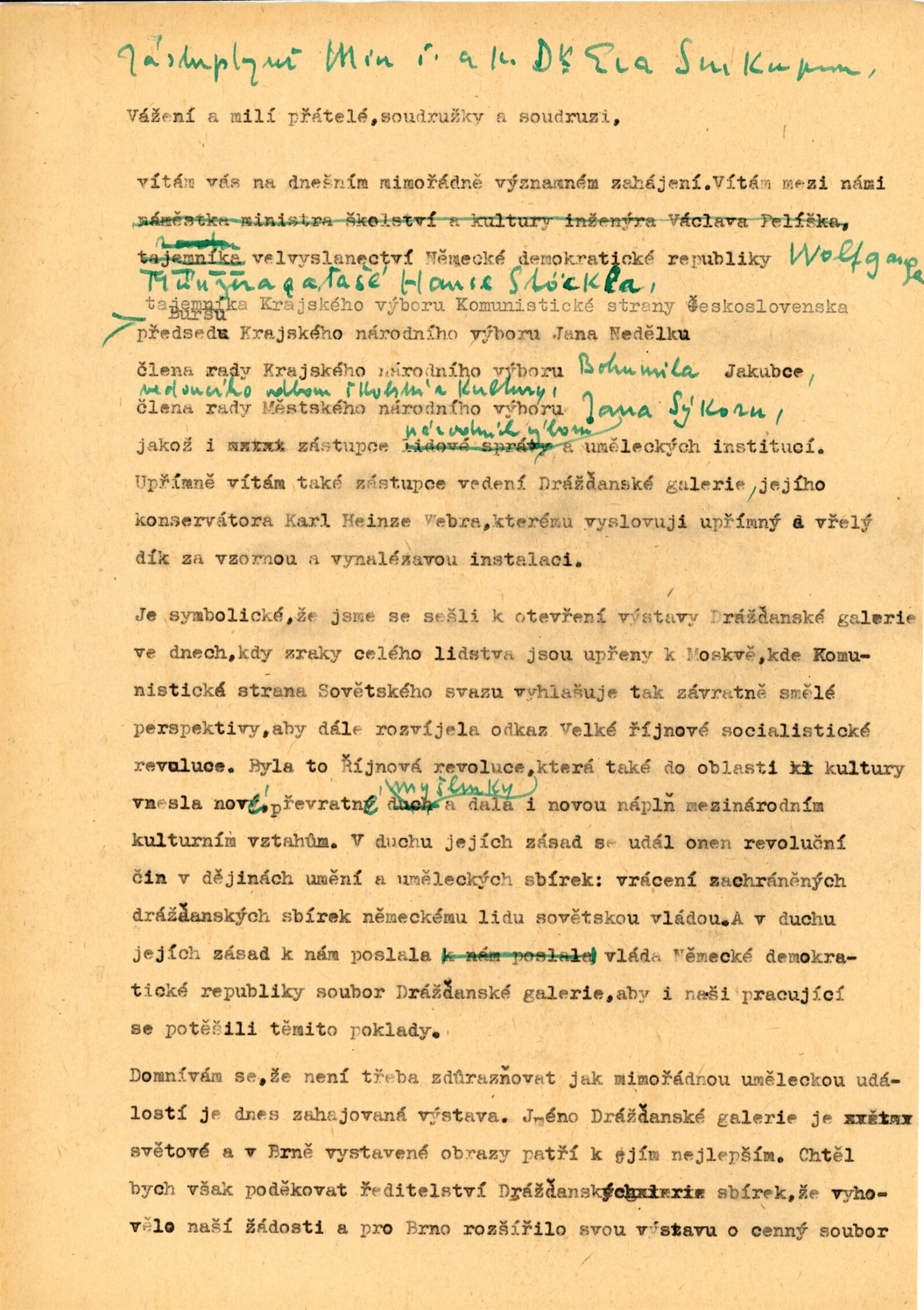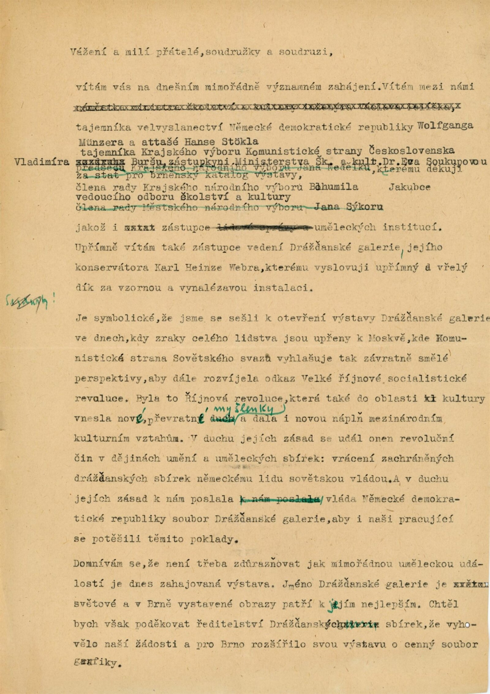 Výstavu zahájili Adolf Kroupa, K. H. Weber a E. Soukupová. Výstavu připravili odborní zaměstnanci drážďanské galerie.