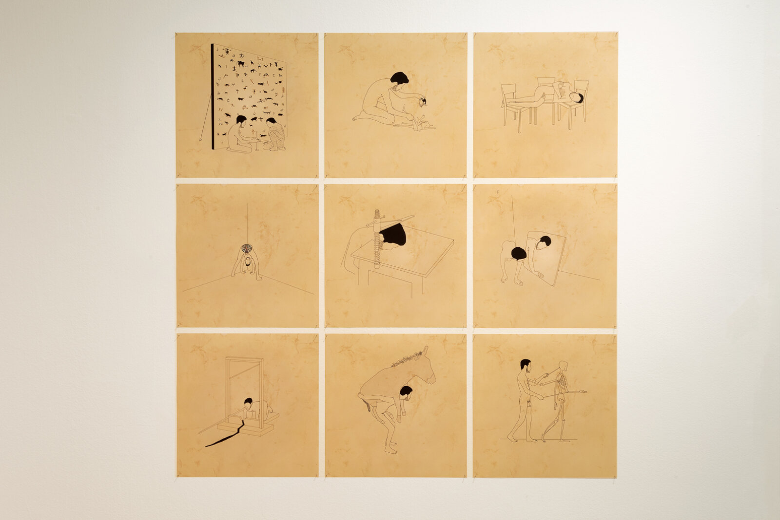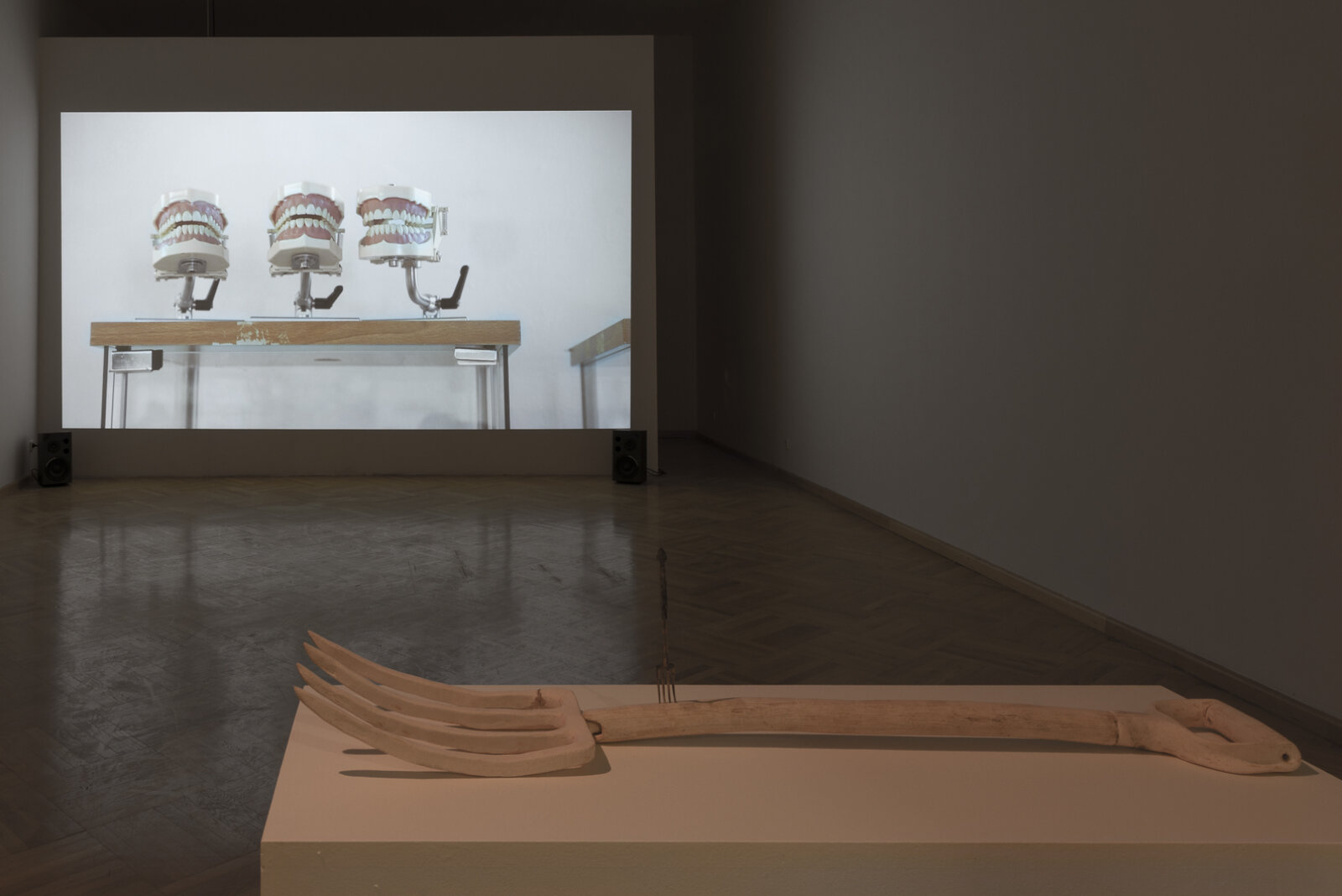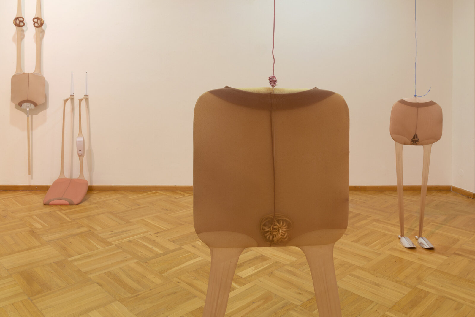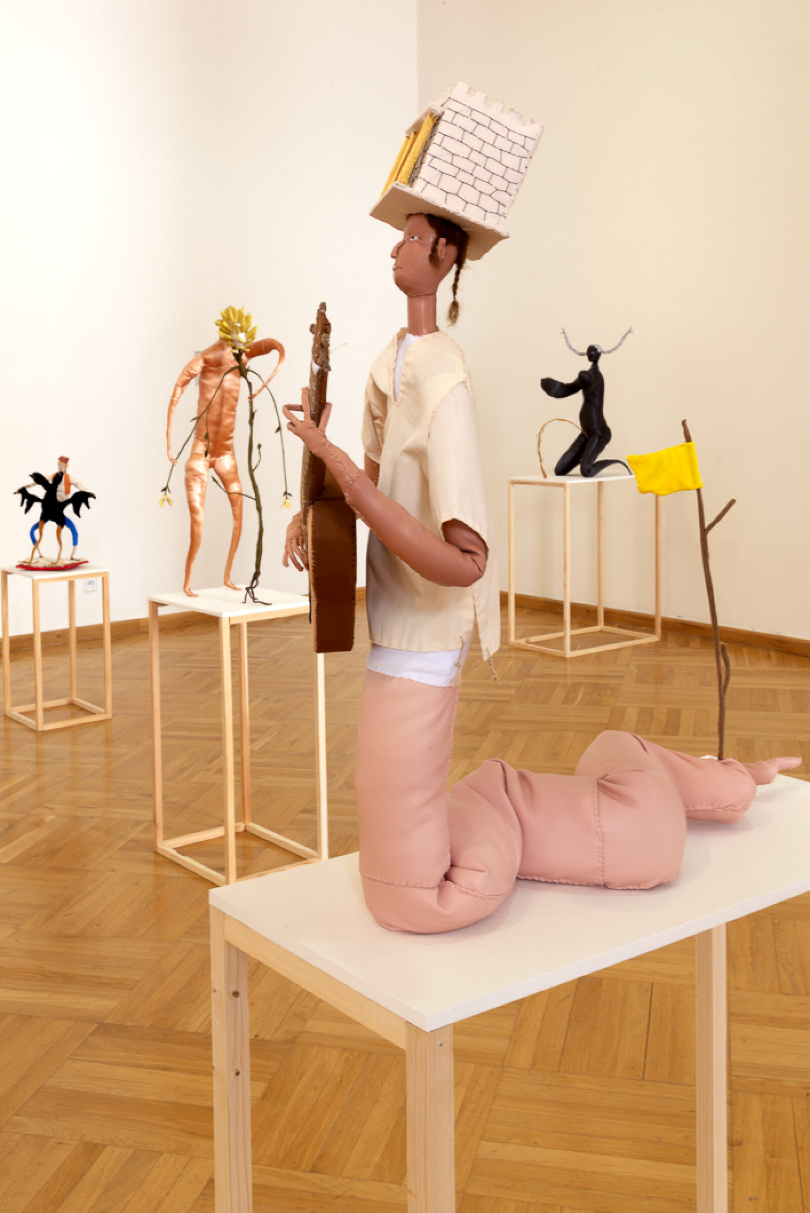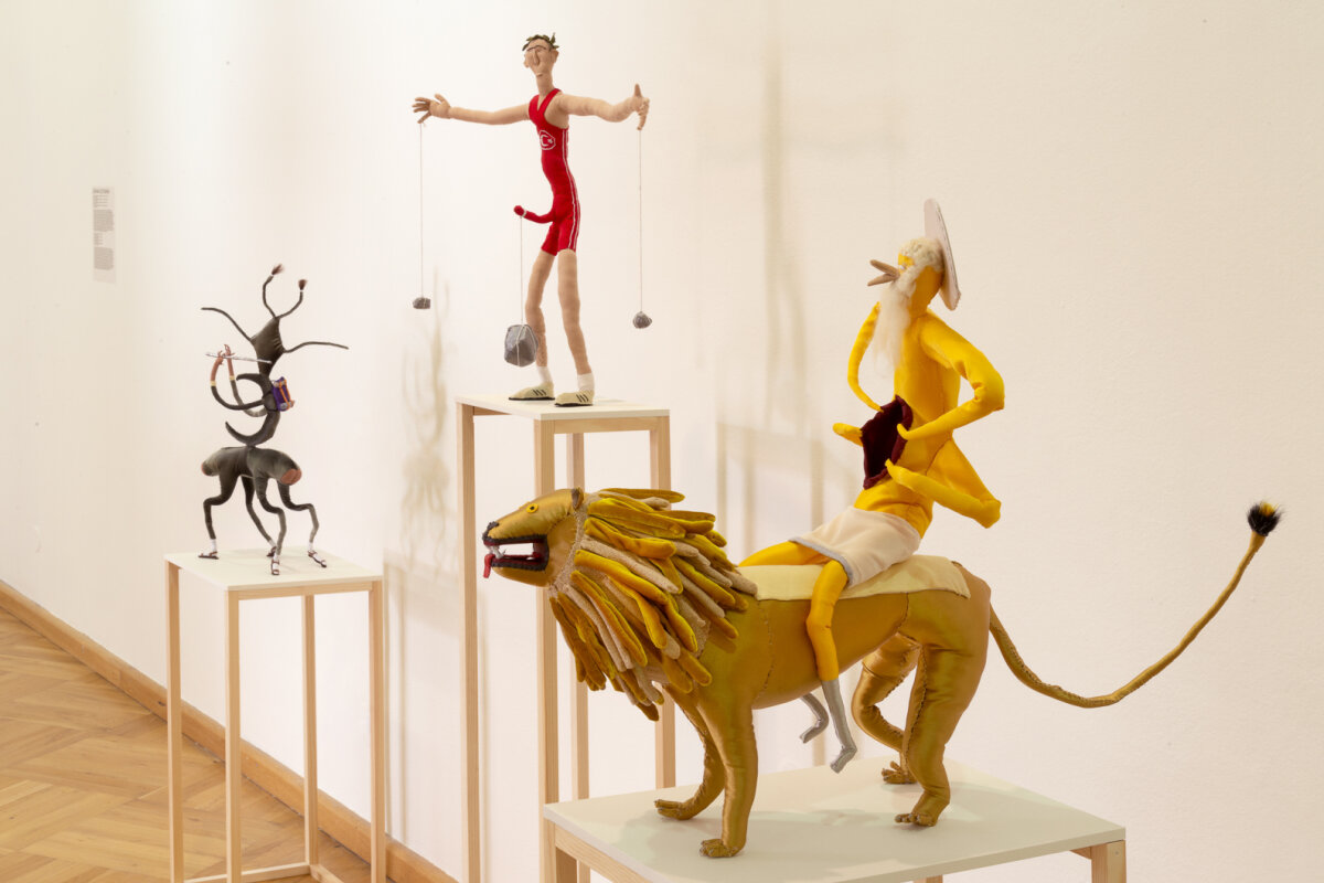 In terms of the techniques used, the modes of representation and the genres they take inspiration from, the works in the show present a strong tendency toward the figurative and dramatized reenactment, with characters or the anthropomorphism of inanimate objects. They opt for media associated with low-tech devices and laborious handiwork, such as stop-motion animation, knitting and sewing. The style and visual signifiers draw on graphic design, illustration and cinematic genres in a mix of high and low cultural signifiers that, likewise drawing on history, literature and philosophy, create cultural hybrids meant to put humor into action as a subversive tool that dismantles hierarchies.