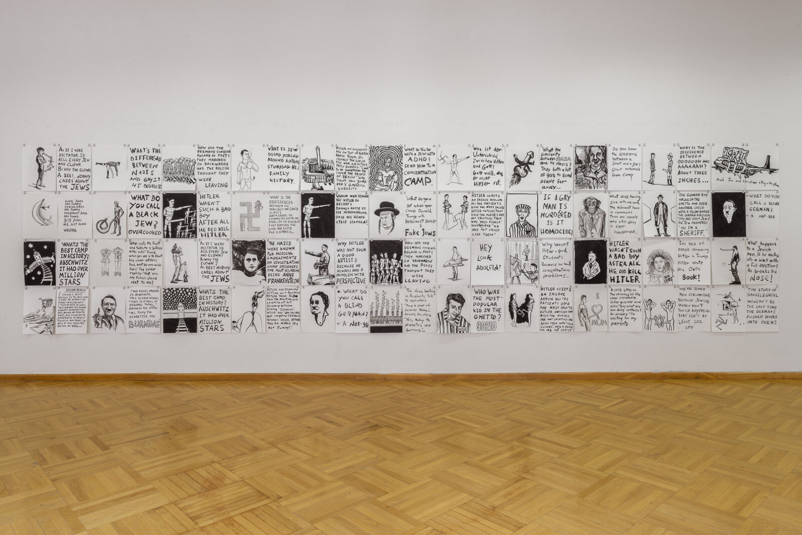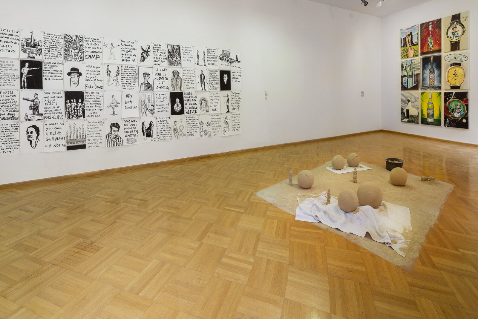 Ever since the avant-garde movements of the early twentieth century, humor and parody served as a central tool for subverting the accepted norms of society. As seen in Dada especially, but also in Surrealism, Dada’s less politically-minded offshoot, manifestations of irony, wit and nonsense abound – a response to a bourgeois social order that, following the First World War, deceived a whole generation. Rife with visual and textual gags, double meanings and pop-cultural references, the artistic legacy of these early avant-garde movements persisted into the Pop Art of the 1960s, making a strong reappearance in the postmodern art of the 1980s and 1990s – this time more daring, distorted and grotesque than ever. To name just one prominent example, the Swiss duo Fischli and Weiss, active since the late seventies, made liberal use of comical gestures which, rather than release tension, push absurdity to new heights.
