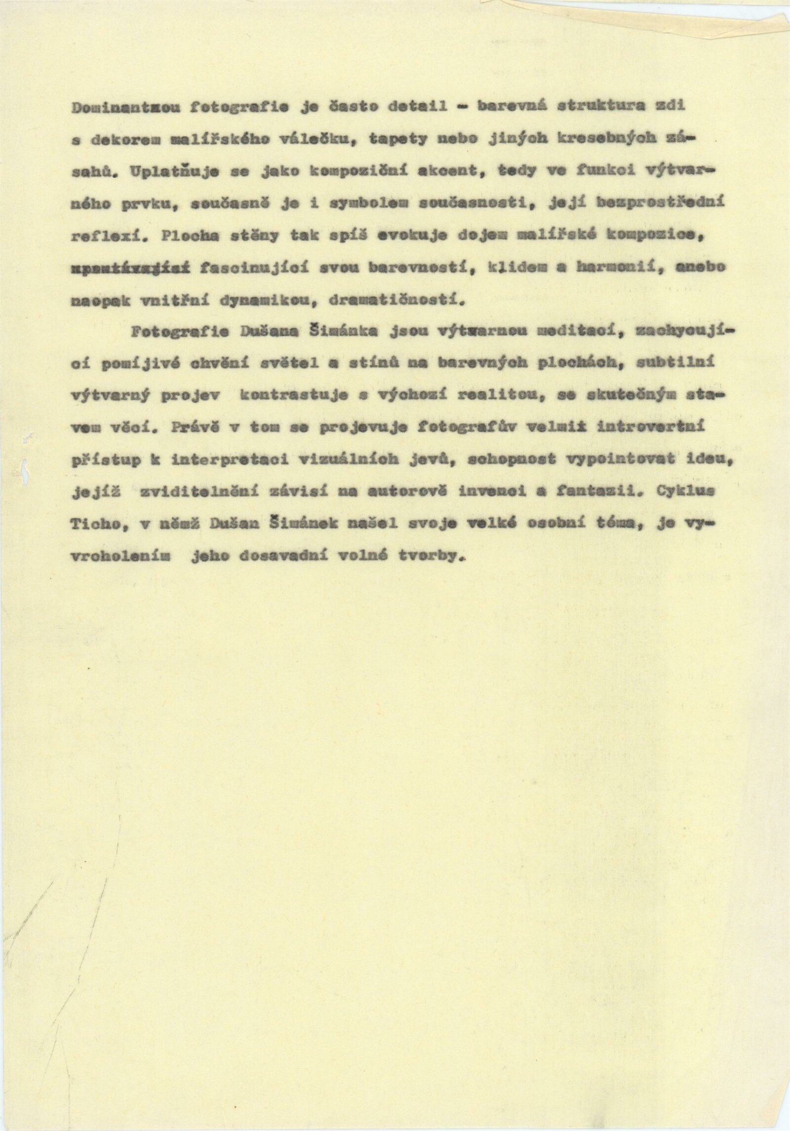 pozvánka, texty - zprávy pro tisk (J. Vránová), smlouva o uspořádání výstavy, korespondence, recenze v tisku, dvoulist k výstavě D. Šimánka (Praha 1980), leták k výstavě D. Šimánka a Jiřího Poláčka - Fotochema 1988