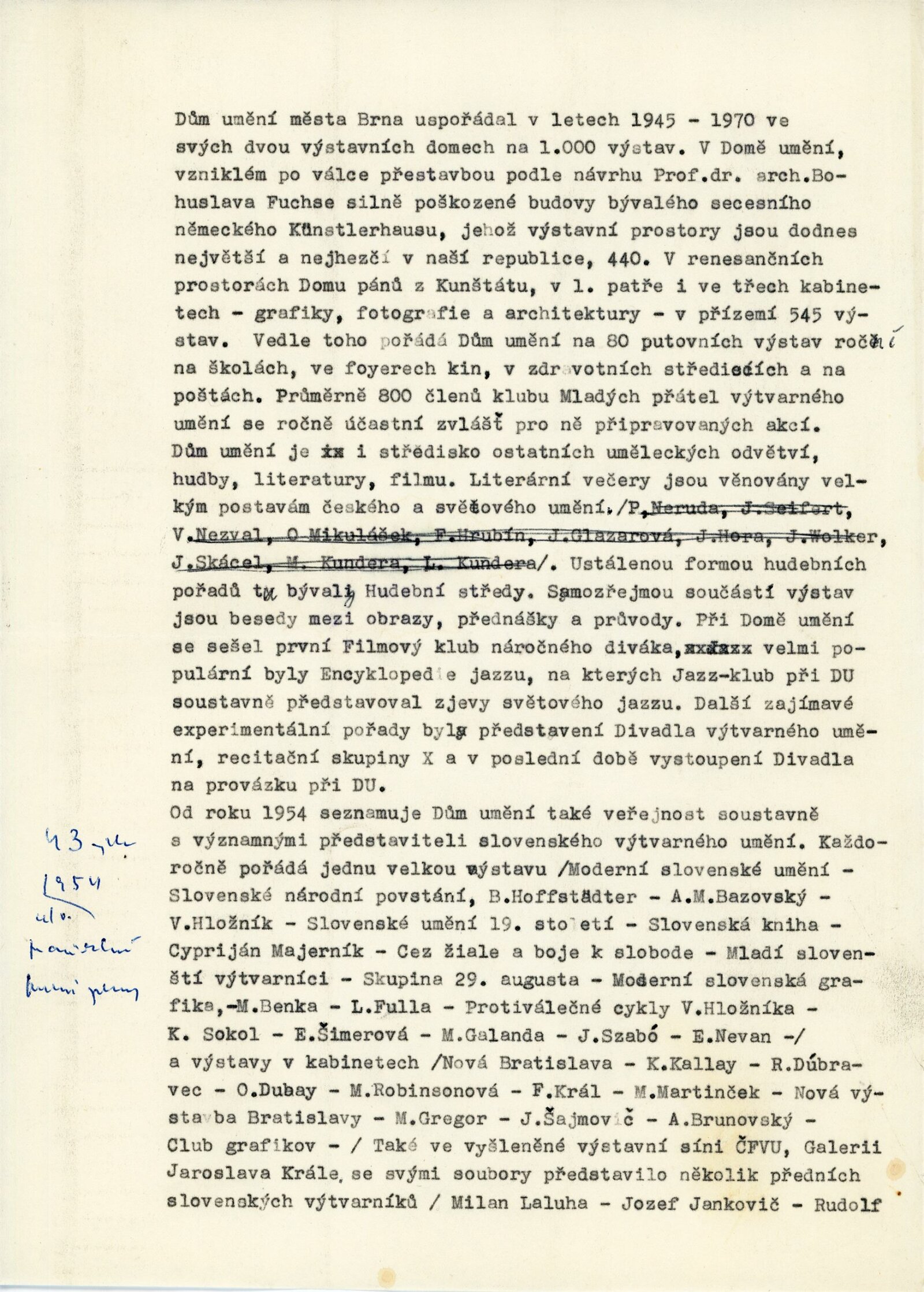 pozvánka, katalog, měsíční plakát (spol. pro DU 544–545 a DPK 439–442), fotografie instalace a vernisáže výstavy, zprávy o výstavě z DU, úvodní slovo nepřítomného Adolfa Kroupy, texty k výstavě (Milada Nováková), plán práce, pracovní úkoly na březen (Milada Nováková), strojopis programu DU, seznam výtvarných publikací na Deň slovenskej kultúry v Brně, korespondence (Adolf Kroupa Paľu Biednikovi a Miroslavu Válkovi, provozní korespondence Moravská galerie – seznam exponátů, žádost o výpůjčku), korespondence k DU 545a (šéfredaktorům Pallas a Tatran), recenze v tisku, katalog výstavy reprodukcí „Slovenské malířství po roce 1918“ ve Východočeské galerii v Pardubicích
