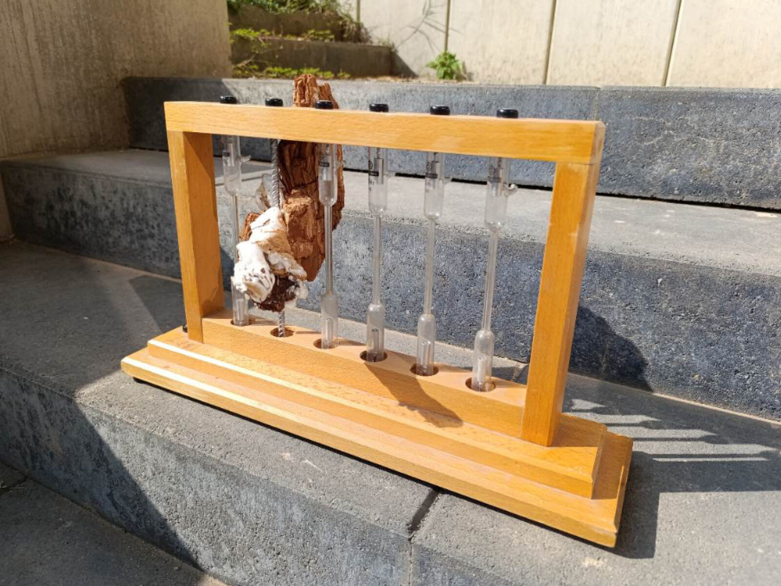Originally from Košice, Machciník is a sculptor who works with natural materials while exploring themes such as rituals, fetishism, religion, eremitism, asceticism, the dialogue between technology and nature, and the relationship between the organic and the inorganic. His visually attractive installations are often based on broader research. Woods are examined in the vicinity of the city of Košice at the site of gravel extraction of a nearby cement plant, where they are secondary extracted together with gravel from the ground from a depth of several meters. As such, they are quickly becoming a commodity in the designer furniture market.