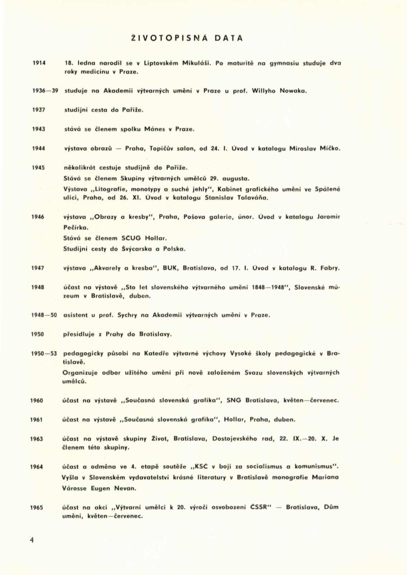 společná pozvánka DPK 277–279, katalog, leták výstav DU, strojopis katalogu, plán propagace, seznam vystavených děl, fotografie děl, korespondence (DU – Eugen Nevan, Eva Šefčáková, provozní korespondence), reverzy, recenze v tisku