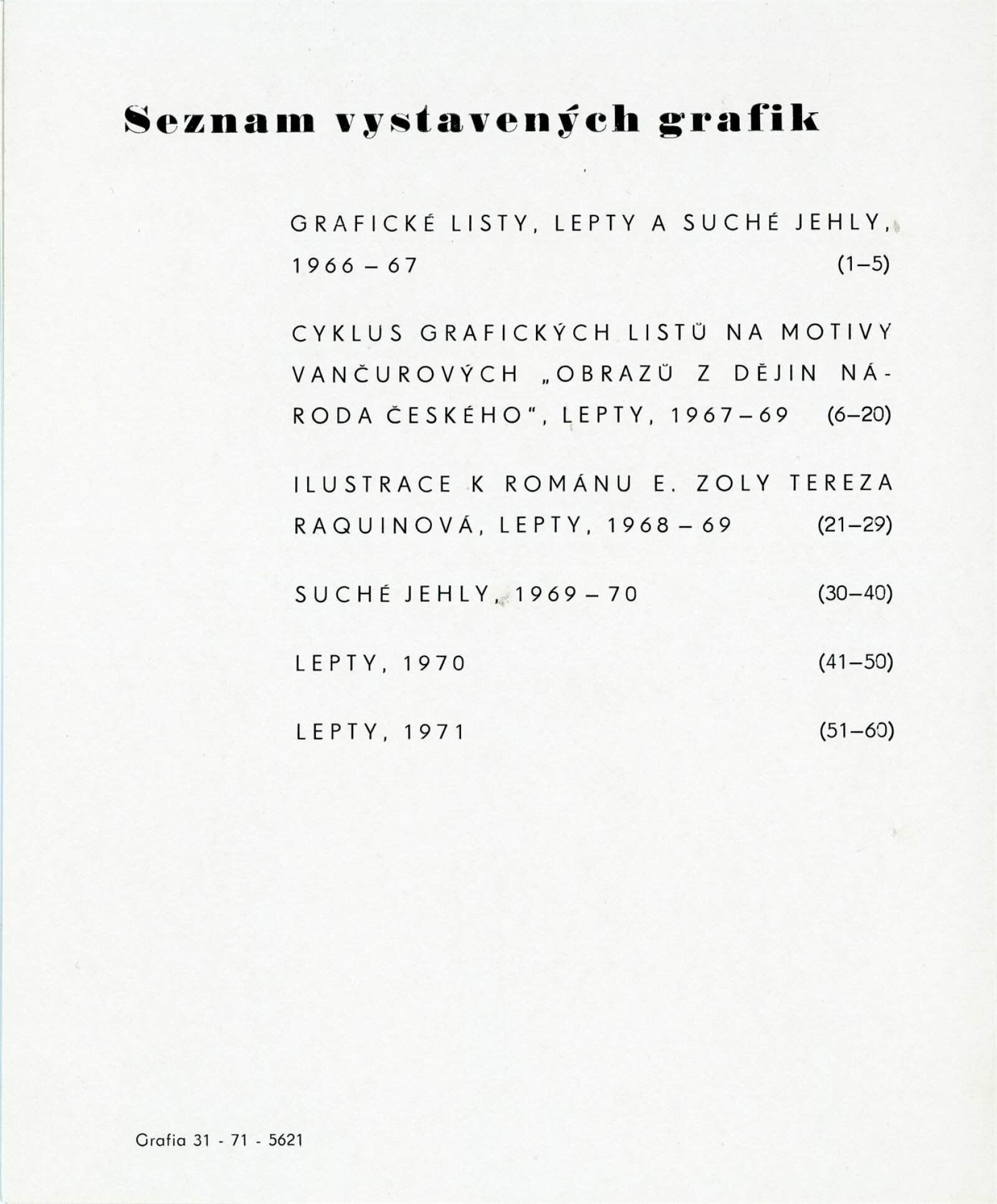 pozvánky, katalog, korespondence (žádost Evy Činčerové o výstavu v DPK z roku 1977), výstavní smlouva, recenze v tisku, katalogy (GV Jihlava, GČS Praha)