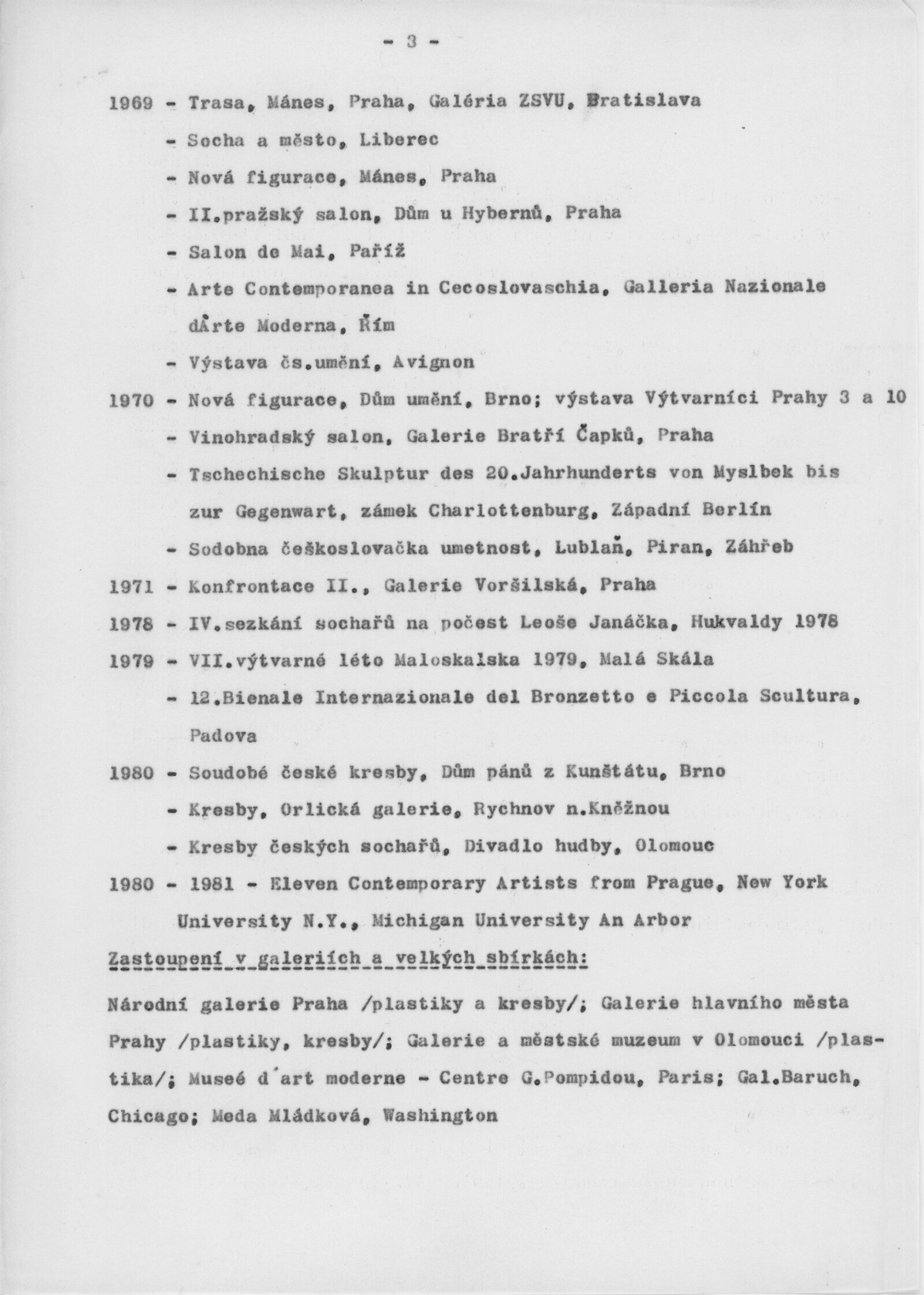 pozvánka, katalog (s poznámkami Igora Zhoře), strojopis, biografie, seznamy zapůjčených děl, rozmístění uměleckých děl, provozní korespondence, žádosti o zápůjčky, smlouvy o výpůjčce, recenze v tisku