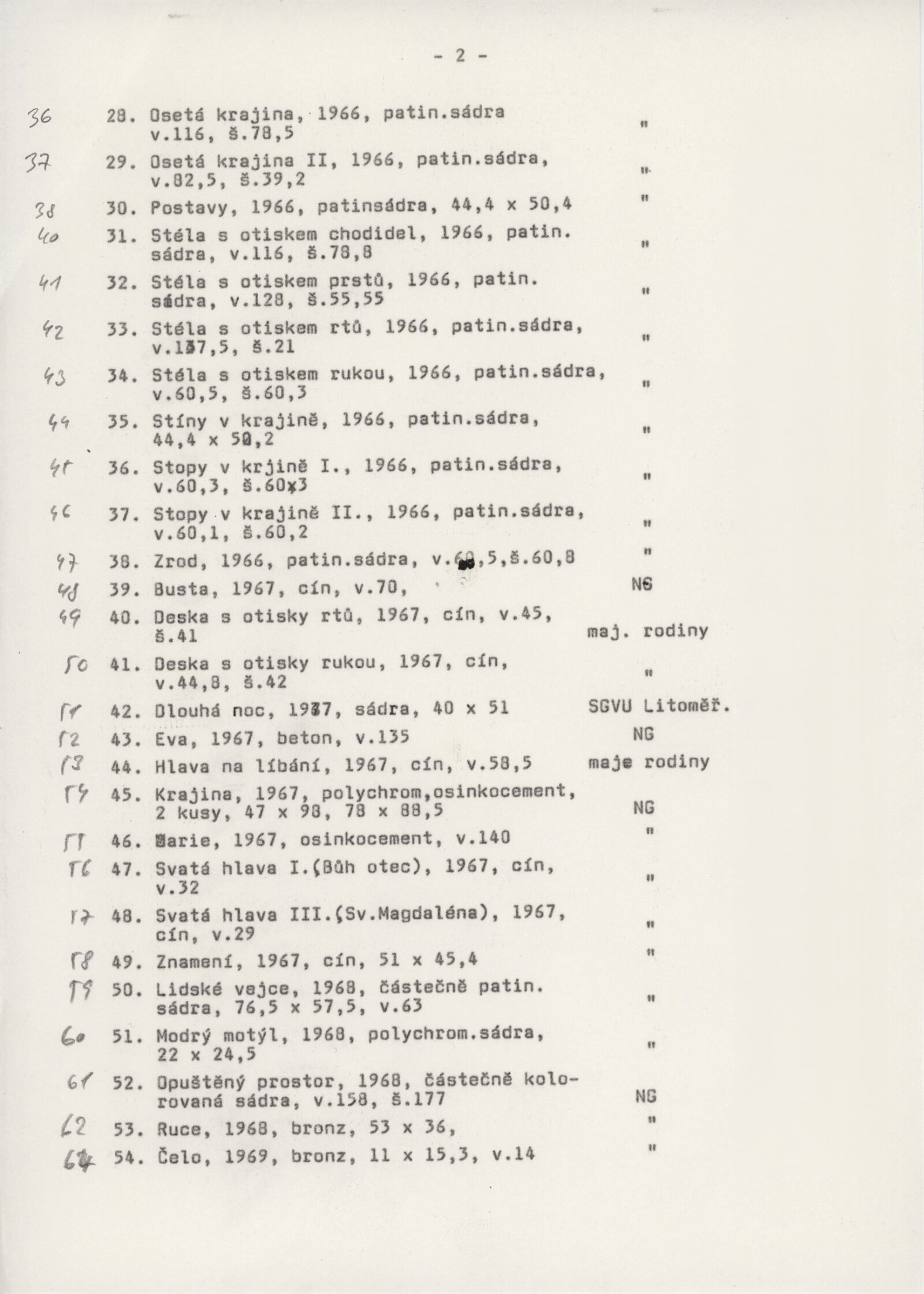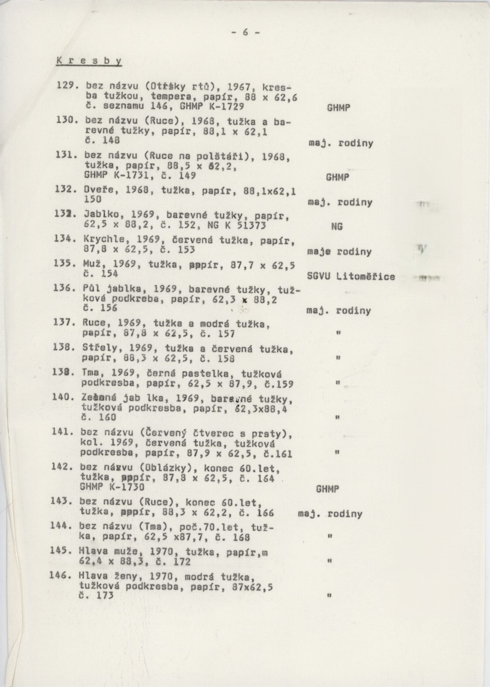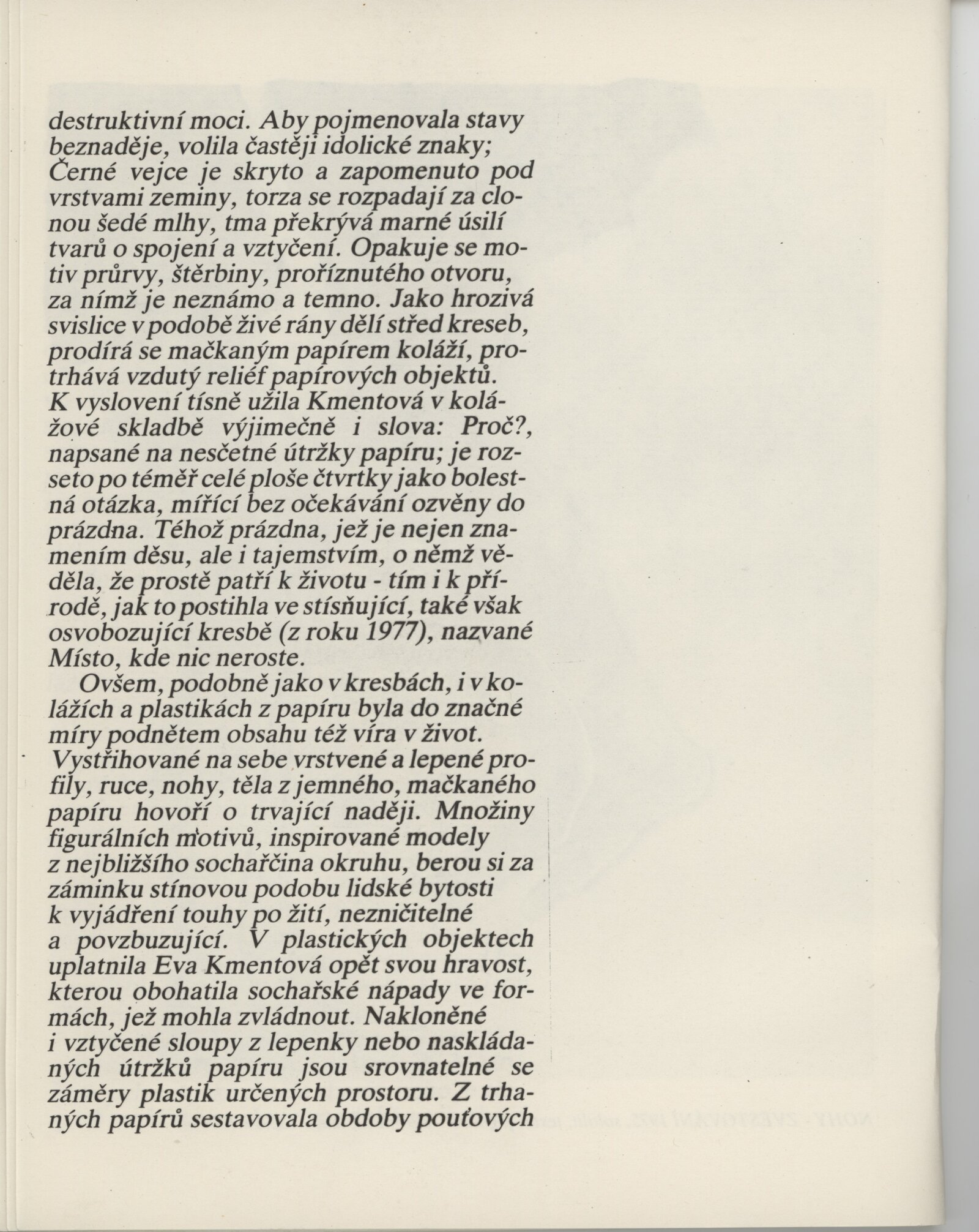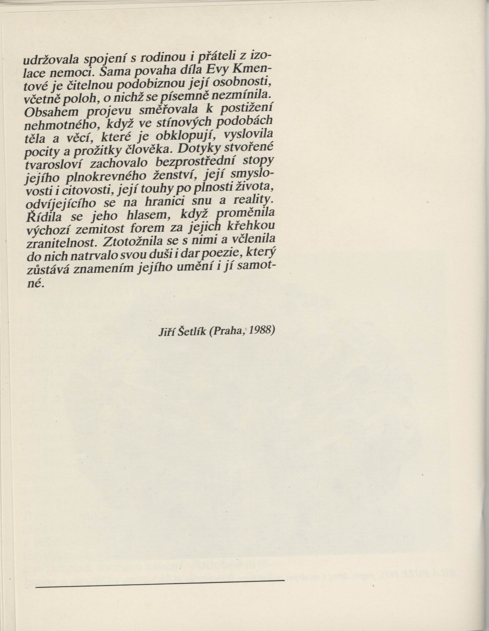 Eva Kmentová. Životní dílo: Dům umění města Brna / Dům pánů z Kunštátu, Kabinet grafiky, 1. patro, 11. 11. – 15. 10. 1990 / Text: Jiří Šetlík. – Opava: Dům umění, 1990. – [36] s., obr., seznam vystavených prací [4] s., portrét, životopis, DPK 941. – MG