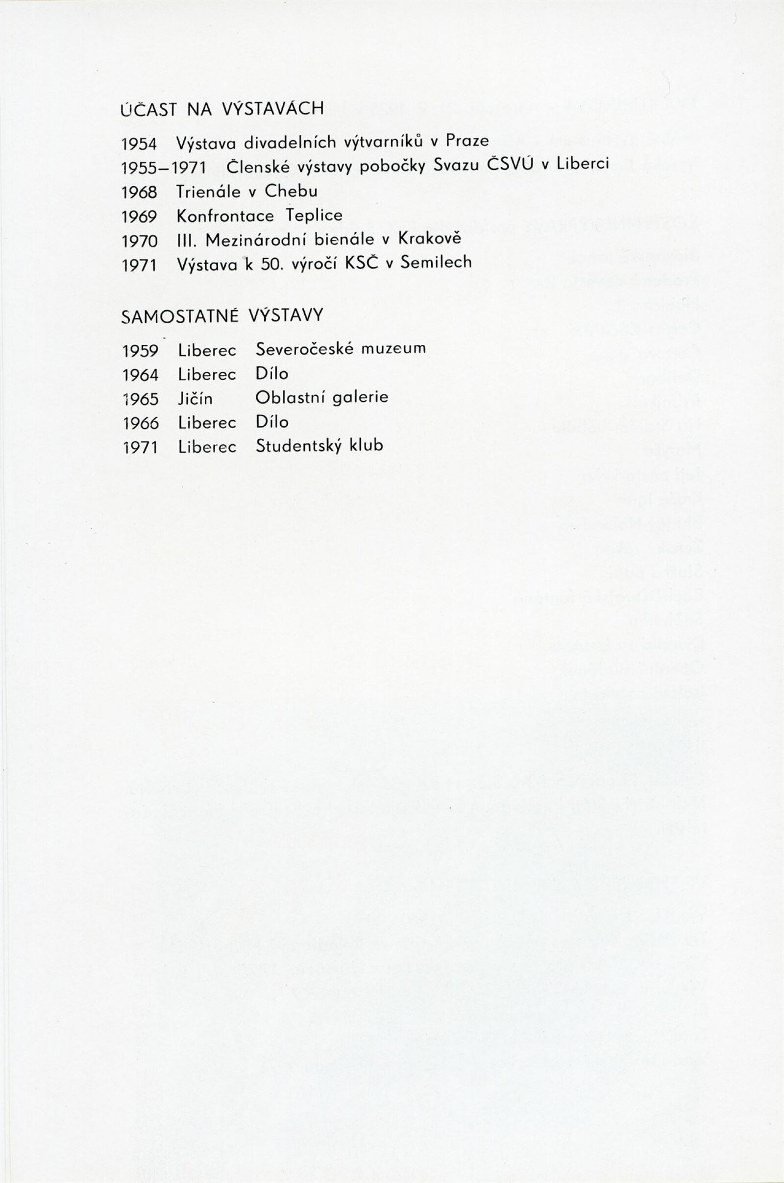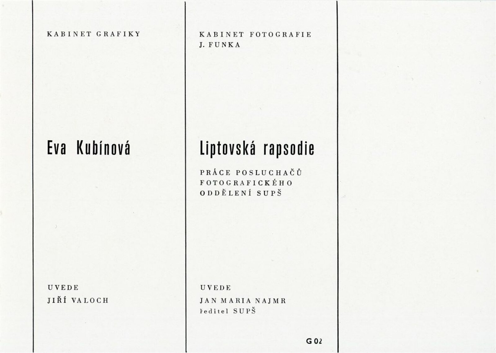 pozvánka, katalog, nátisk katalogu, fotografie výstavy a grafických děl, seznam vystavených prací, smlouva, korespondence autorky (s DU o realizaci výstavy), provozní korespondence, žádost o povolení výstavy, recenze v tisku