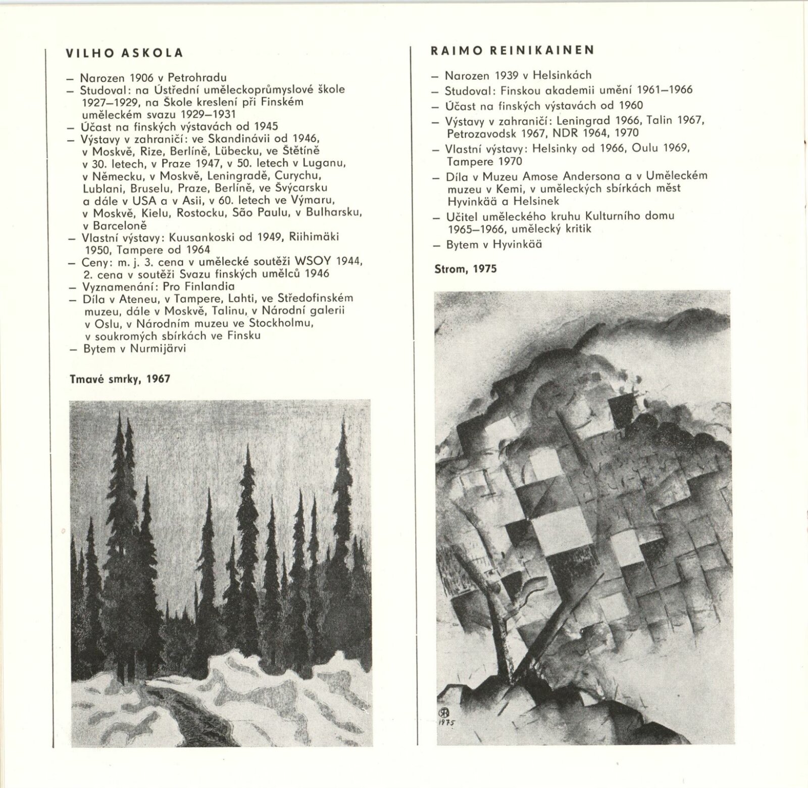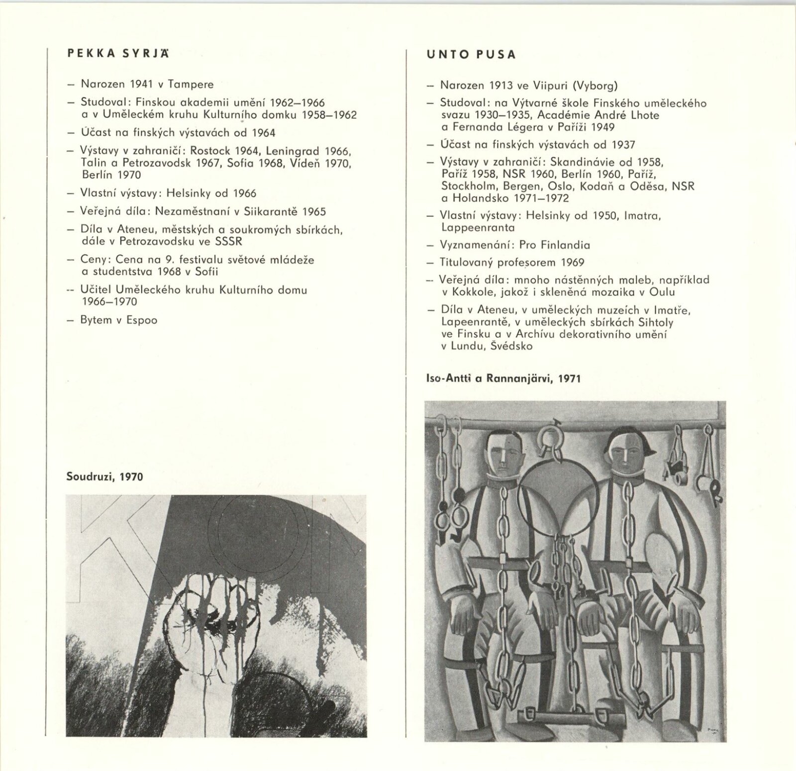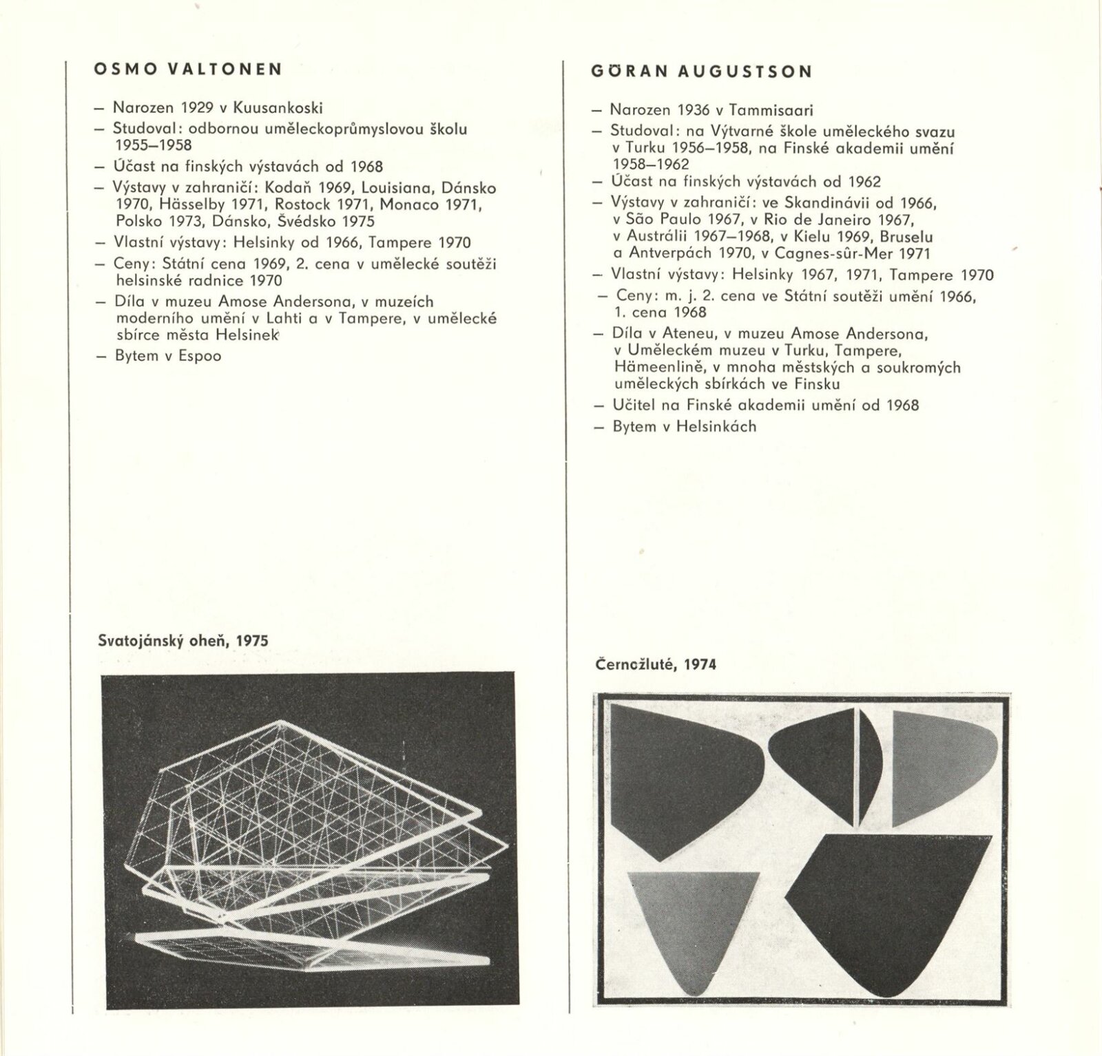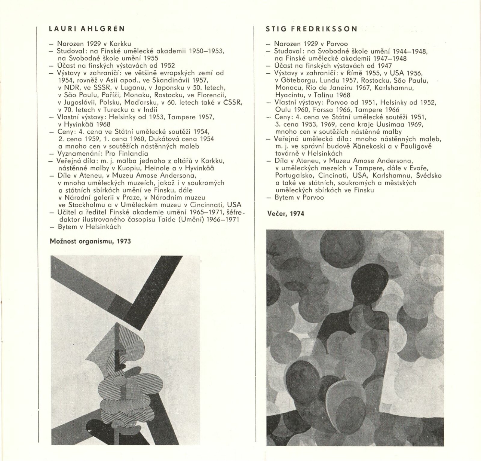 (Současné) Finské umění: Dům umění města Brna, 29. 6. – 25. 7. 1976 / Text: anonymní. – Brno: DUmB, 1976. – 26 s., obr., životní data vystavujících, DU 642. – MZK; MG