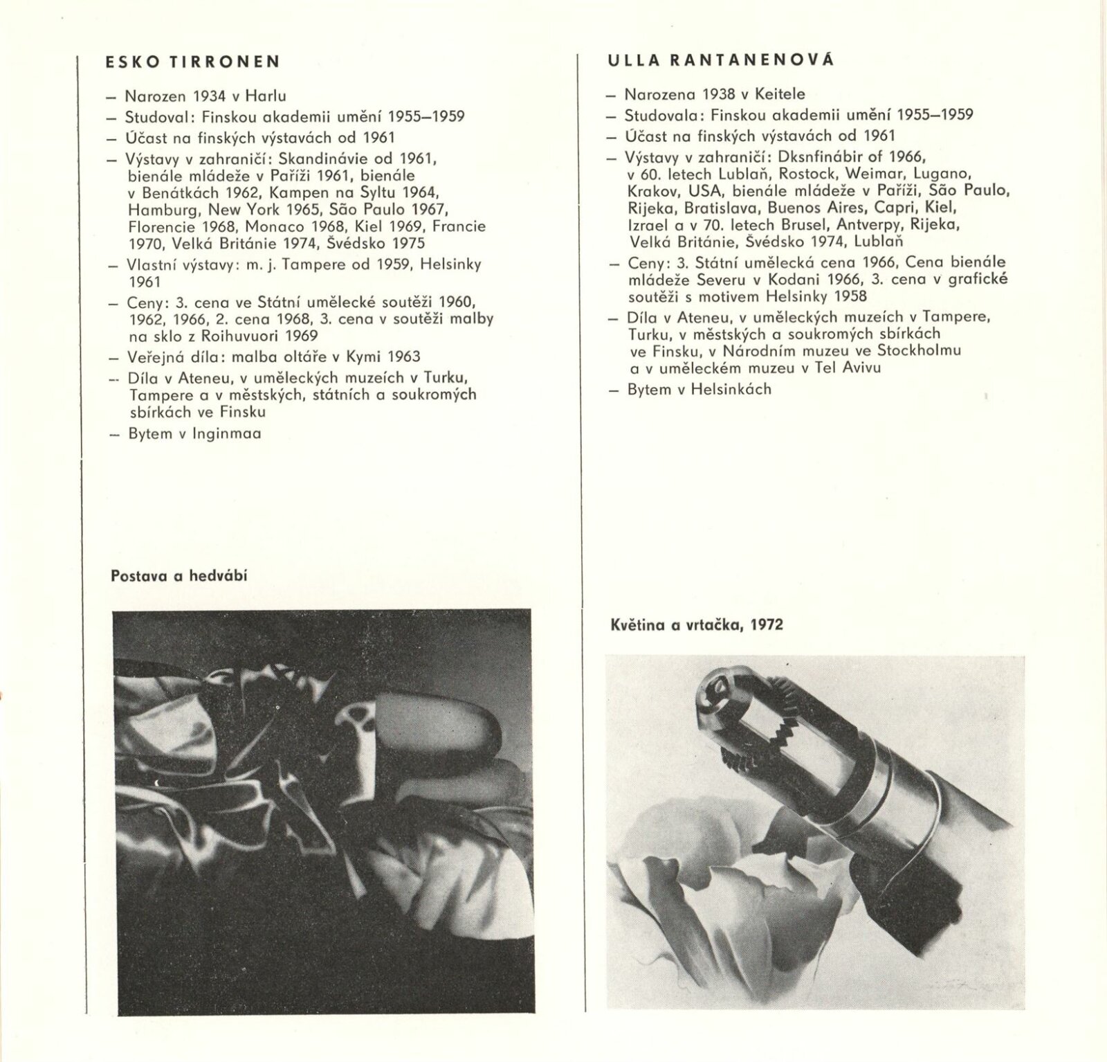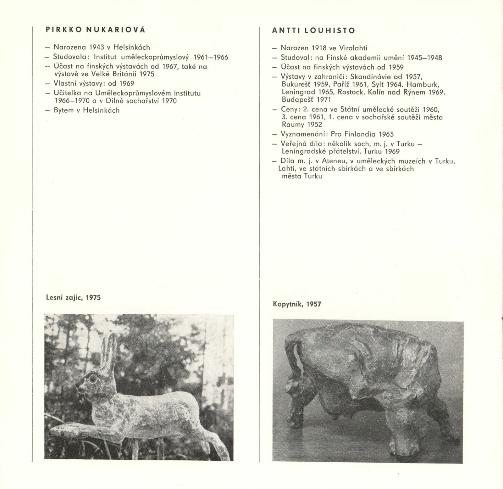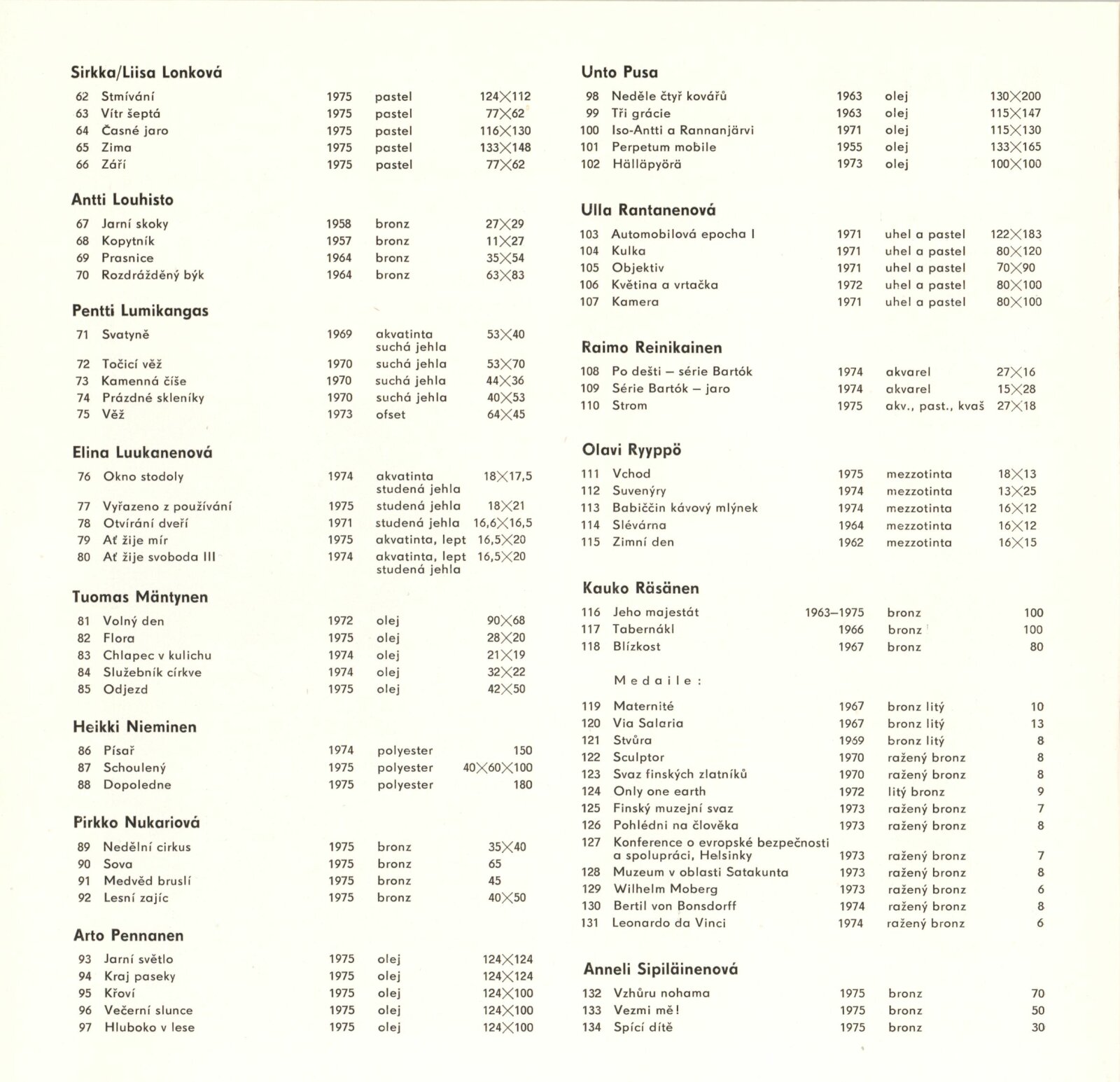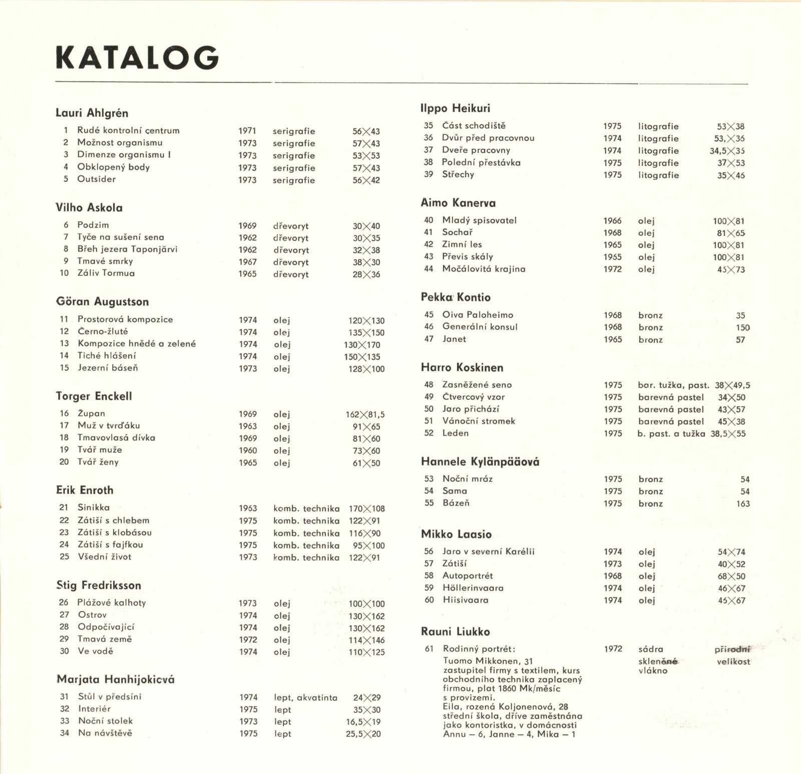 (Současné) Finské umění: Dům umění města Brna, 29. 6. – 25. 7. 1976 / Text: anonymní. – Brno: DUmB, 1976. – 26 s., obr., životní data vystavujících, DU 642. – MZK; MG