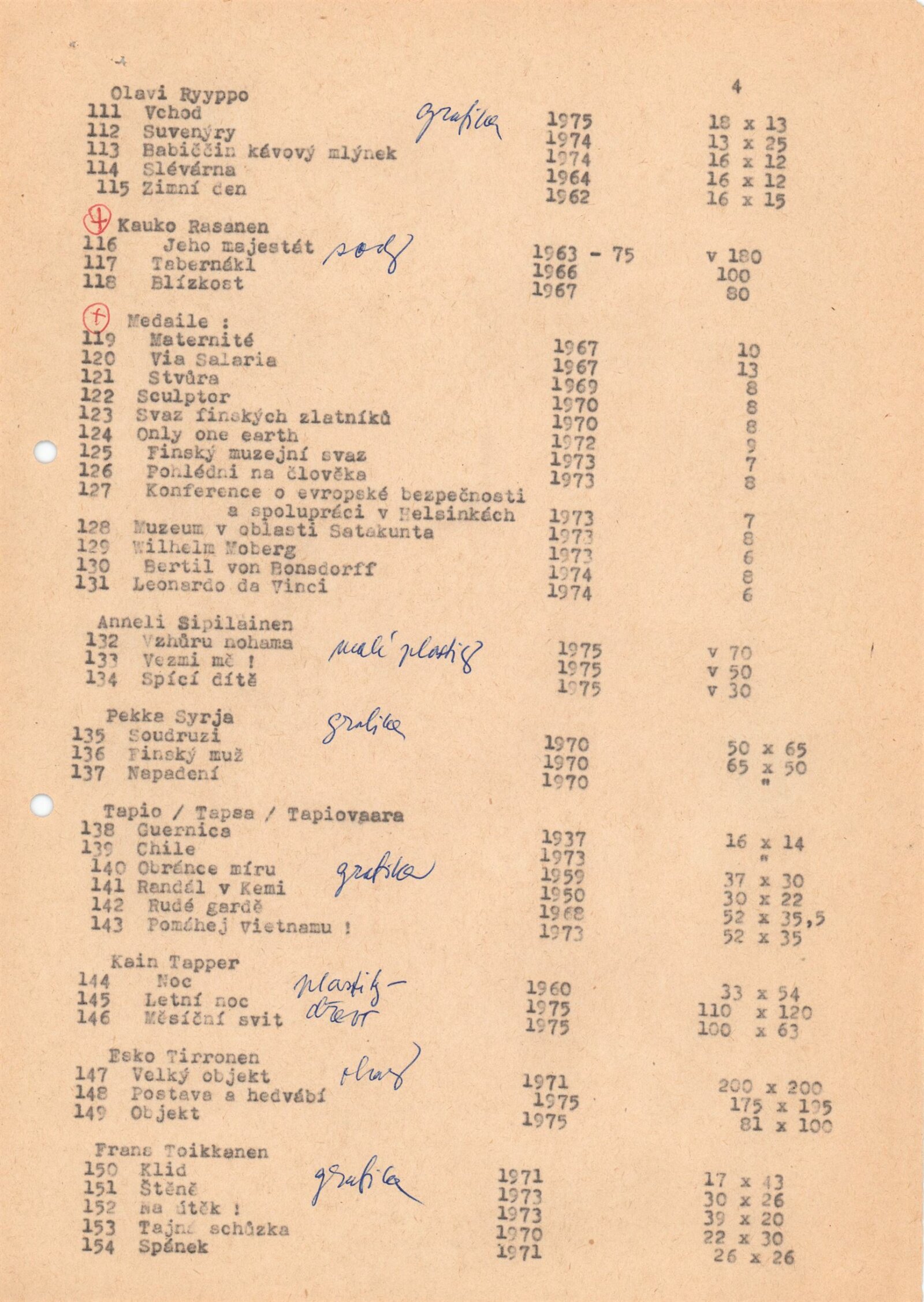pozvánky, katalogy (DU Brno, Helsinky), katalog převzaté výstavy (Berlín 1976), seznam vystavených děl, fotografie vernisáže a výstavy, fotoreprodukce děl, korespondence, převzetí výstavy z Východoslovenské galerie v Košicích, provozní korespondence, výstavní smlouva, soupis autorů a děl, žádost o povolení výstavy, podklady pro katalog, recenze v tisku