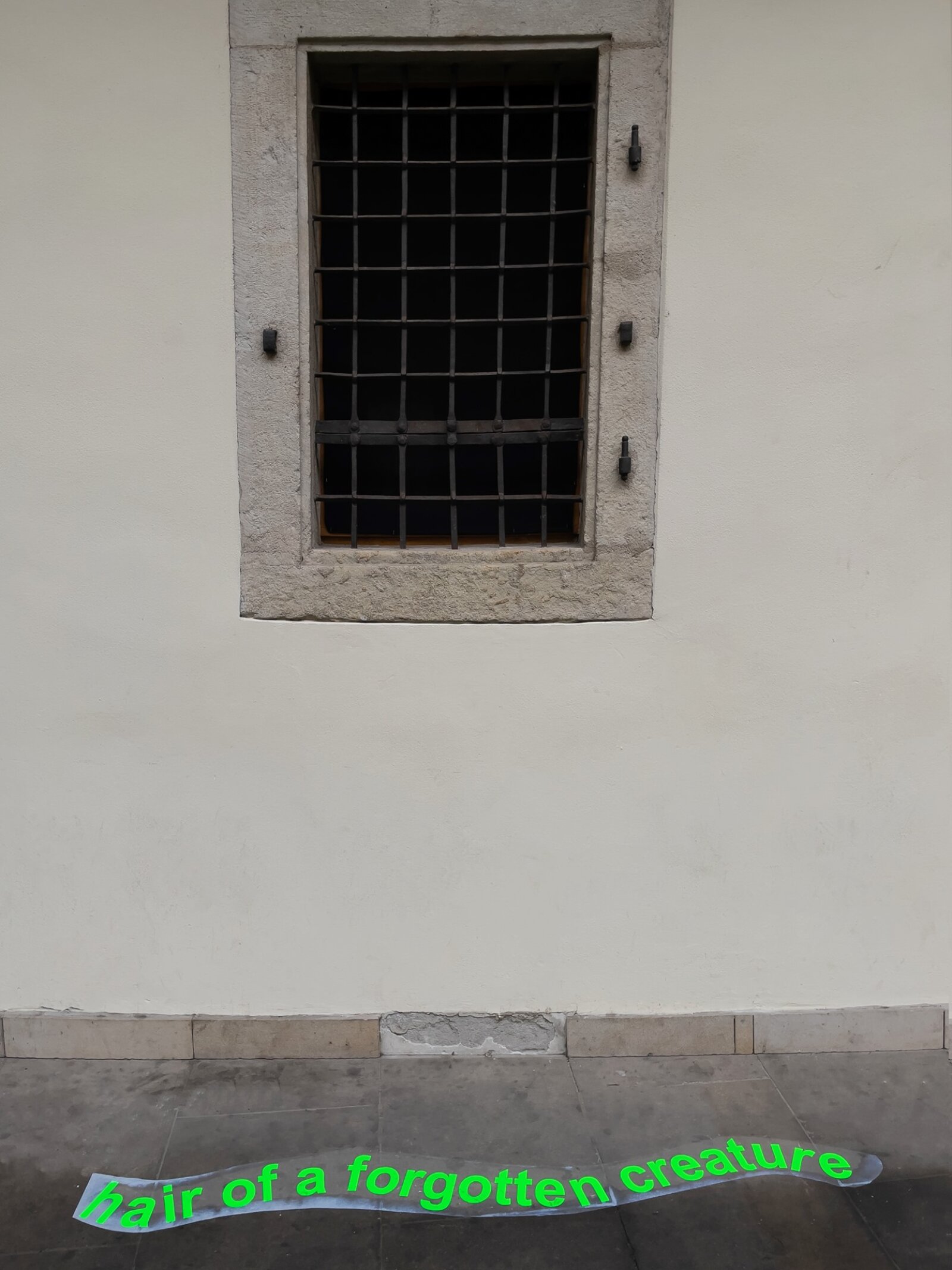 Another coded messages can be read in the sound layer of the exhibition. It is derived from a badly done machine translation created by an application which directly translates a scanned photo. Zuza took a photograph of a popular-science text from the information board at Hády. The stylistic and logical inaccuracies of the translation construct a metaphorical text, a kind of conceptual language full of urgent pleas and sometimes even mythological associations. Zuza thus assembles a picture from multiple temporalities; its reading depends on our ability to associate and the ability to create fictitious scripts based on these associations.