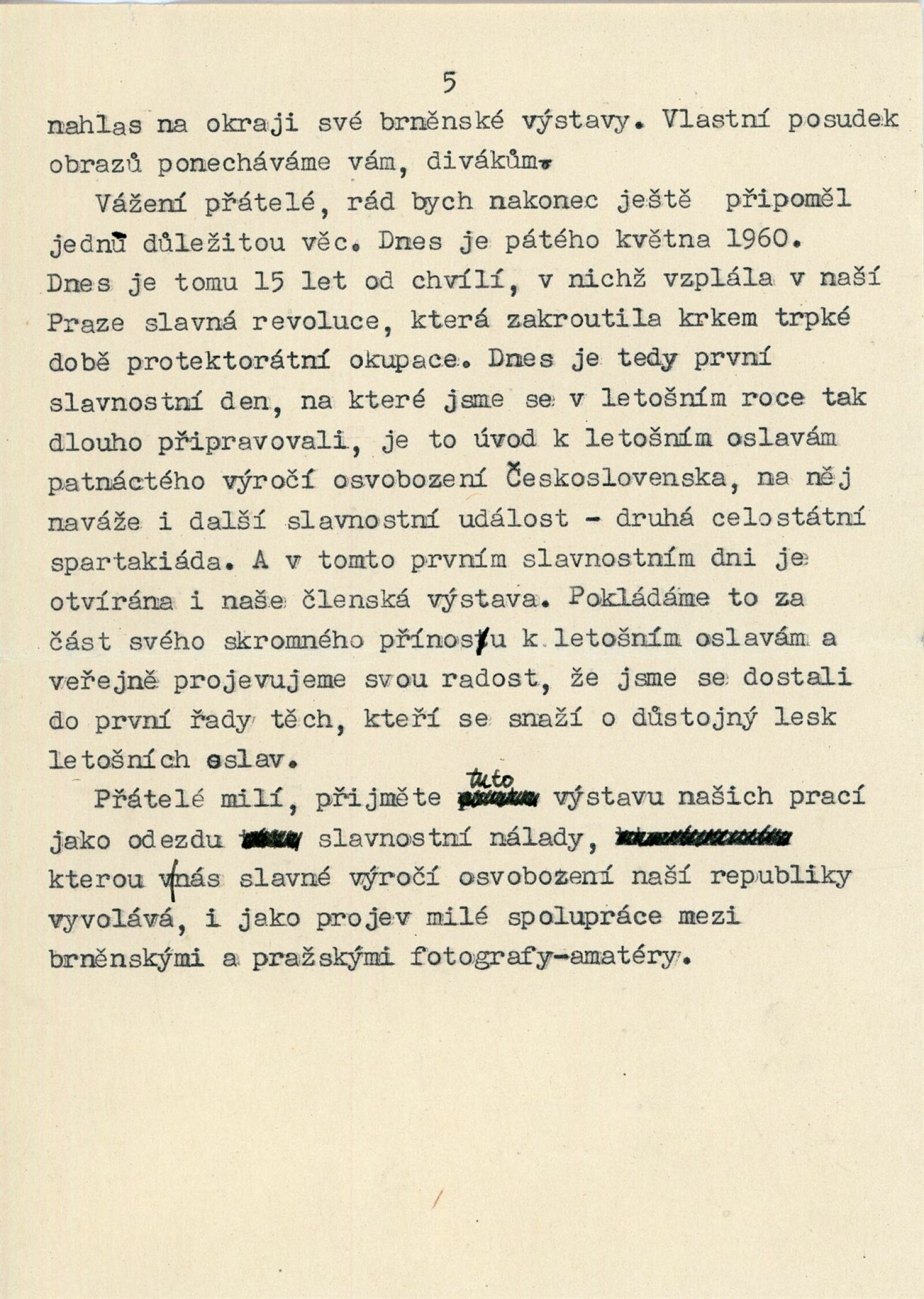 úvodní řeč, korespondence (ČKD/DU), katalog z výstavy (Praha, 1959)