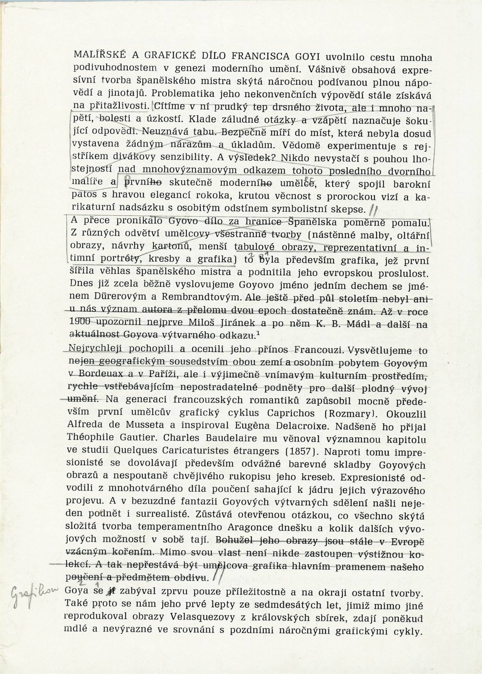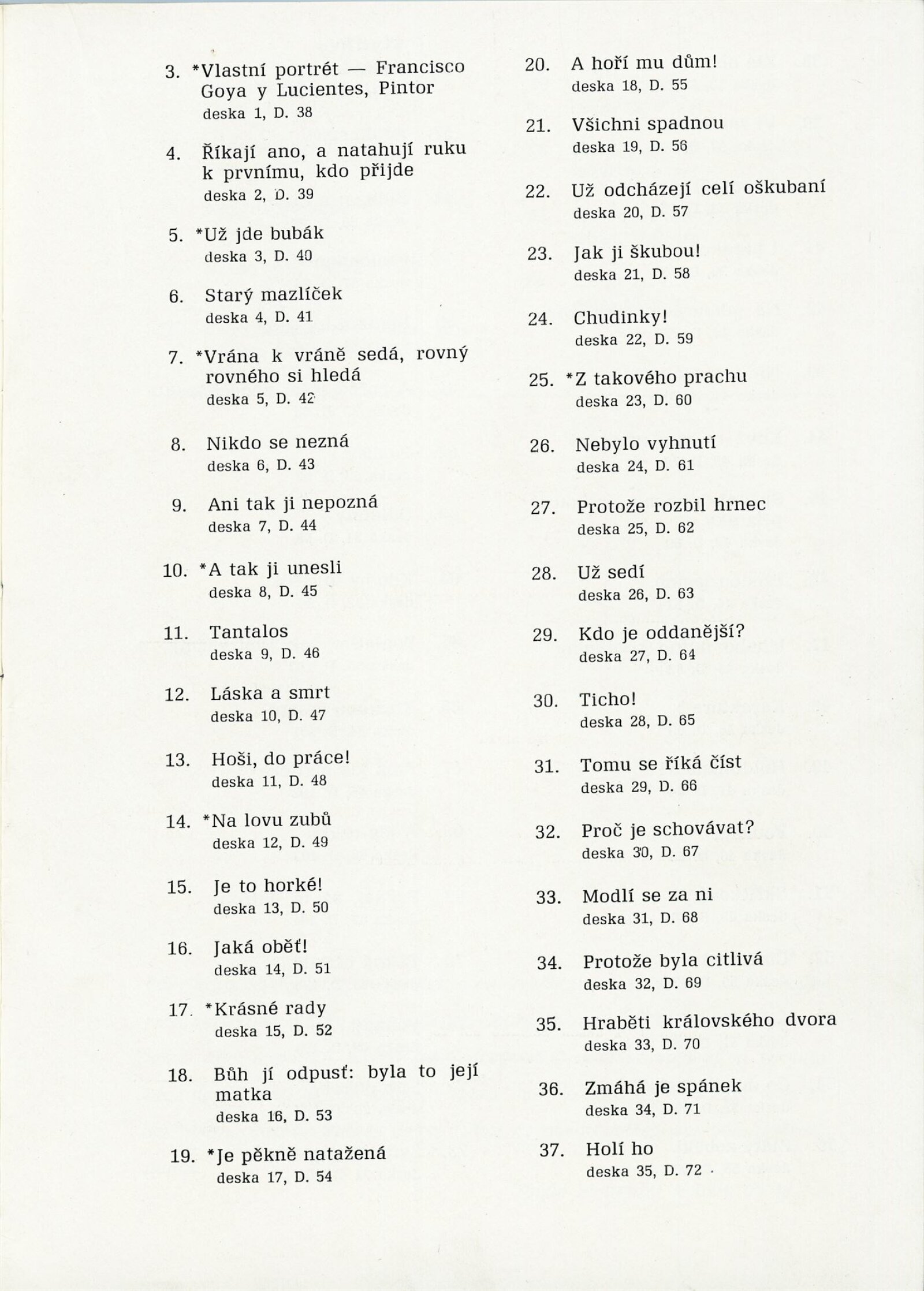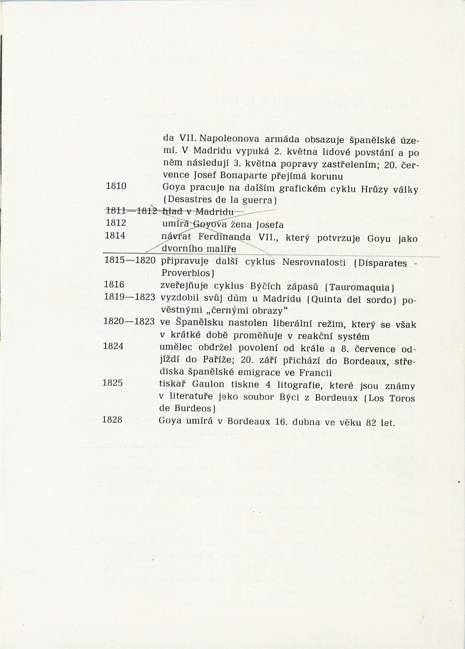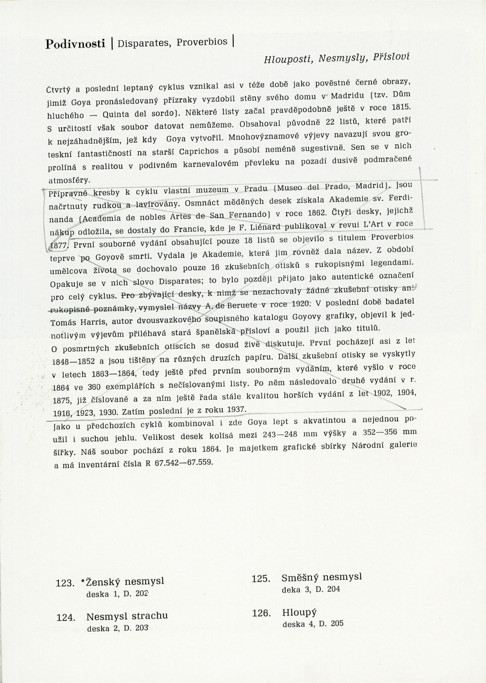 Francisco Goya. Grafické dílo: Dům umění města Brna / Dům pánů z Kunštátu, 1. patro, 31. 3. – 29. 4. 1968 / Převzatý katalog. Francisco Goya. Grafické dílo: Grafická sbírka Národní galerie v Praze, 1968 / Text: Eva Bužgová. – Praha: Národní galerie, 1968. – 34 s., obr., DPK 375. – MZK; MG