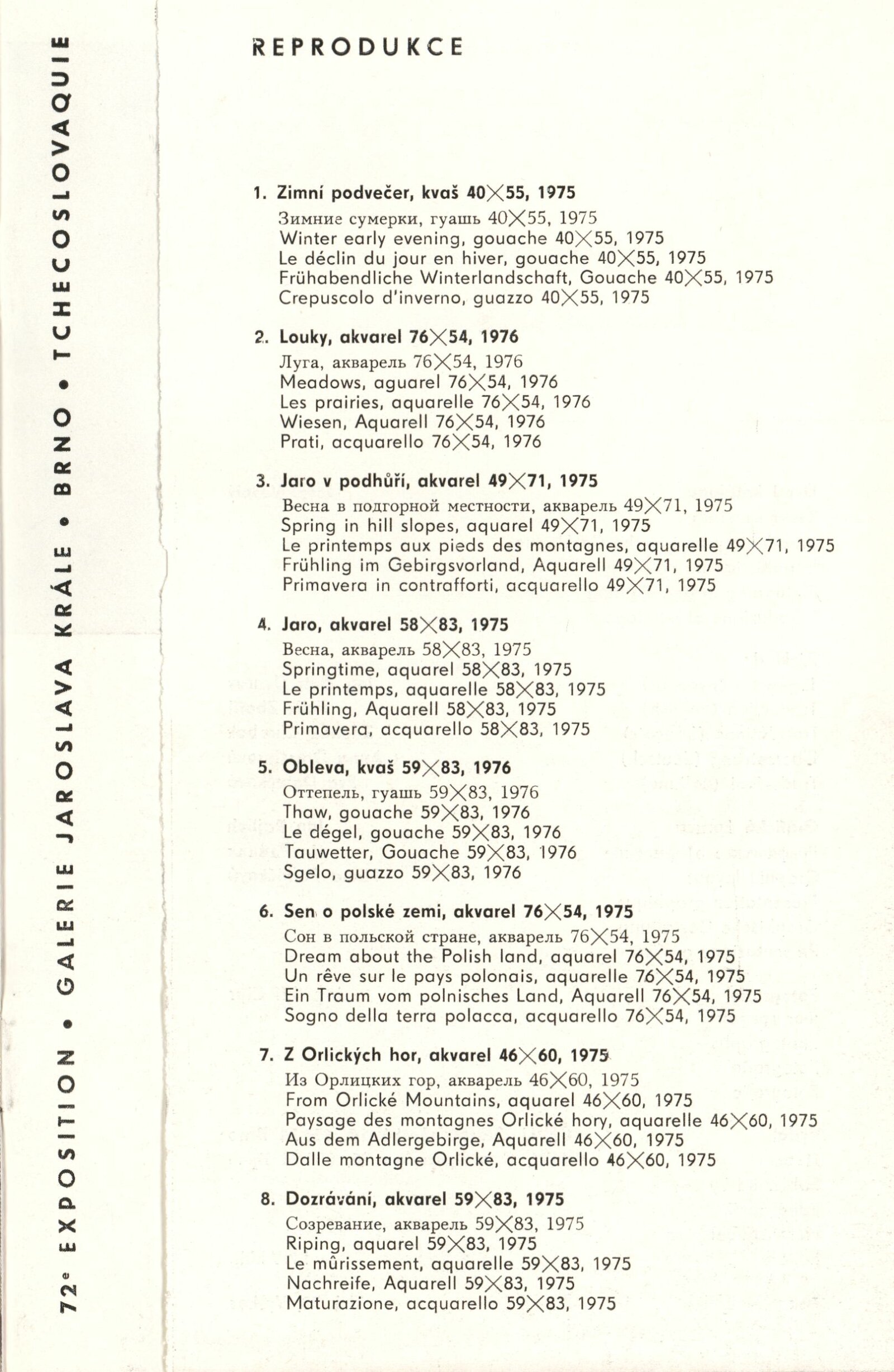 pozvánka, katalog, seznam vystavených děl, inspekční zprávy, recenze v tisku