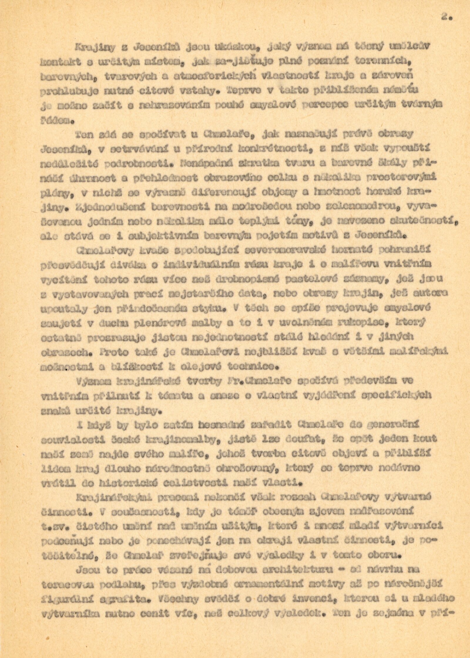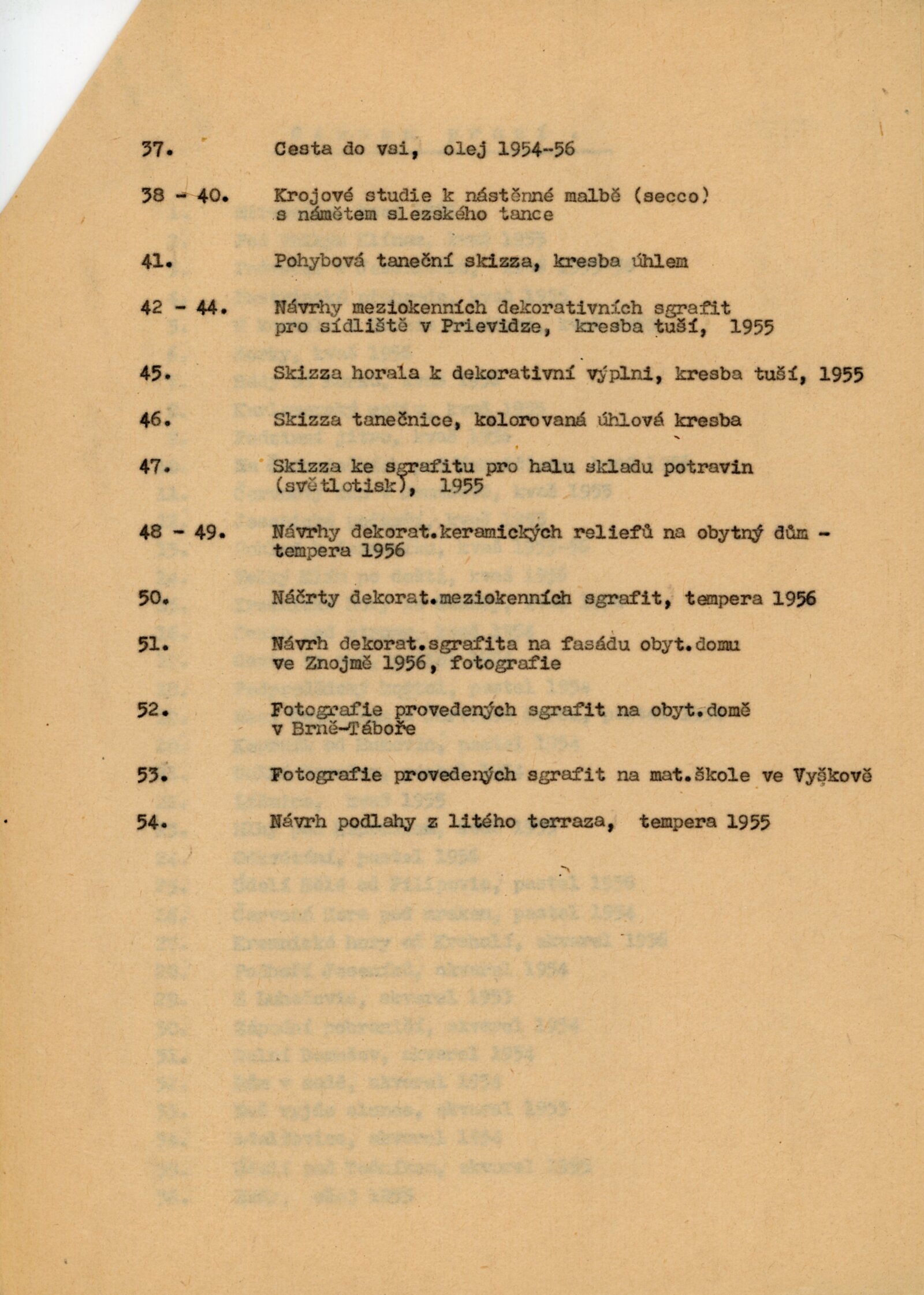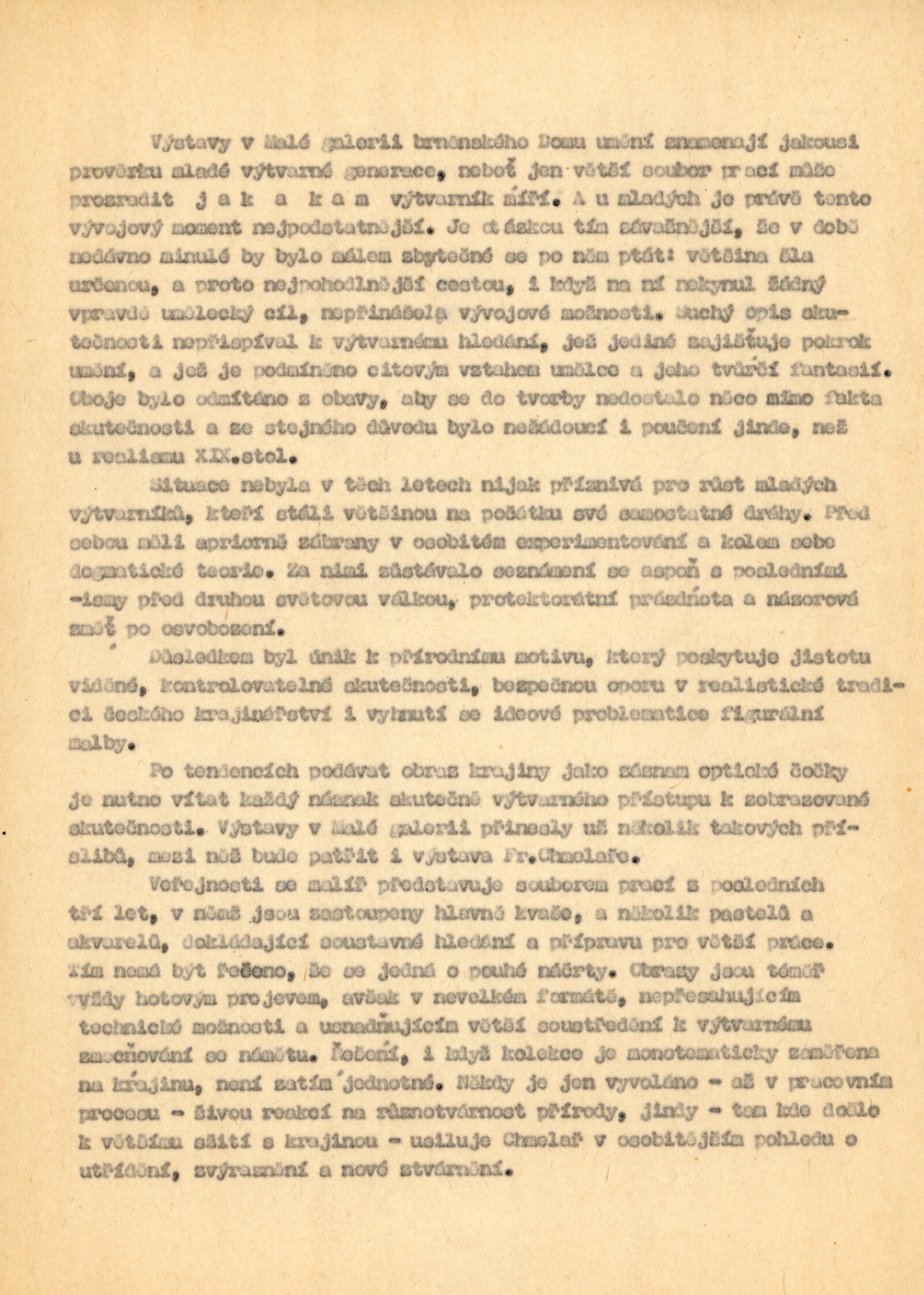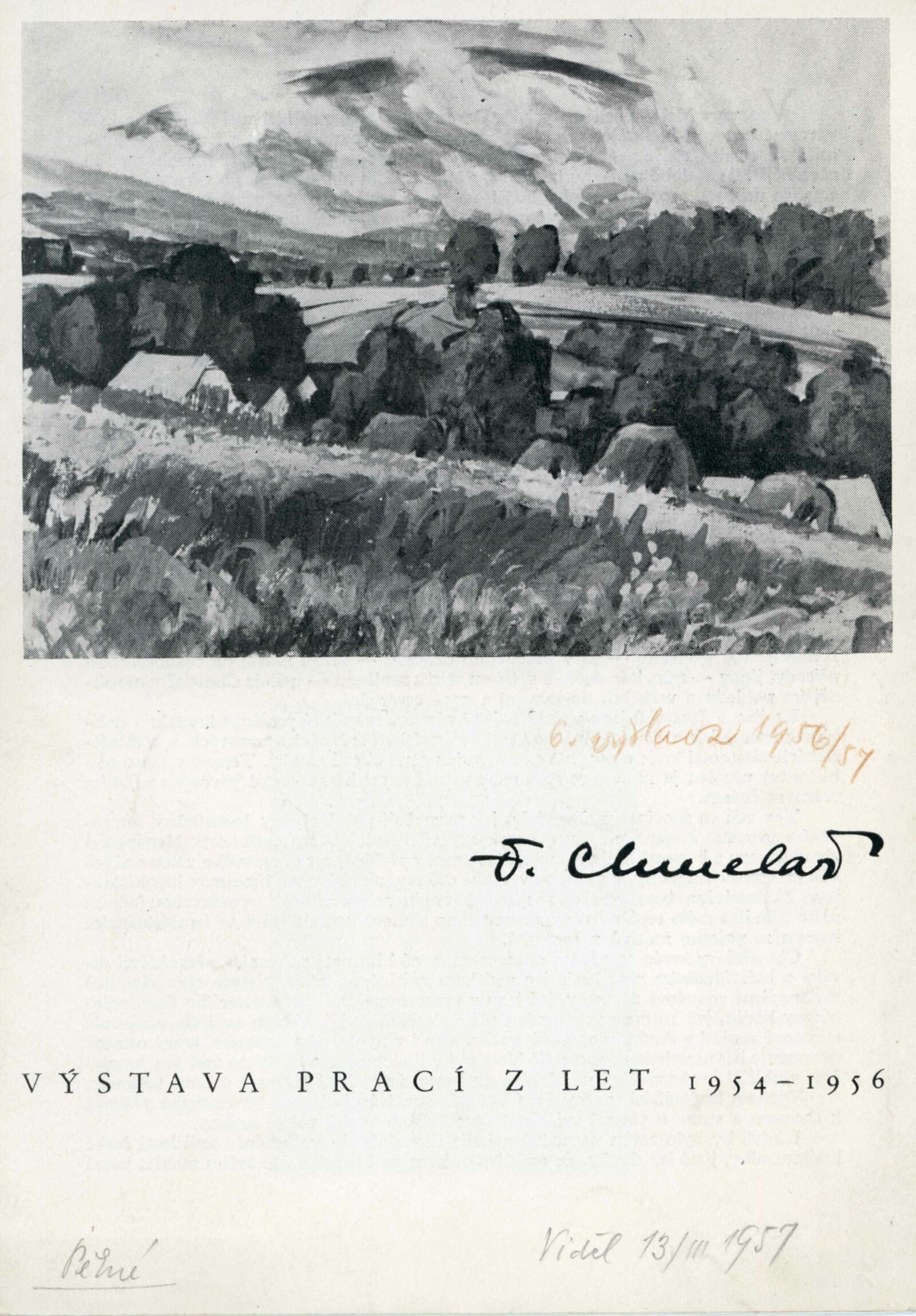 pozvánka, katalog, text katalogu a pozvánky, medailon, náhledy reprodukcí pro katalog, seznam prací, provozní korespondence, pozvání na jury obrazů Františka Chmelaře