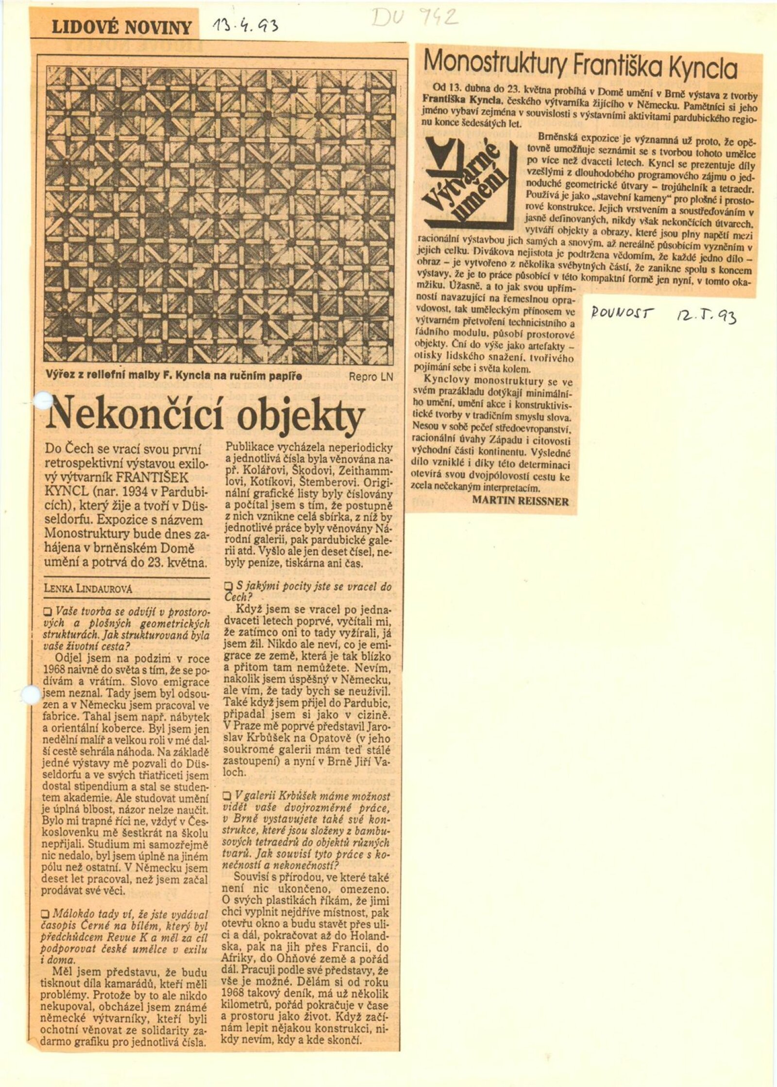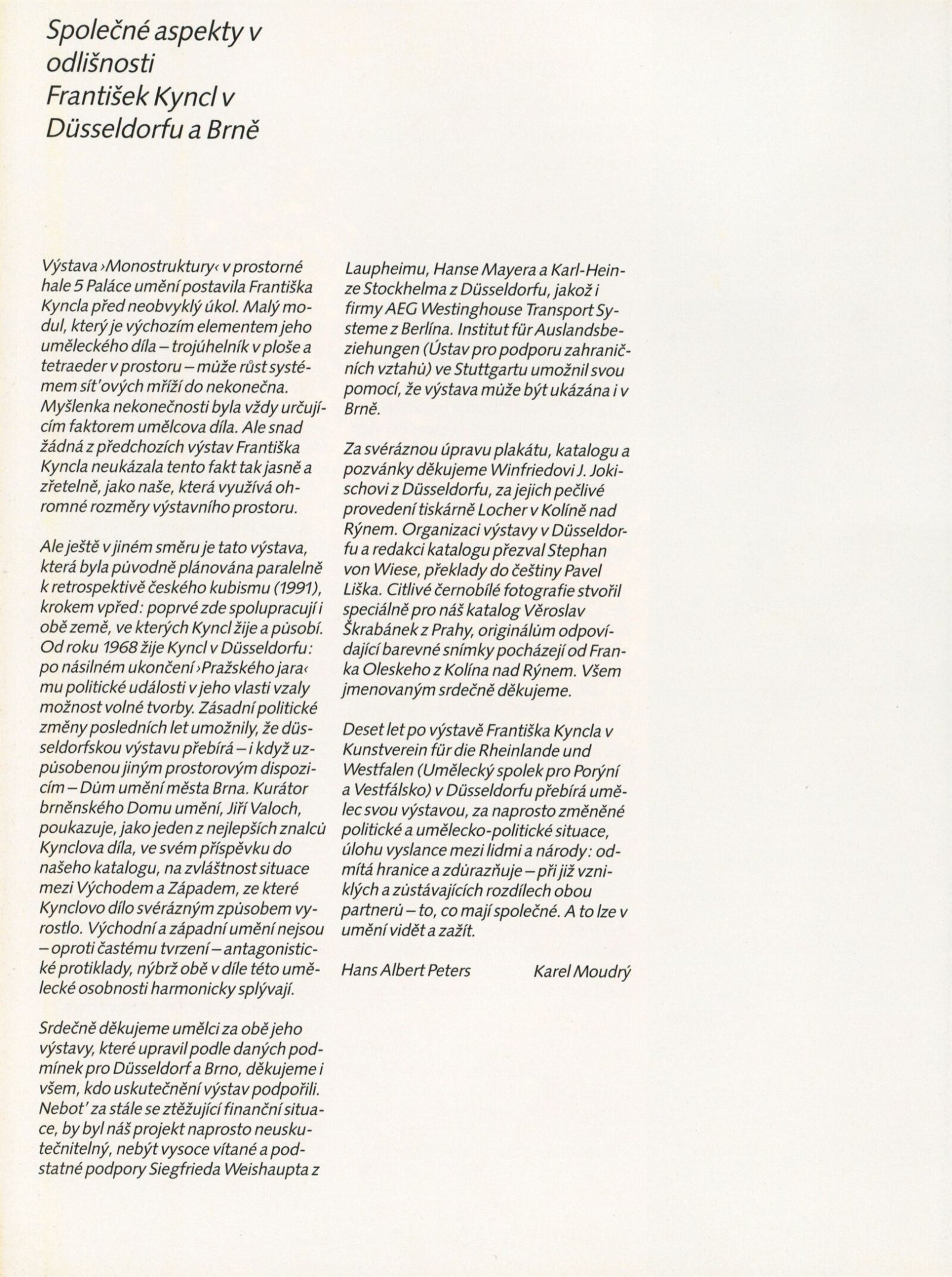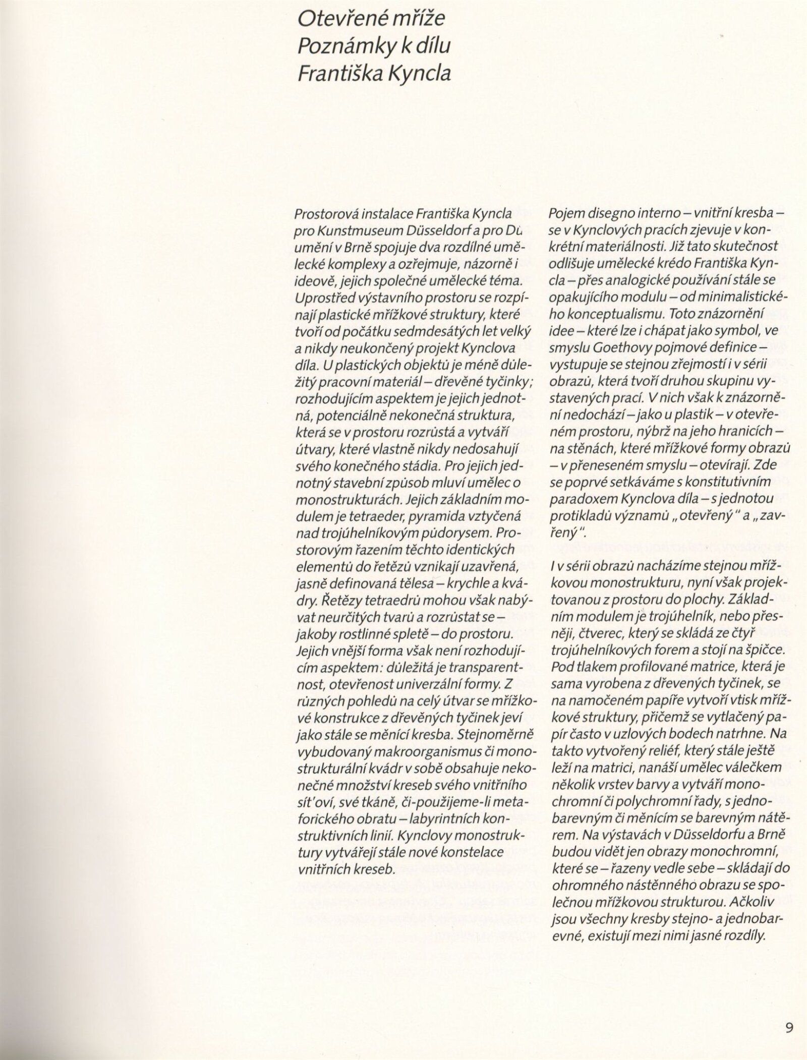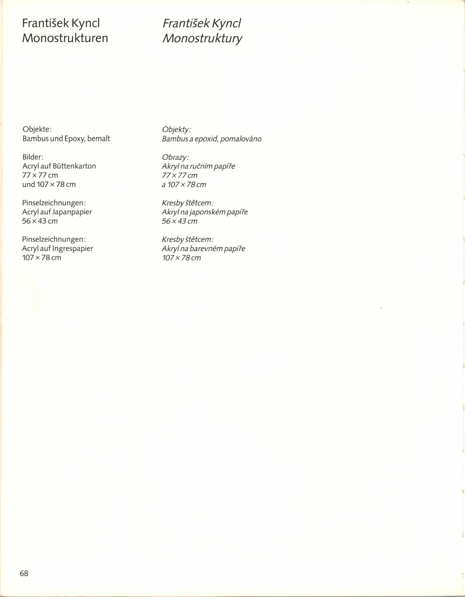 František Kyncl. Monostruktury: ... Dům umění města Brna 13. 4. – 23. 5. 1993 / Text Hans Albers Peters, Karel Moudrý, Stephan von Wiese, Jiří Valoch. - Düsseldorf: Kunstmuseum, - 73 s., obr Portrét, výstavy DU 942; MG