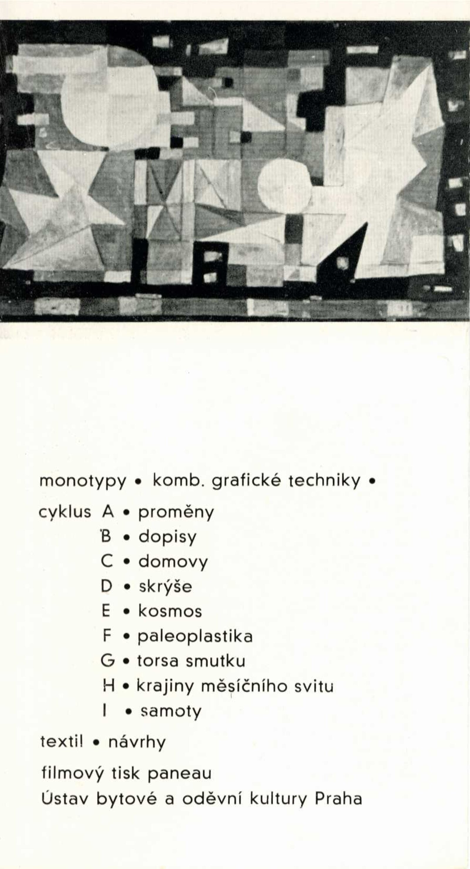 pozvánka, katalog, strojopis textu katalogu, fotografie děl, korespondence (rukopis žádosti o výstavu), smlouva k výstavě, recenze v tisku