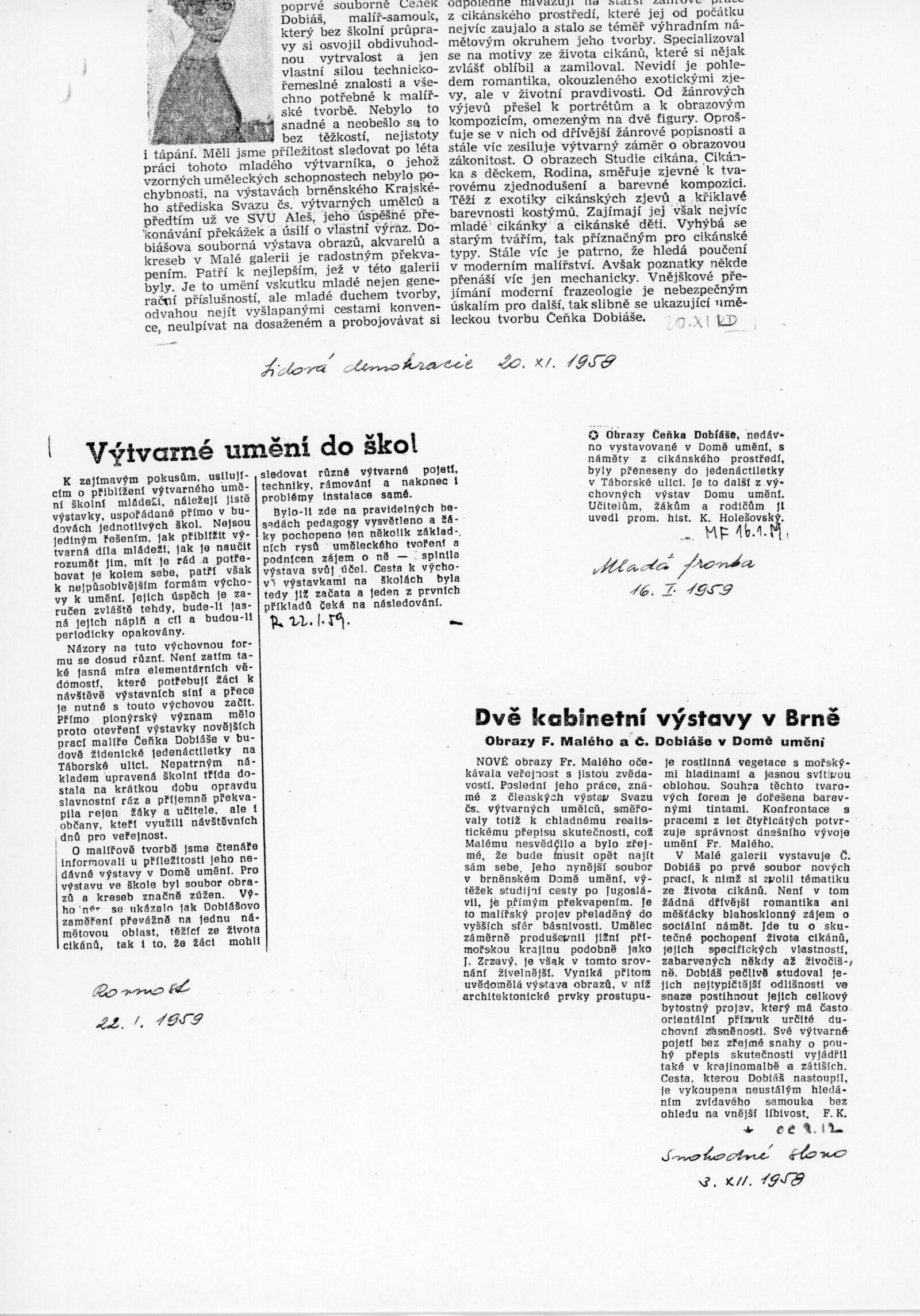 František Malý. Obrazy a kresby 1956–1958: Dům umění města Brna, 8. 11. – 7. 12. 1958 / Text: J. B. Svrček. – skládačka 6 s., obr., DU 317. – MZK; MG; MMB
