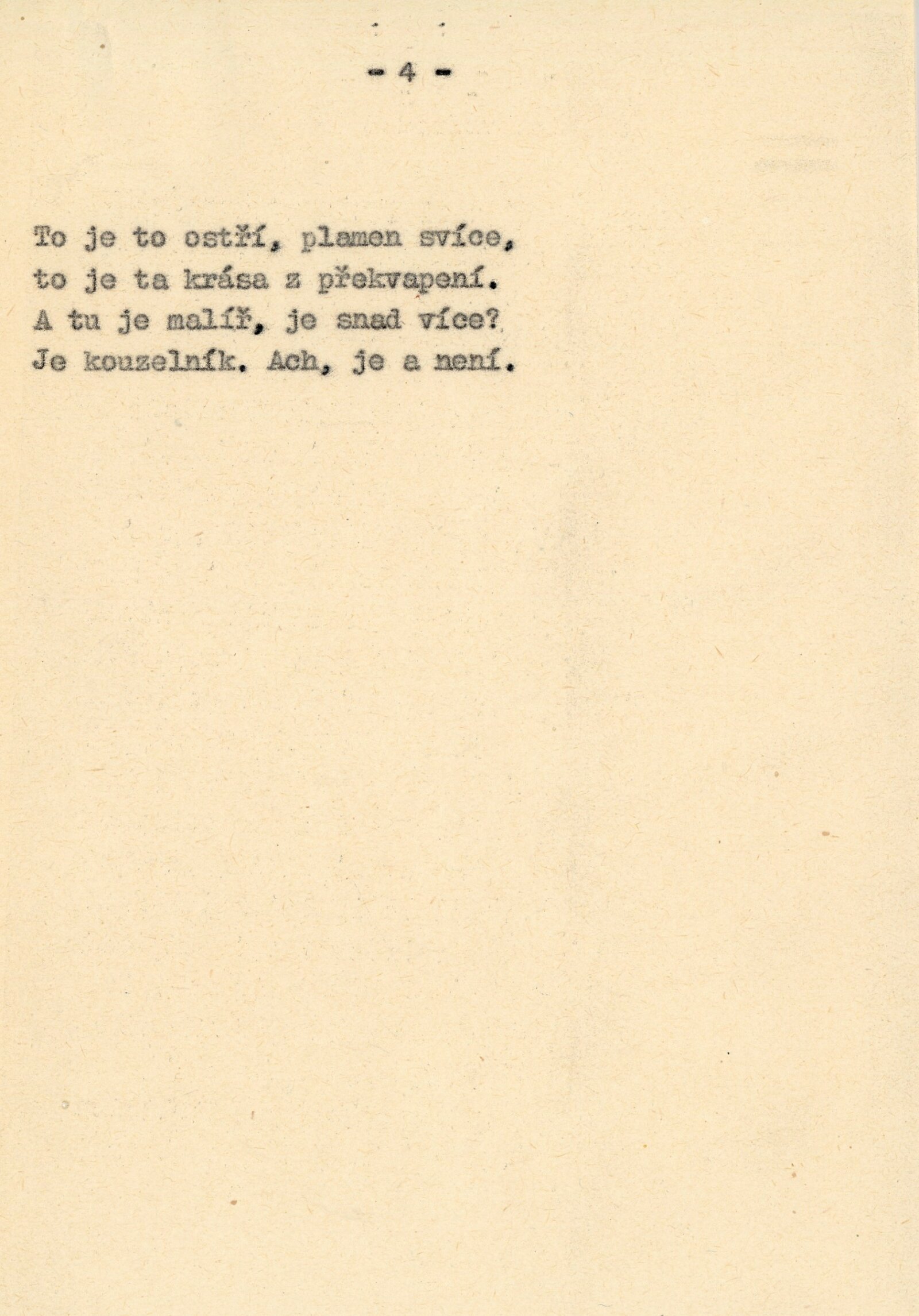 pozvánky, katalog, seznam vystavených děl, strojopis básní (Vladimír Holan, František Hrubín, Jiří Kolář, Miloš Macourek, Vítězslav Nezval, Jaroslav Seifert), fotografie autora a děl, korespondence (se SČVU, korespondence o zapůjčení děl – soukromí majitelé + instituce, příprava vernisáže, Adolf Kroupa, Dagmar Rosůlková, provozní korespondence), reverzy o přijetí a předání děl, adresy majitelů, recenze v tisku, katalog a plakát (výstava v Mánesu 1962, katalog Galerie Josef R. Vilímek 1943)