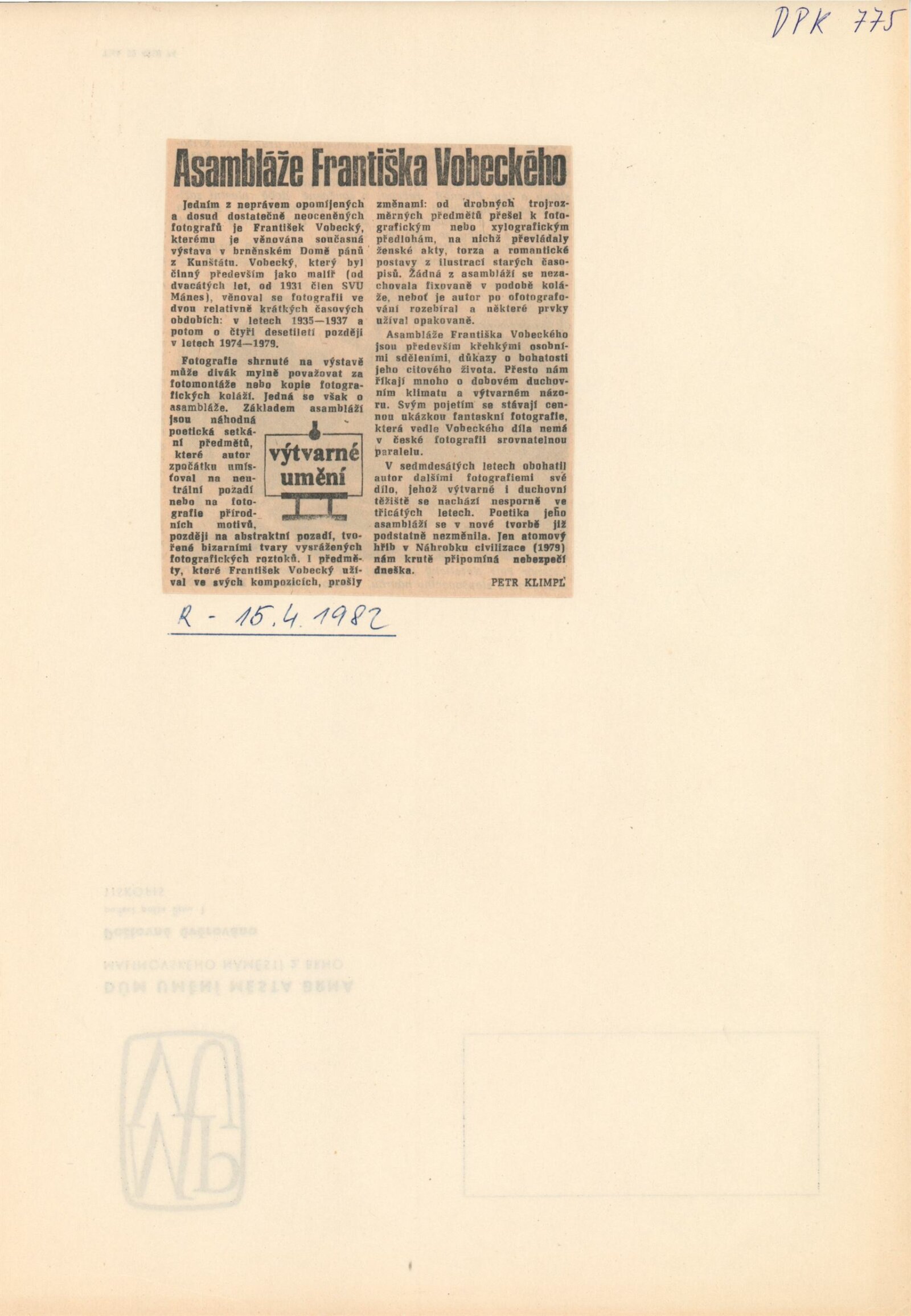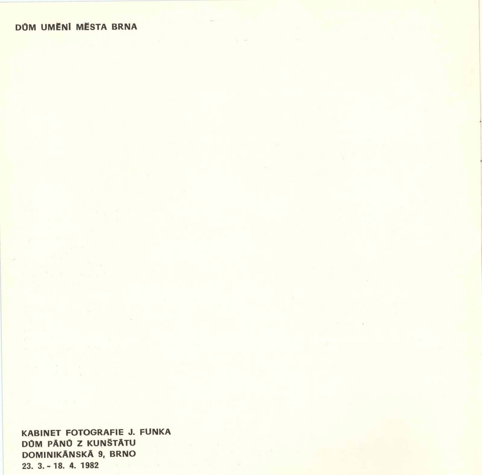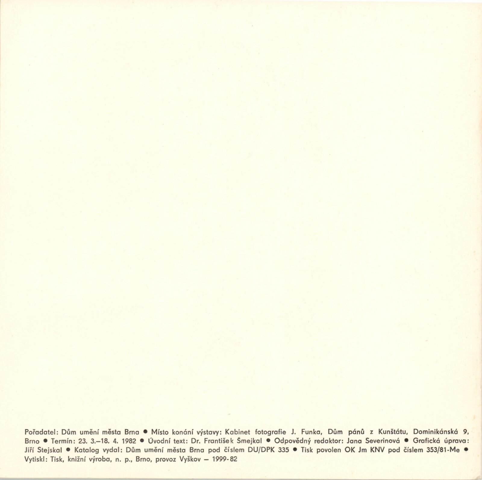 František Vobecký. Fotografie: Dům umění / Dům pánů z Kunštátu, Kabinet fotografie Jaromíra Funka, 23. 3. – 18. 4. 1982 / Text: František Šmejkal. – Brno: DUmB, 1982. – 16 s., obr., životní data, výstavy, DPK 775. – MZK; MMB