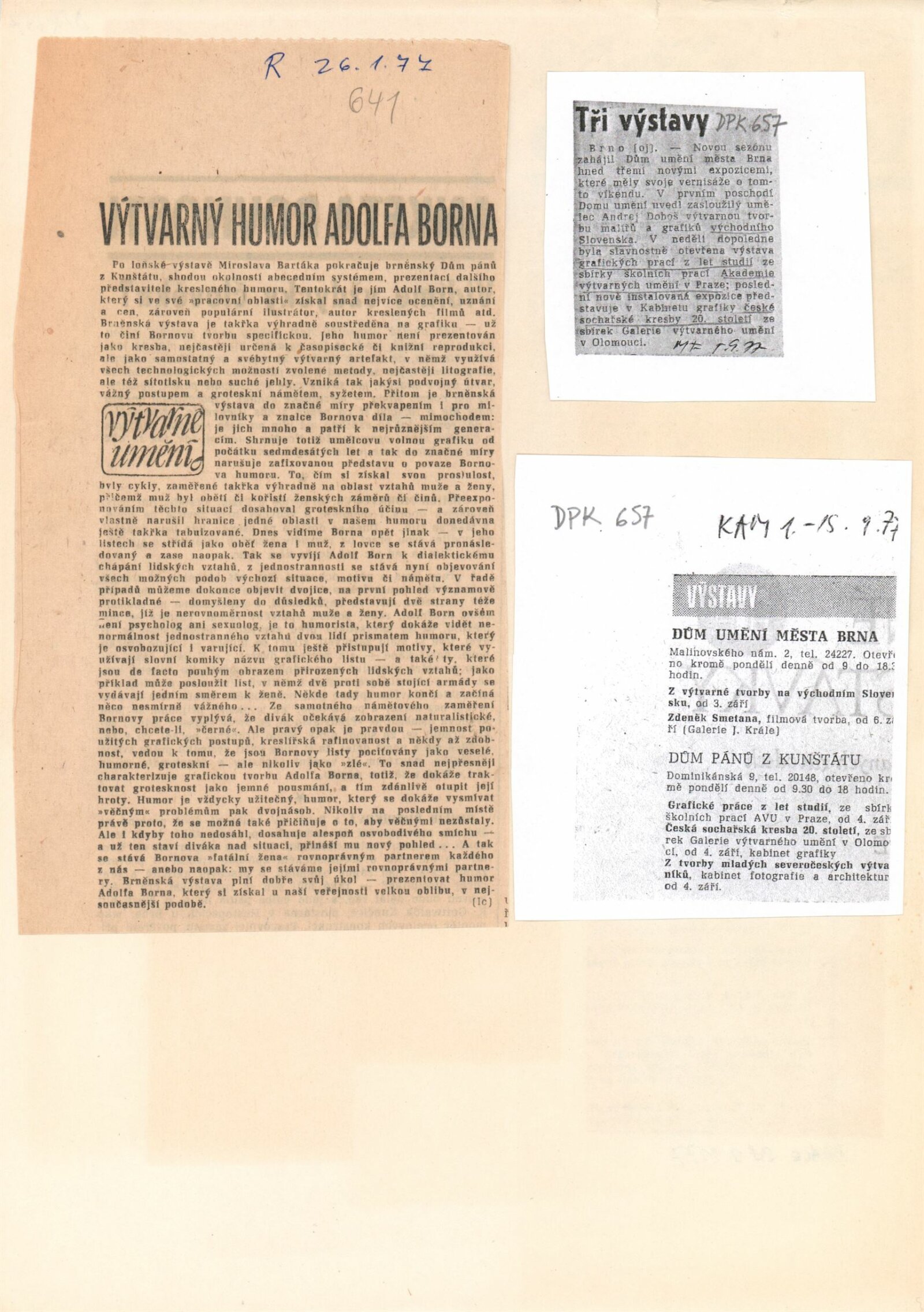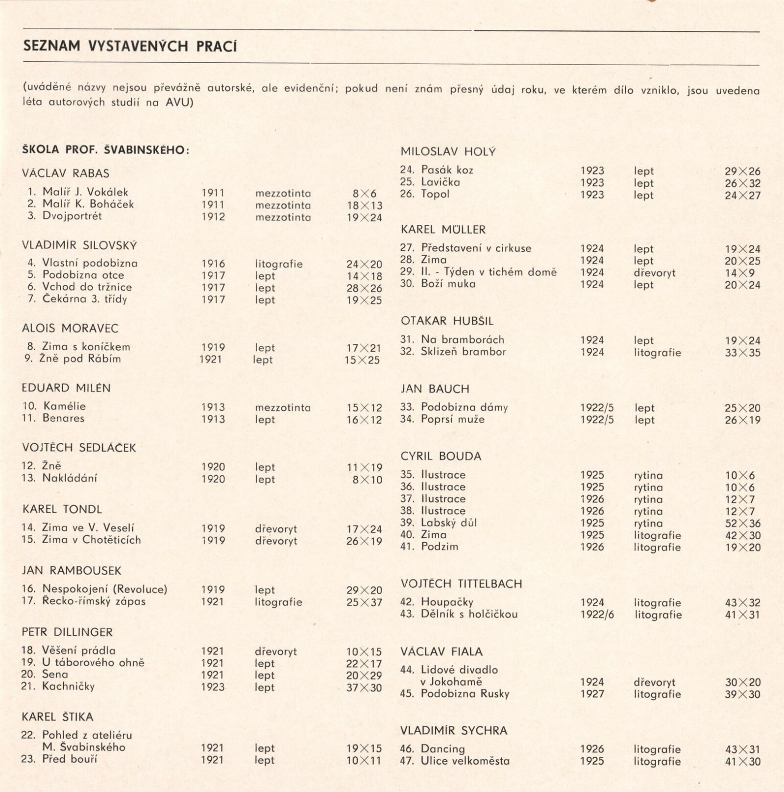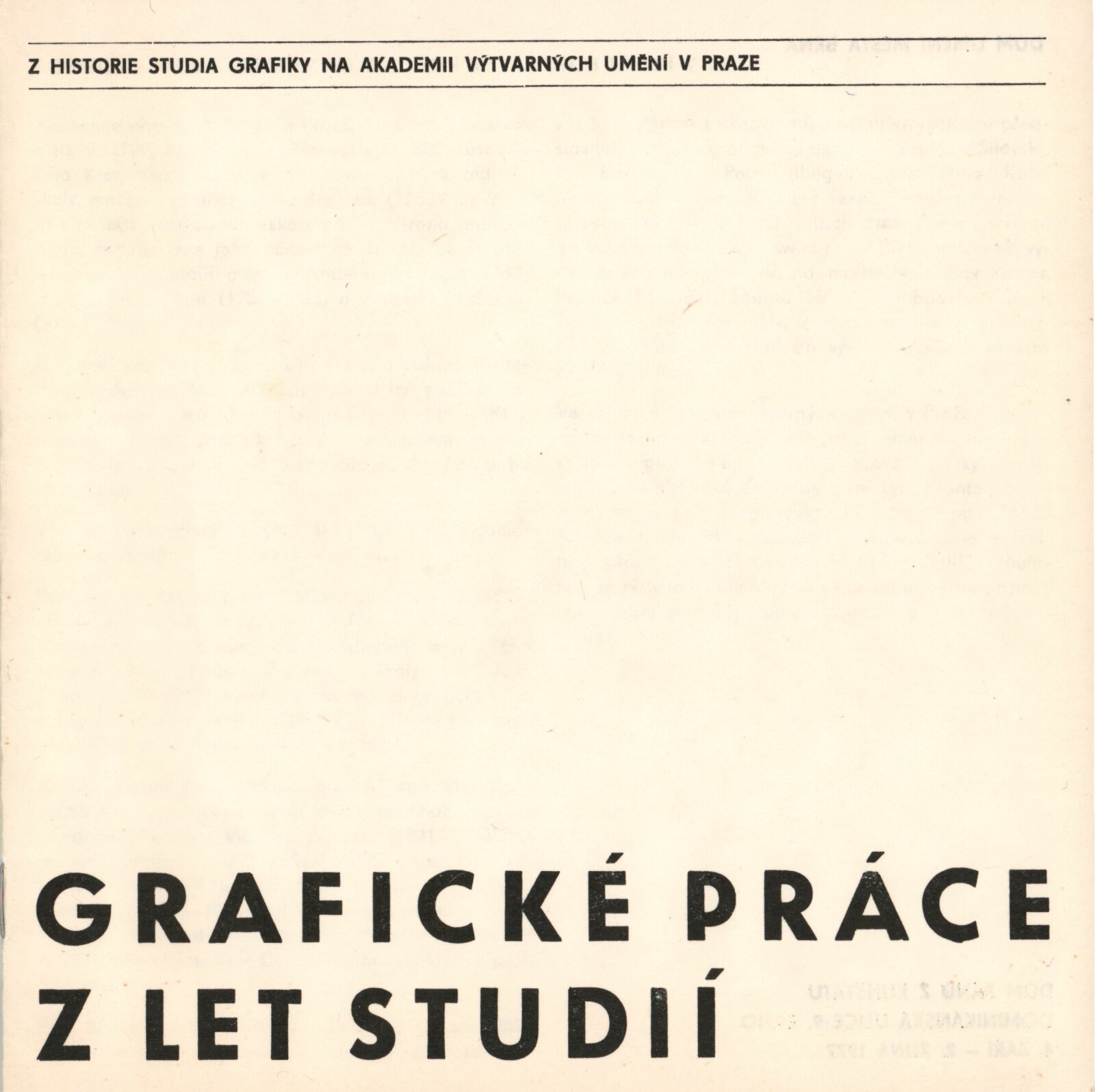 Grafické práce z let studií. Z historie studia grafiky na Akademii výtvarných umění v Praze: Dům umění / Dům pánů z Kunštátu, 4. 9. – 2. 10. 1977 / Text: Lubomír Němec. – Brno: DUmB, 1977. – 16 s., obr., DPK 657. – MG