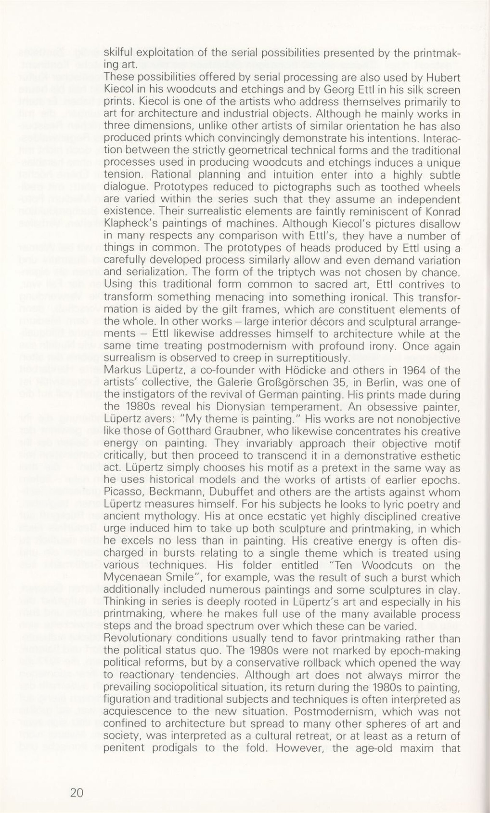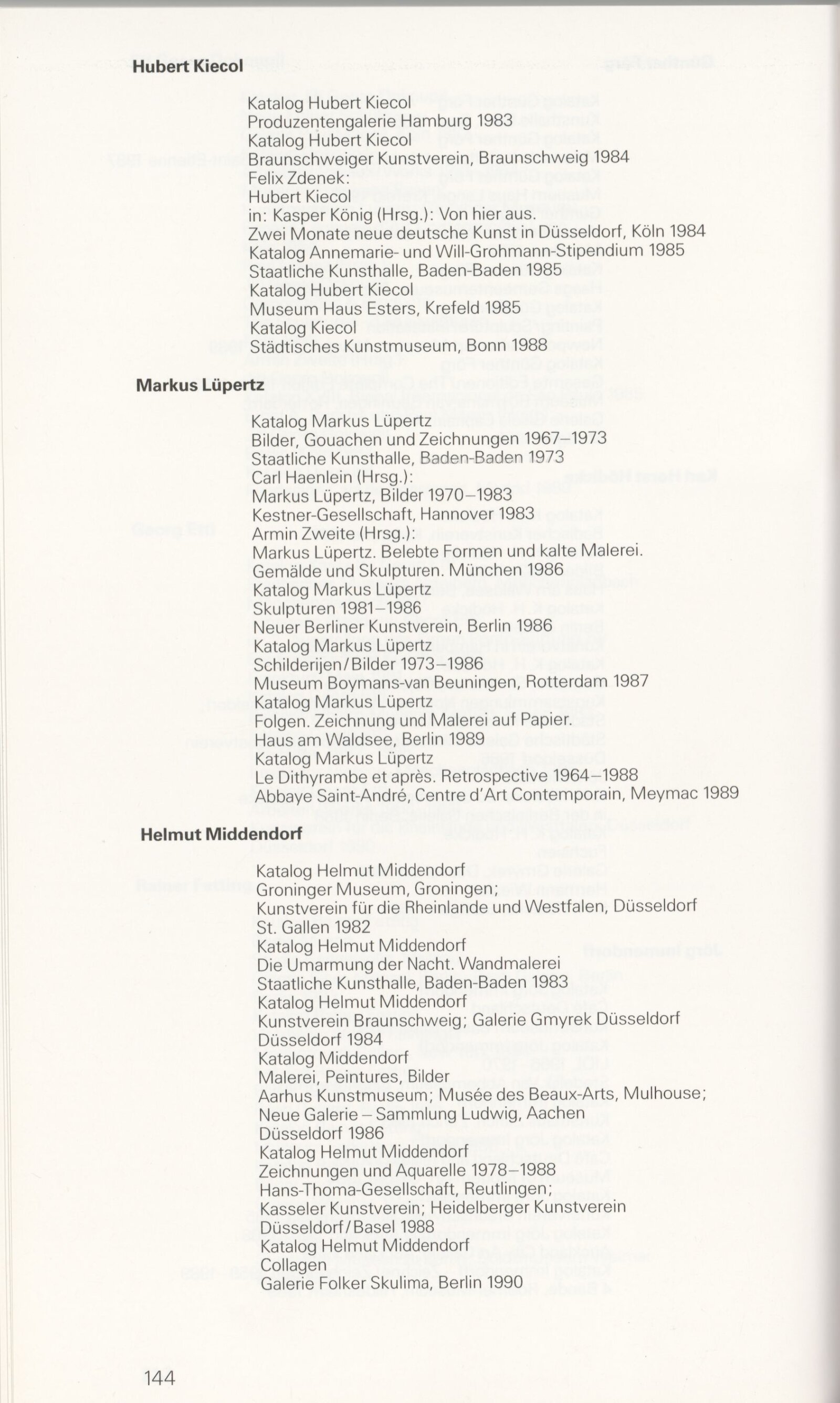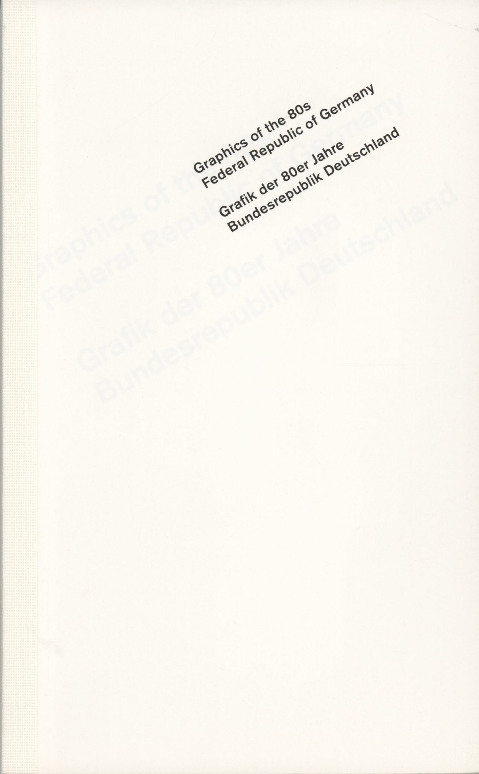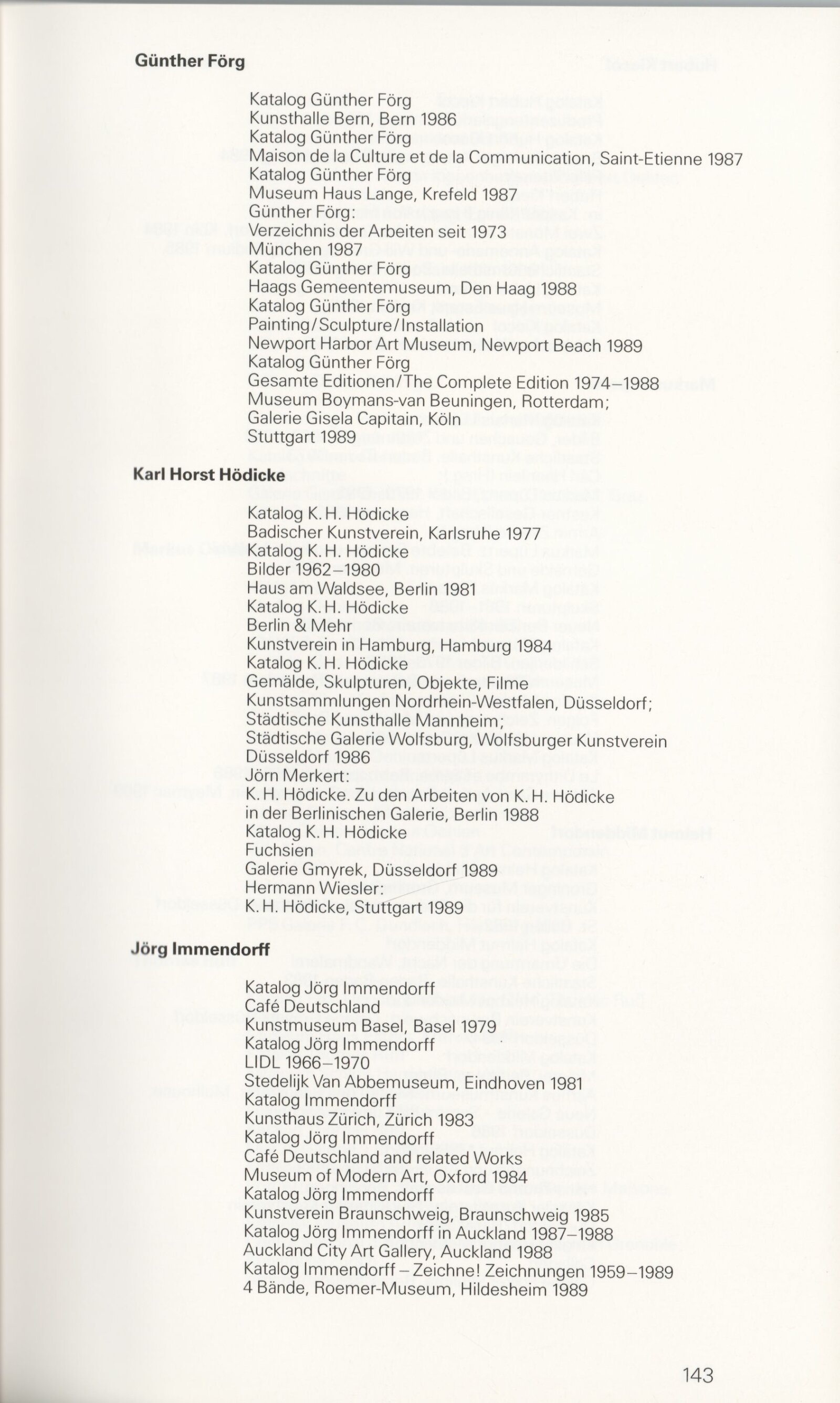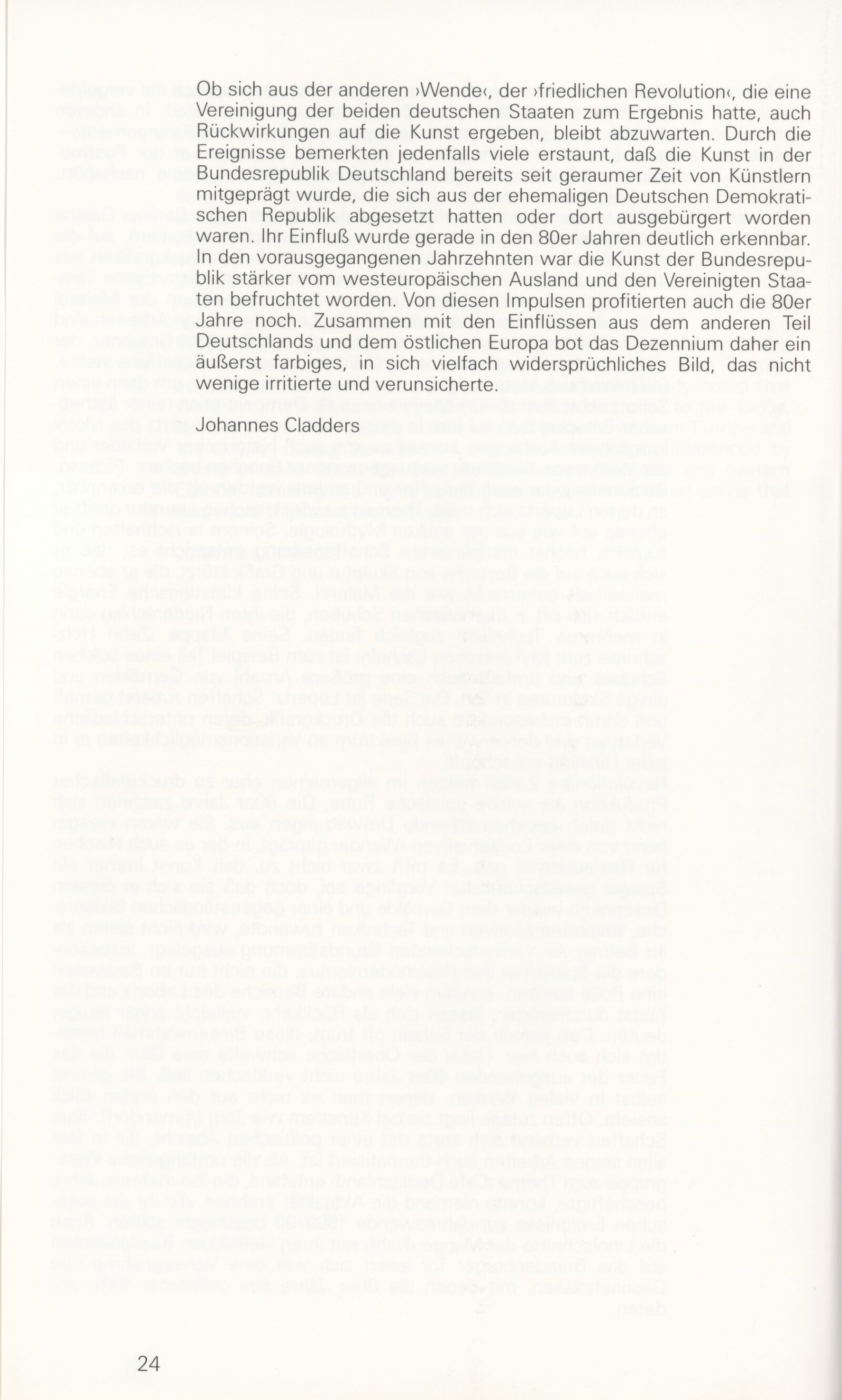 Grafika 80. let Spolkové republiky Německa: Dům umění města Brna, Galerie Jaroslava Krále, hala, 11. 6. – 18. 8. 1991 / Převzatý katalog. Graphics of the 80s Federal Republic of Germany / Text: Johannes Cladders. – Stuttgart: Institut für Auslandsbeziehungen. – 146 s., obr., životní data vystavujících, výstavy, bibliografie, název a text též německy, DU 903