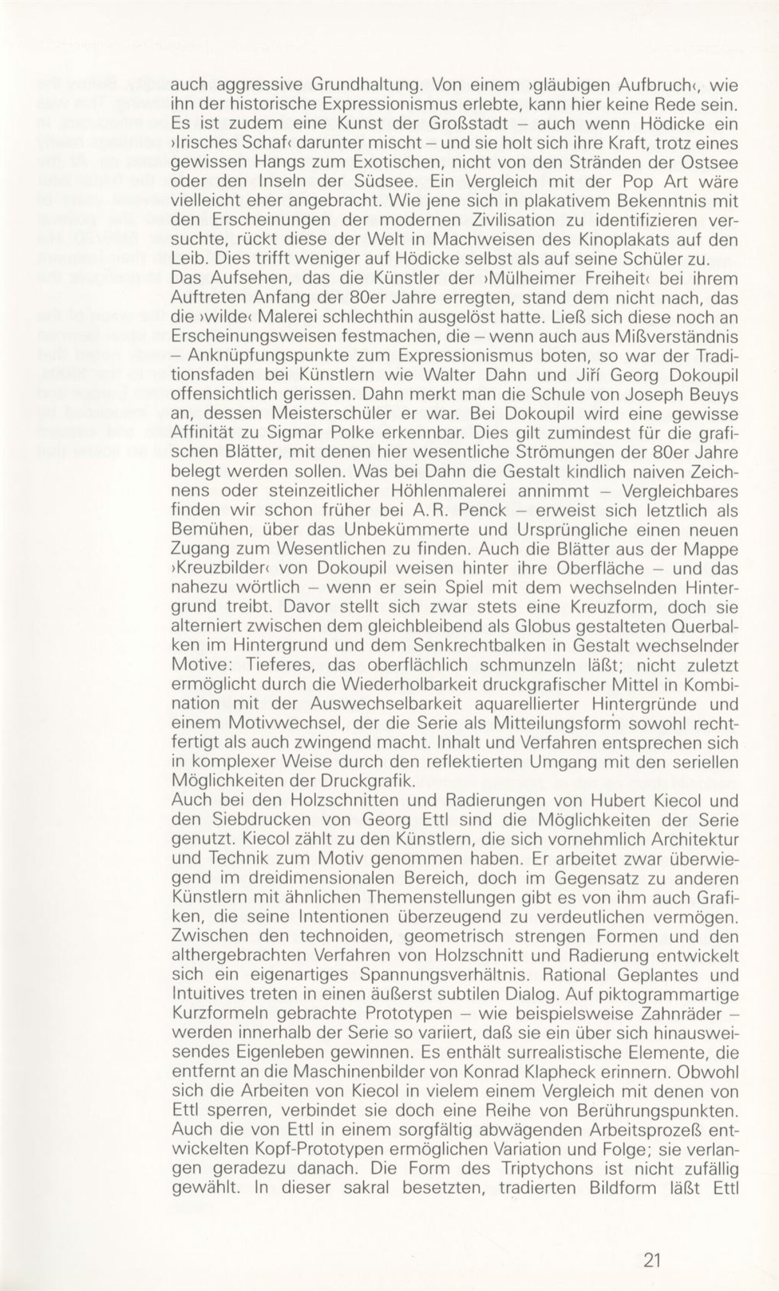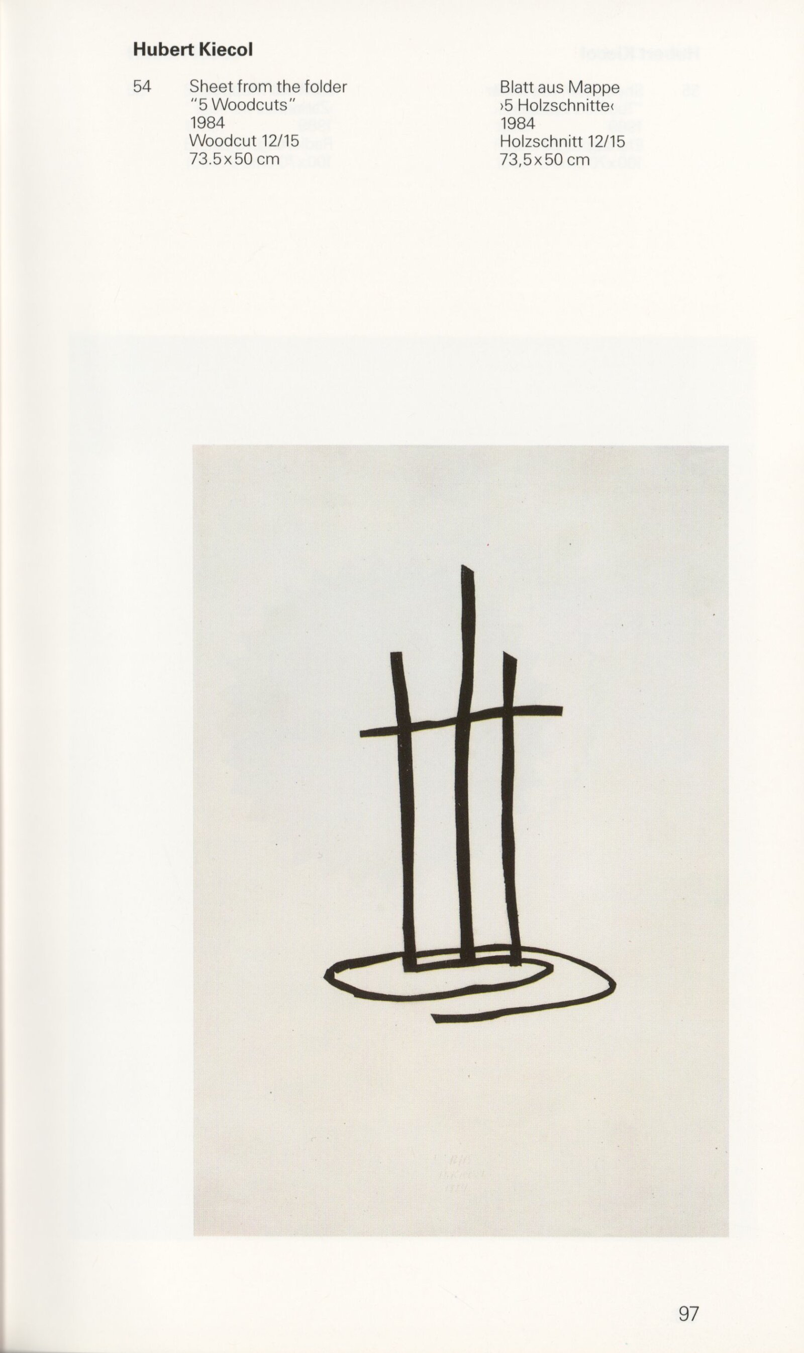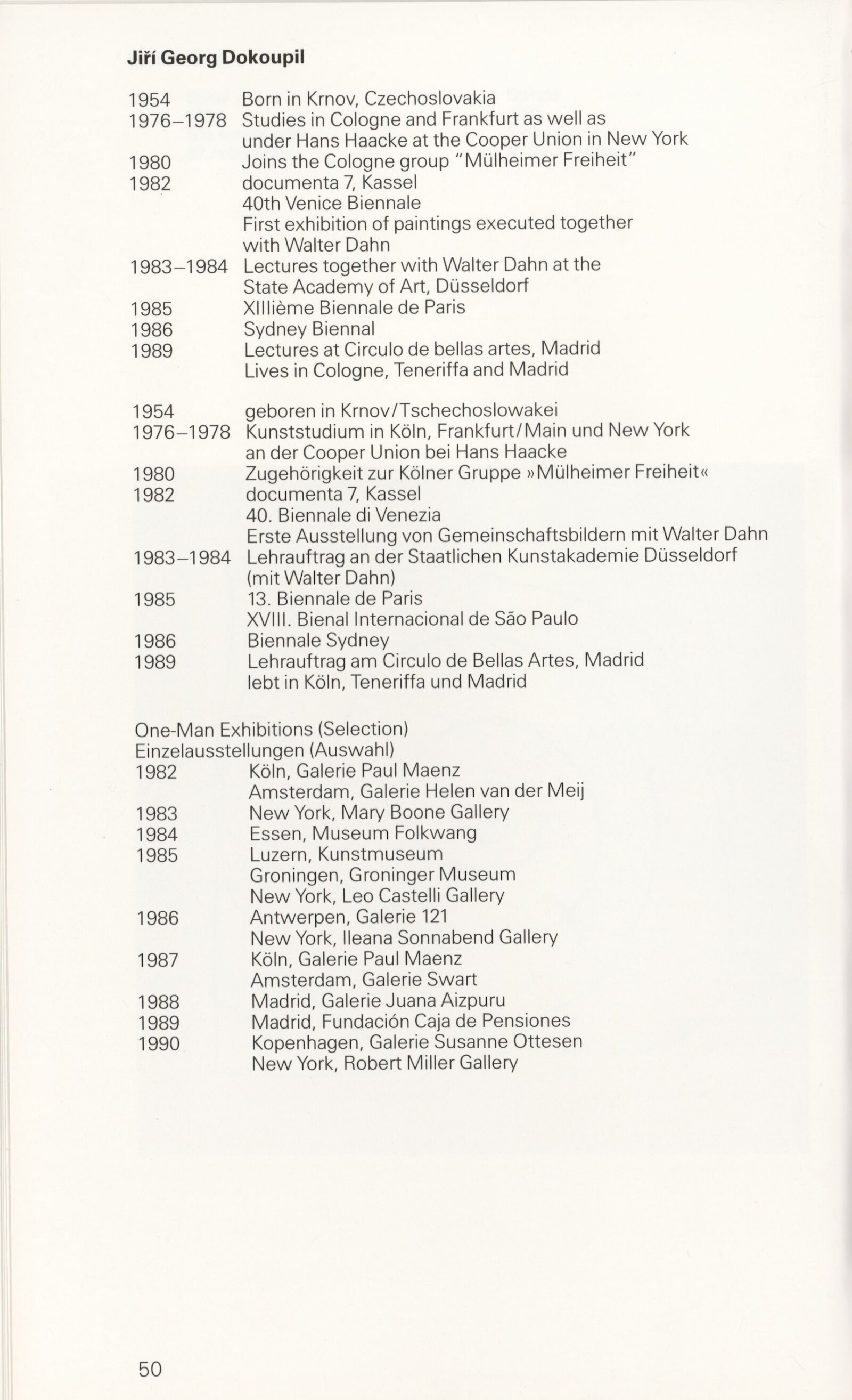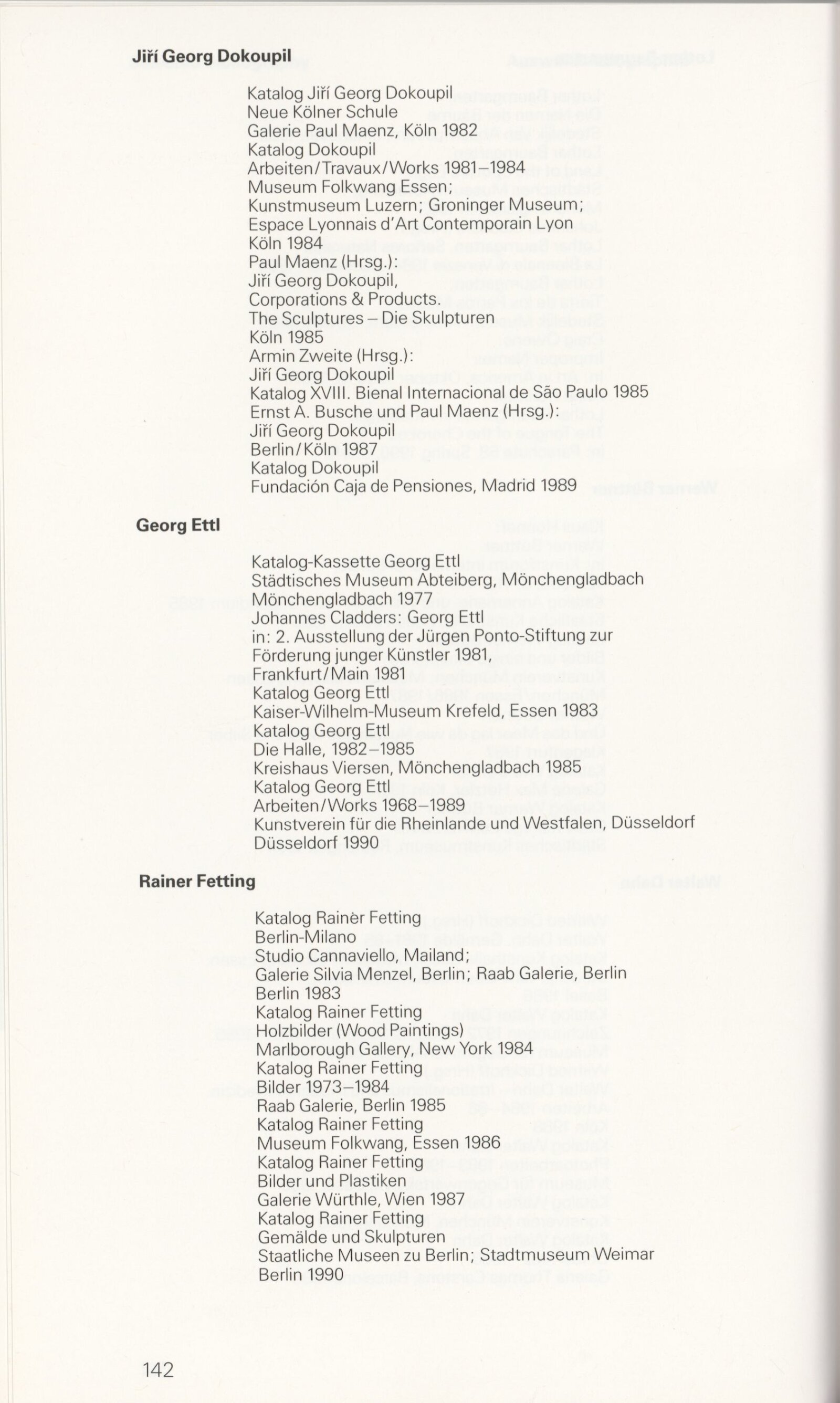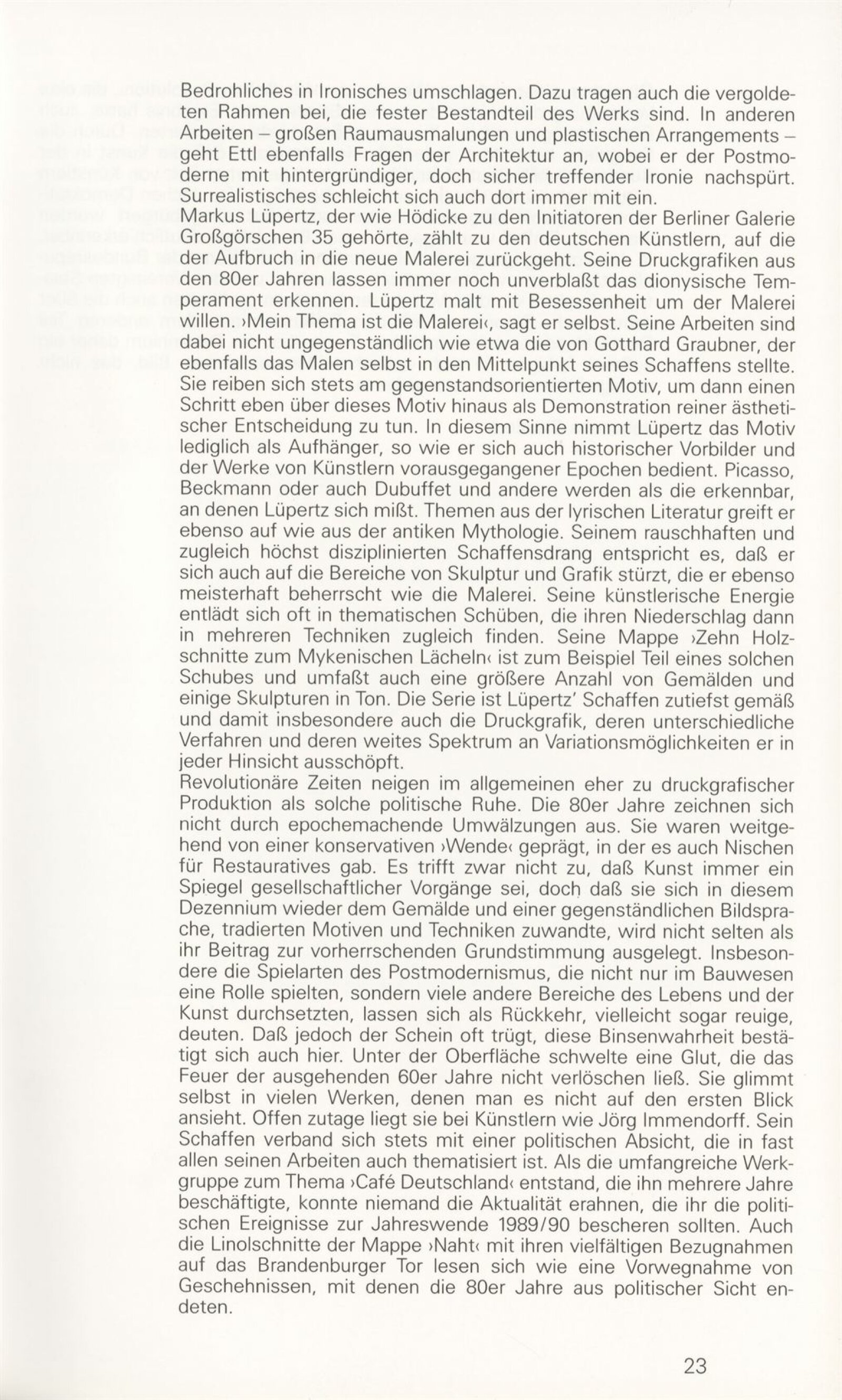 Grafika 80. let Spolkové republiky Německa: Dům umění města Brna, Galerie Jaroslava Krále, hala, 11. 6. – 18. 8. 1991 / Převzatý katalog. Graphics of the 80s Federal Republic of Germany / Text: Johannes Cladders. – Stuttgart: Institut für Auslandsbeziehungen. – 146 s., obr., životní data vystavujících, výstavy, bibliografie, název a text též německy, DU 903