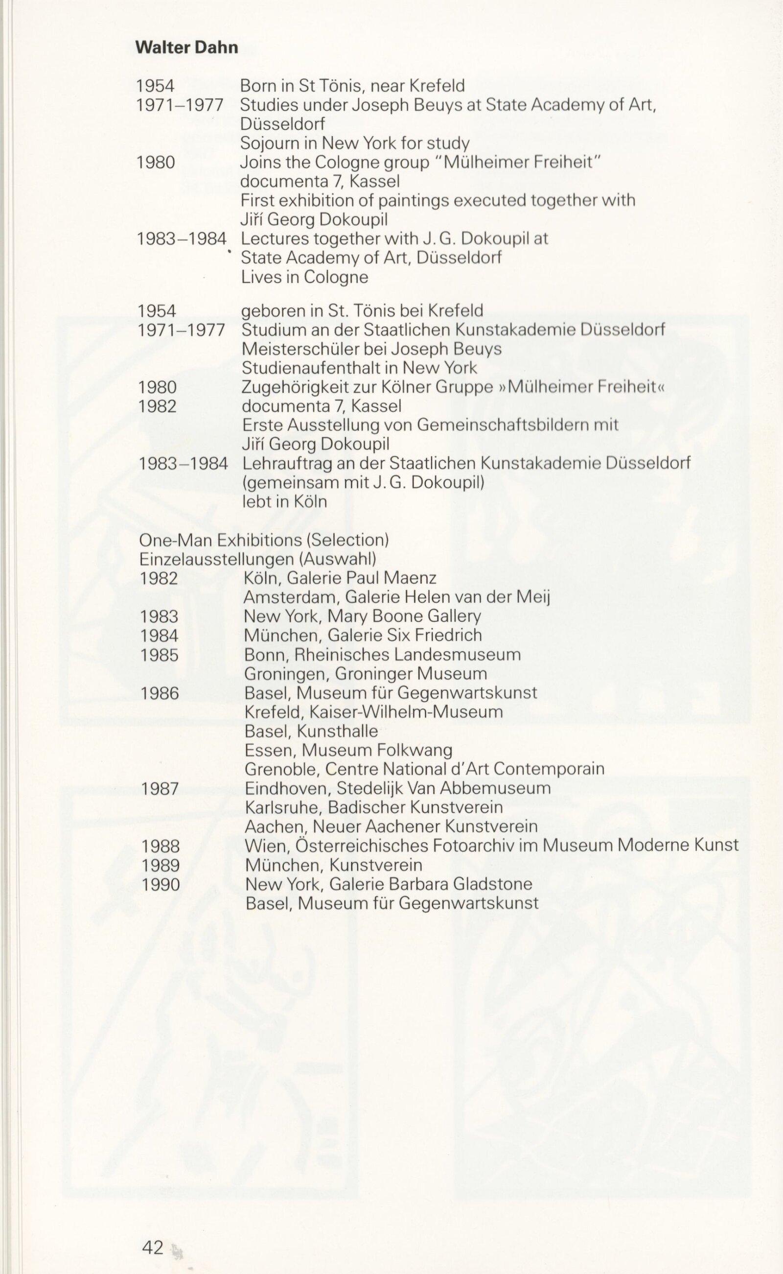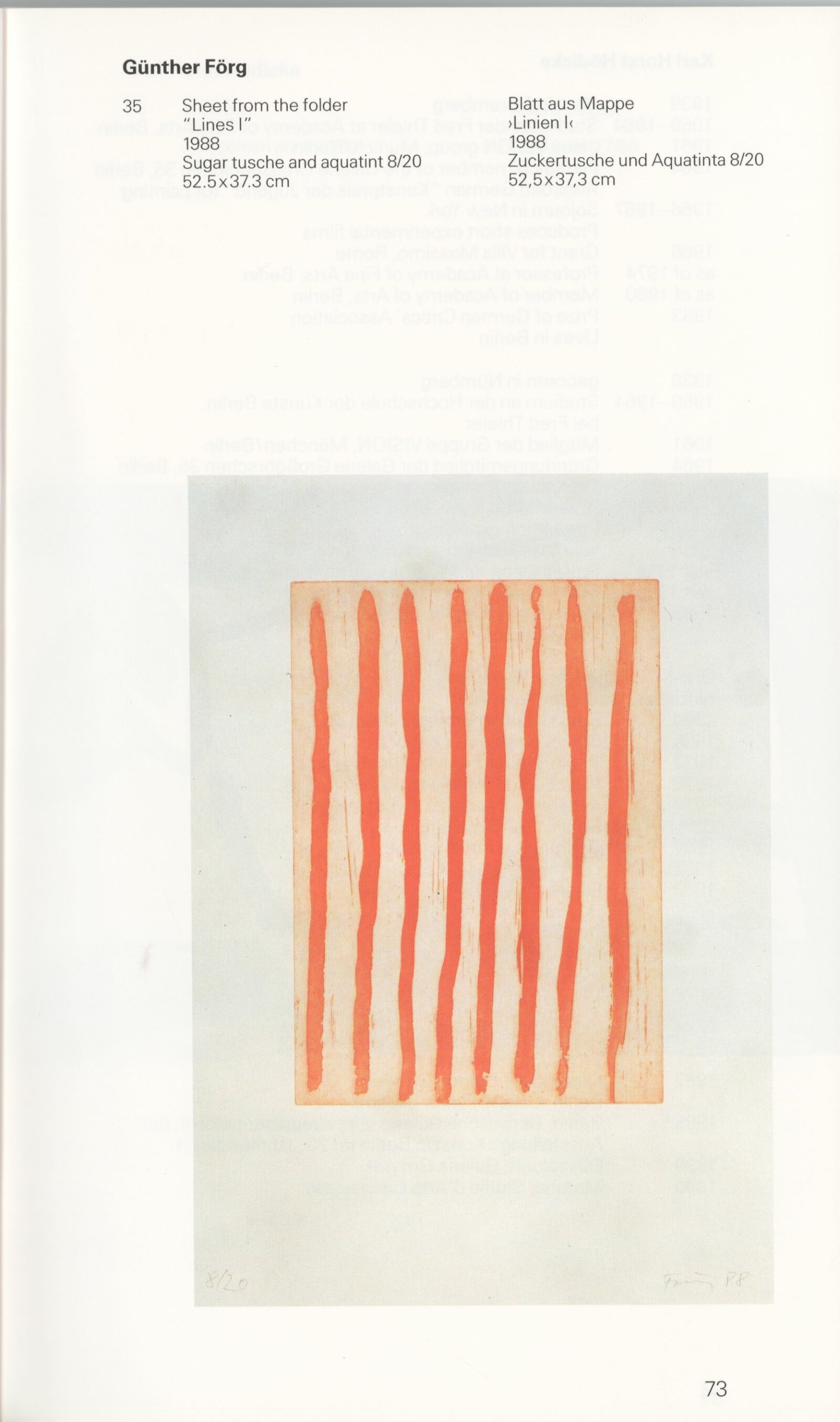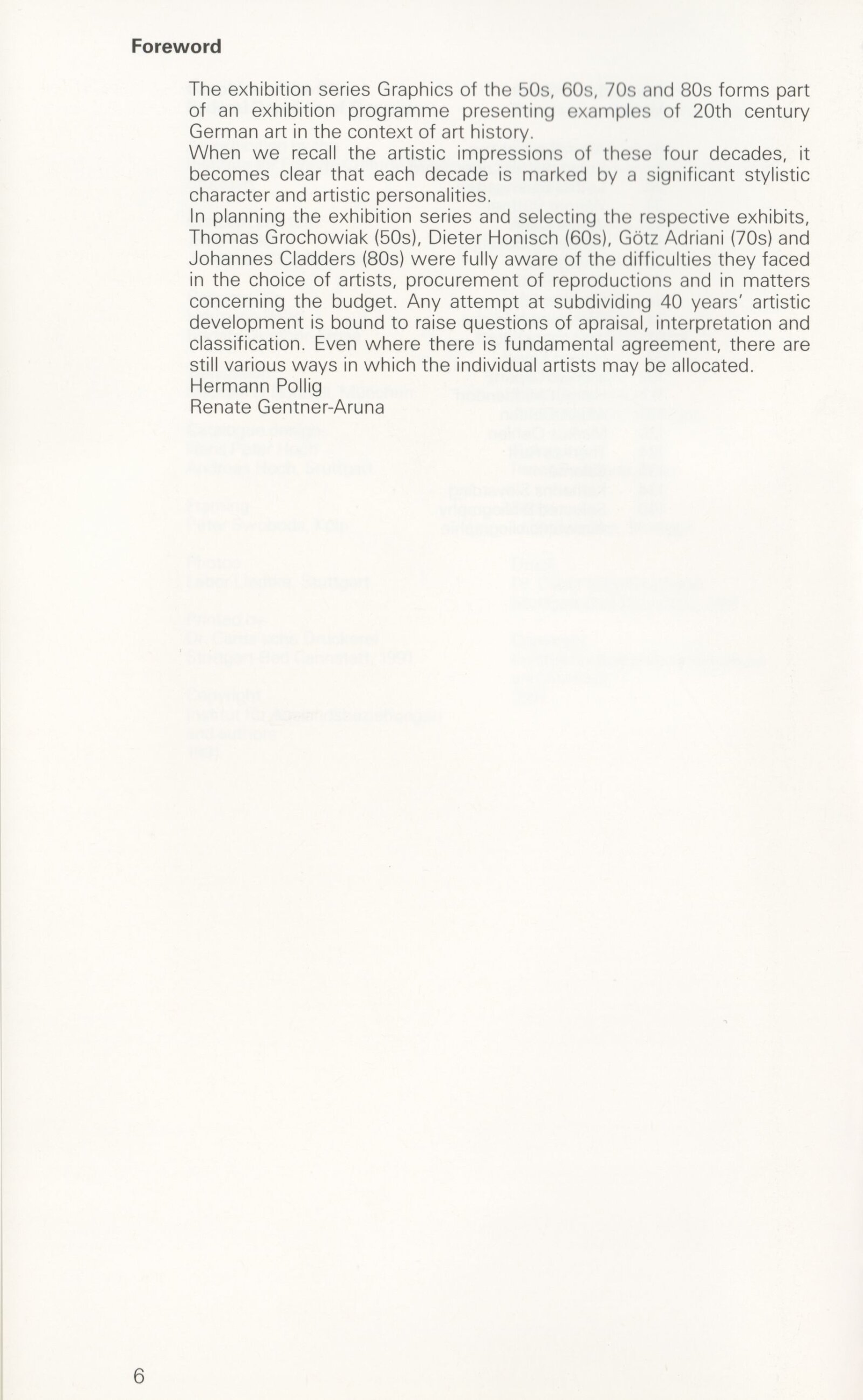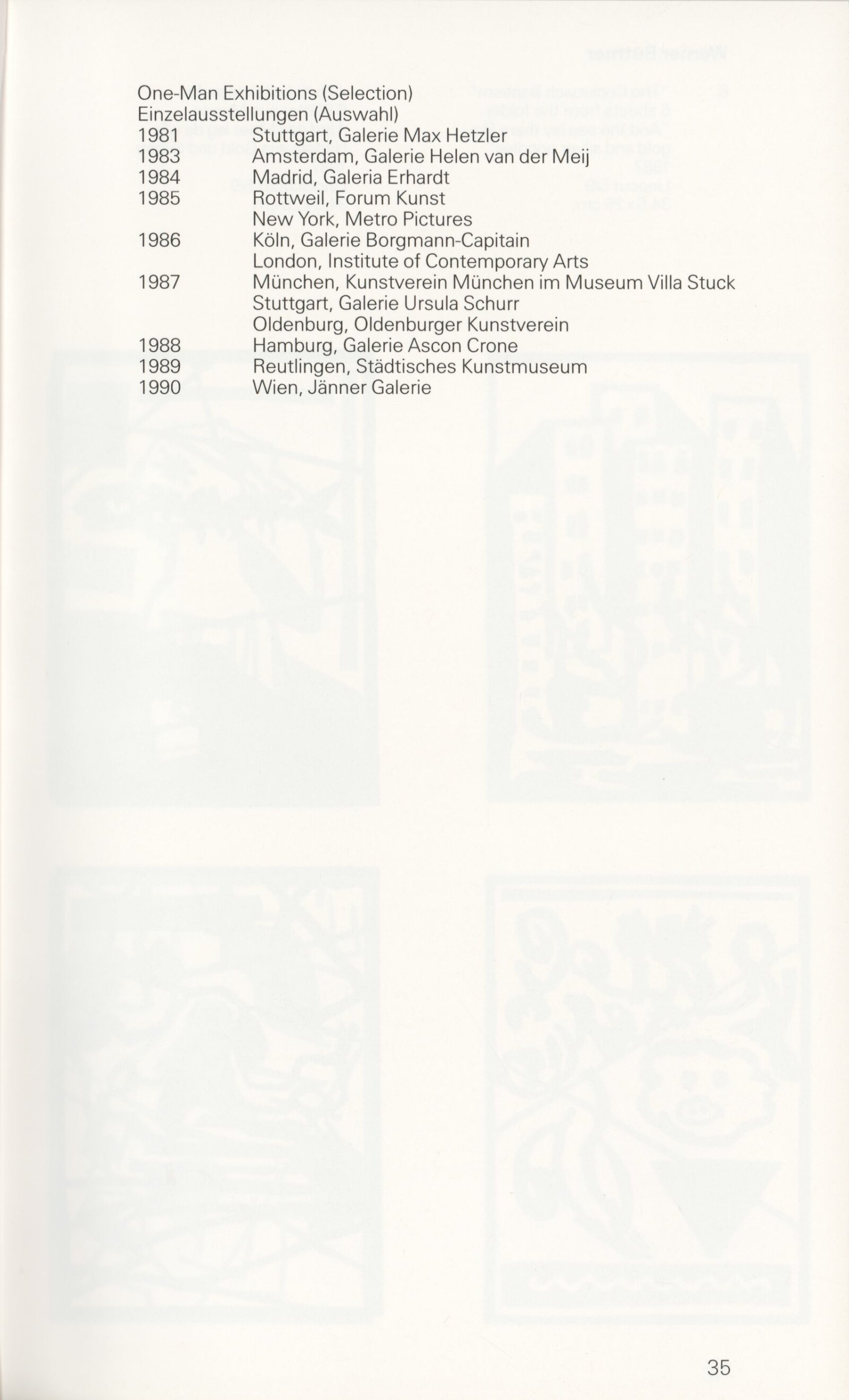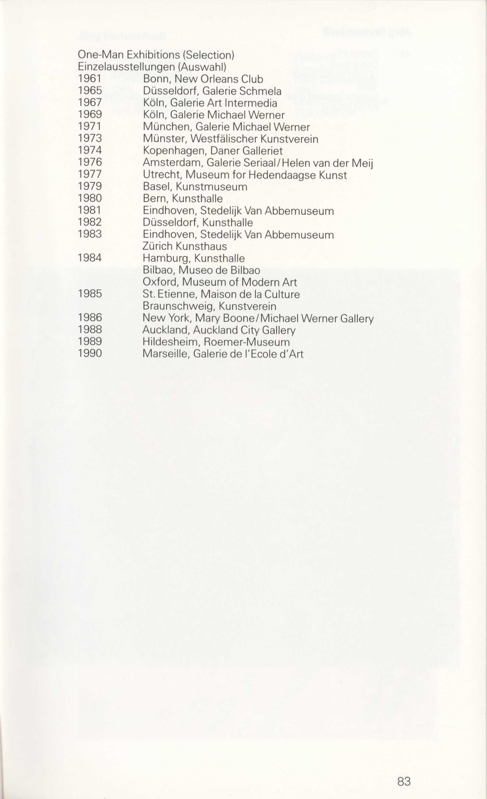 Grafika 80. let Spolkové republiky Německa: Dům umění města Brna, Galerie Jaroslava Krále, hala, 11. 6. – 18. 8. 1991 / Převzatý katalog. Graphics of the 80s Federal Republic of Germany / Text: Johannes Cladders. – Stuttgart: Institut für Auslandsbeziehungen. – 146 s., obr., životní data vystavujících, výstavy, bibliografie, název a text též německy, DU 903