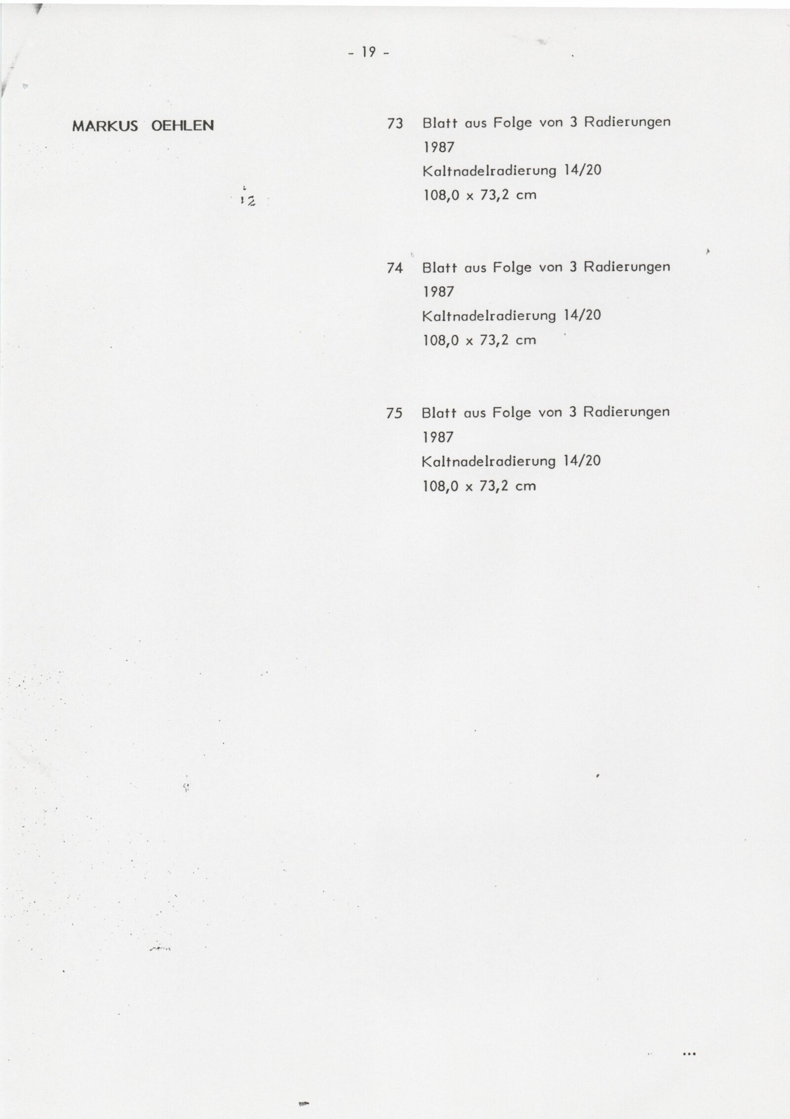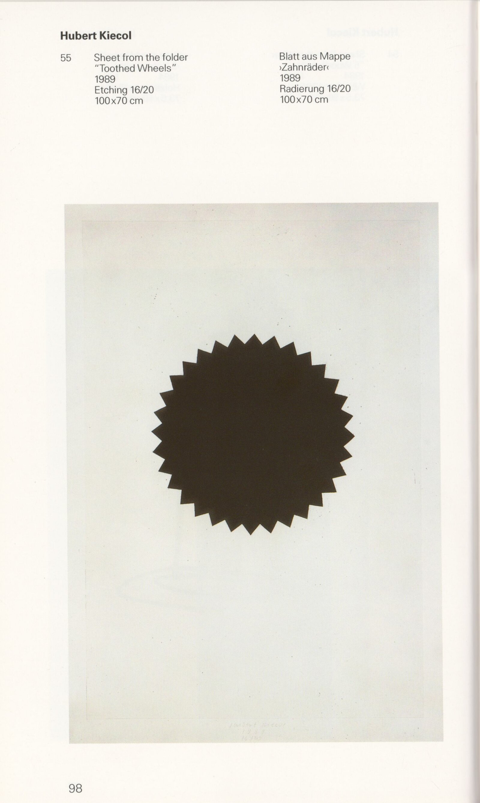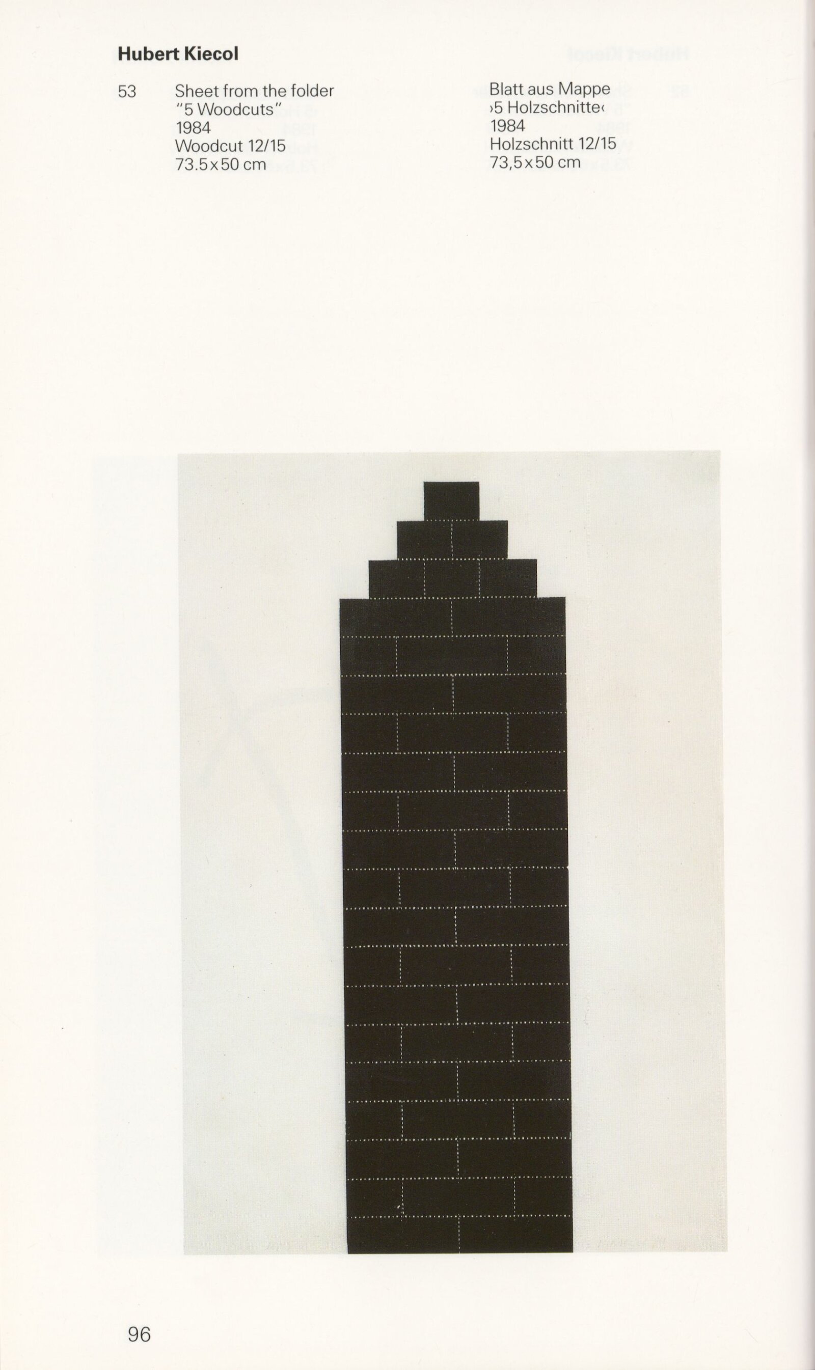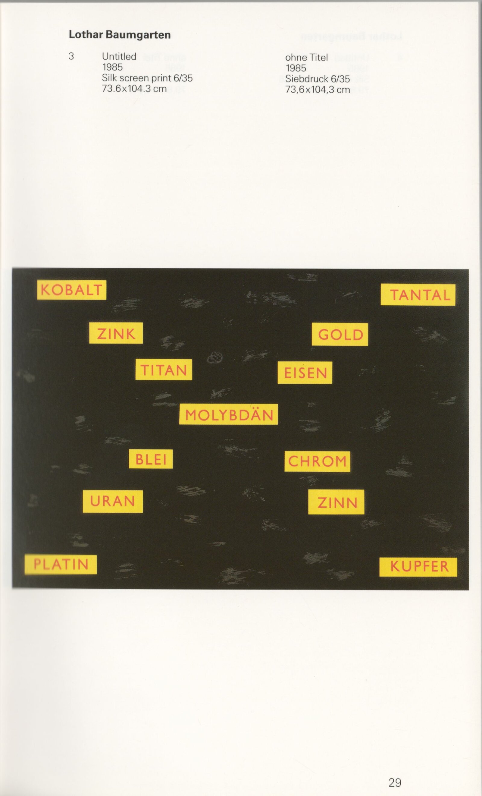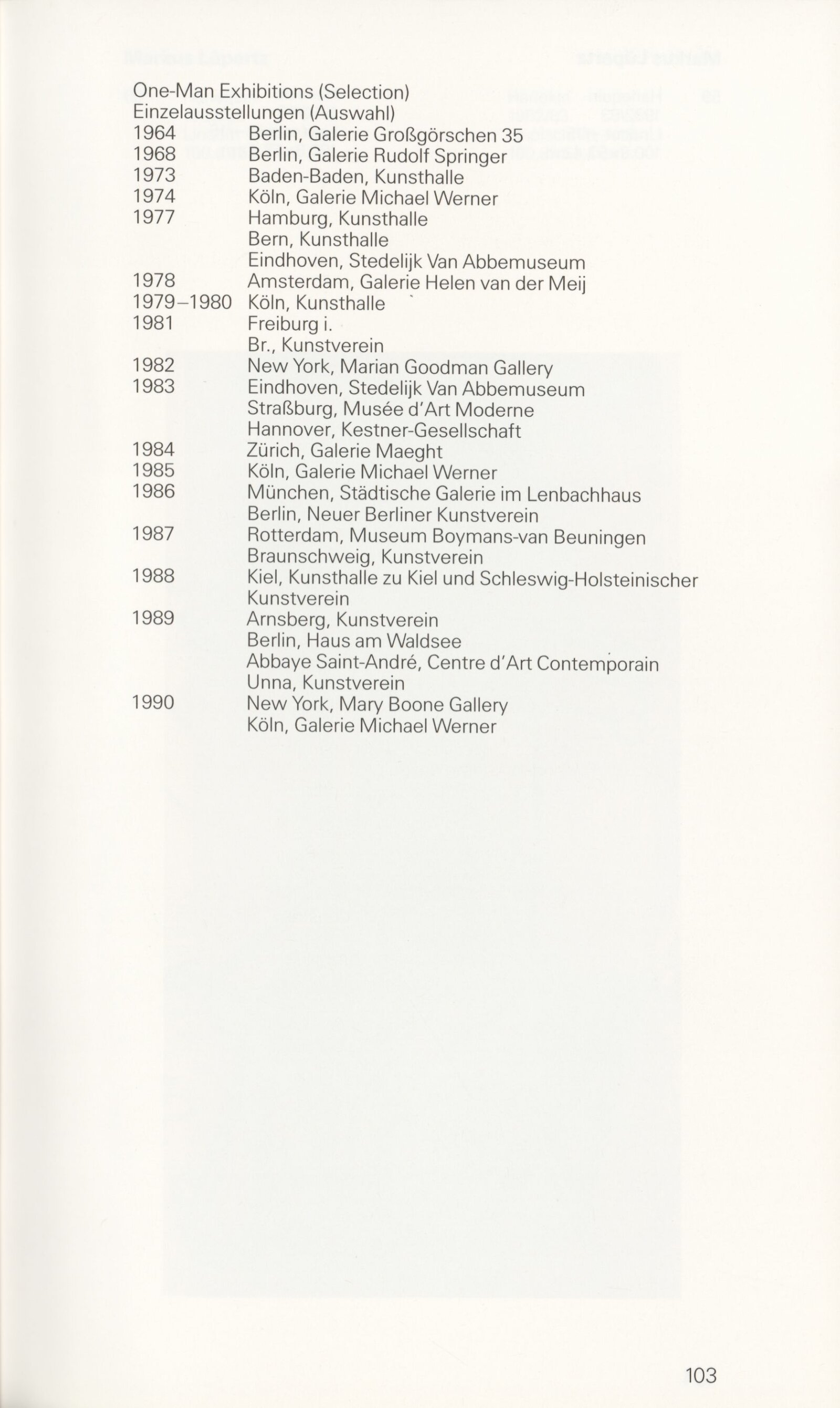 Grafika 80. let Spolkové republiky Německa: Dům umění města Brna, Galerie Jaroslava Krále, hala, 11. 6. – 18. 8. 1991 / Převzatý katalog. Graphics of the 80s Federal Republic of Germany / Text: Johannes Cladders. – Stuttgart: Institut für Auslandsbeziehungen. – 146 s., obr., životní data vystavujících, výstavy, bibliografie, název a text též německy, DU 903