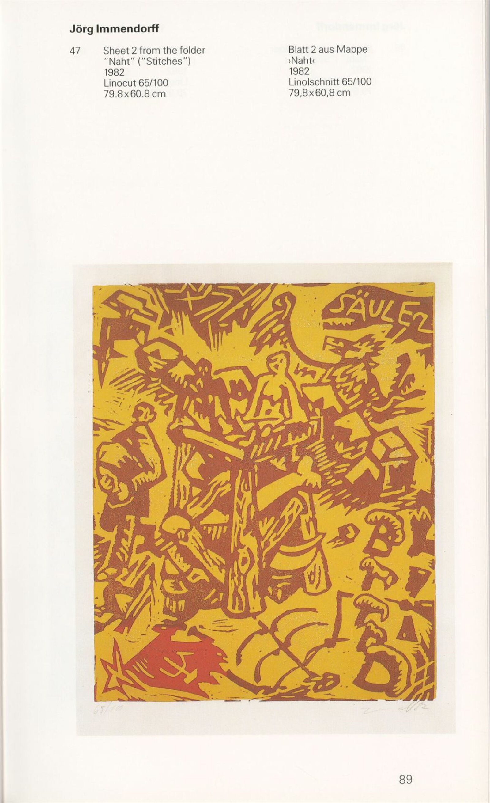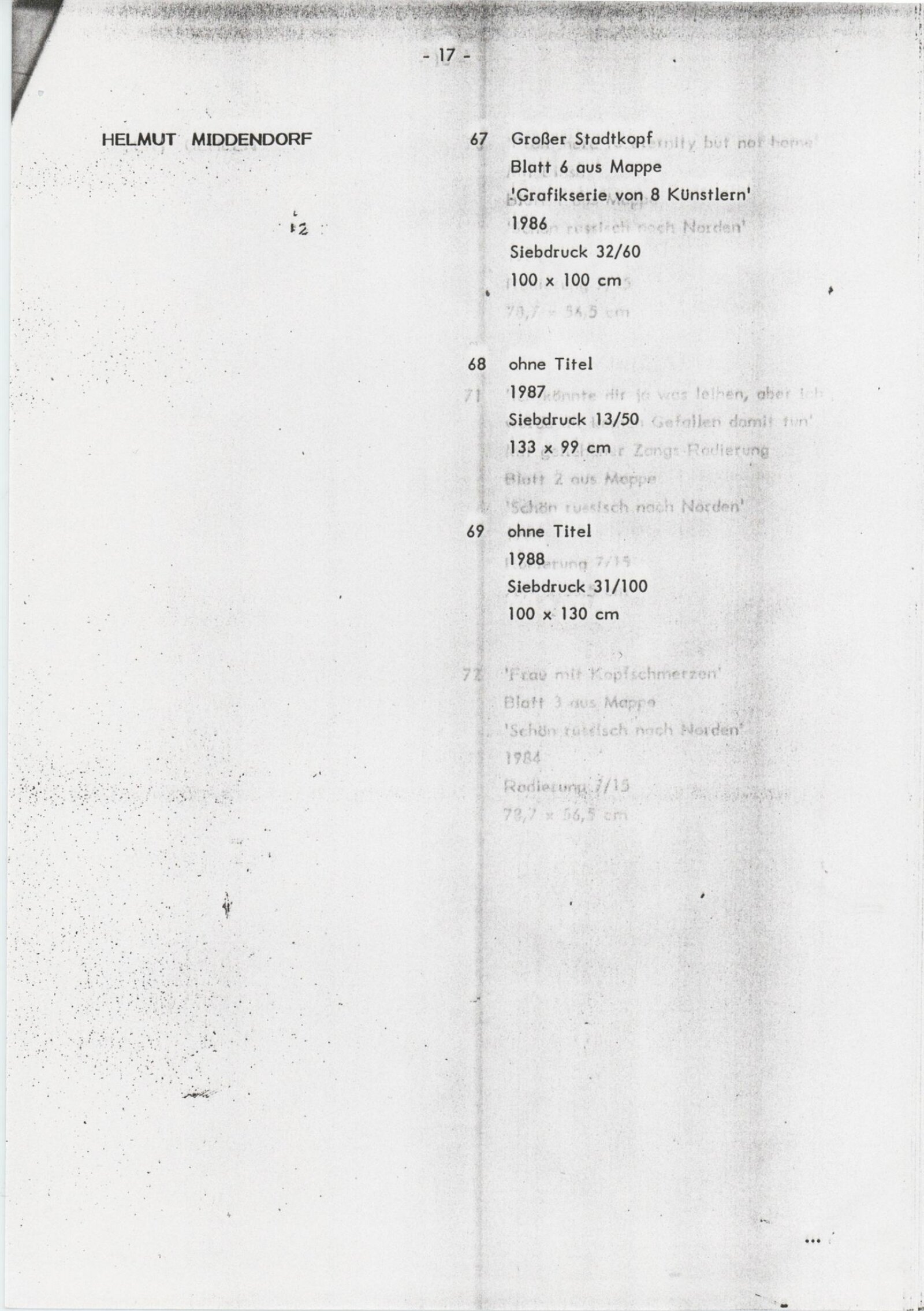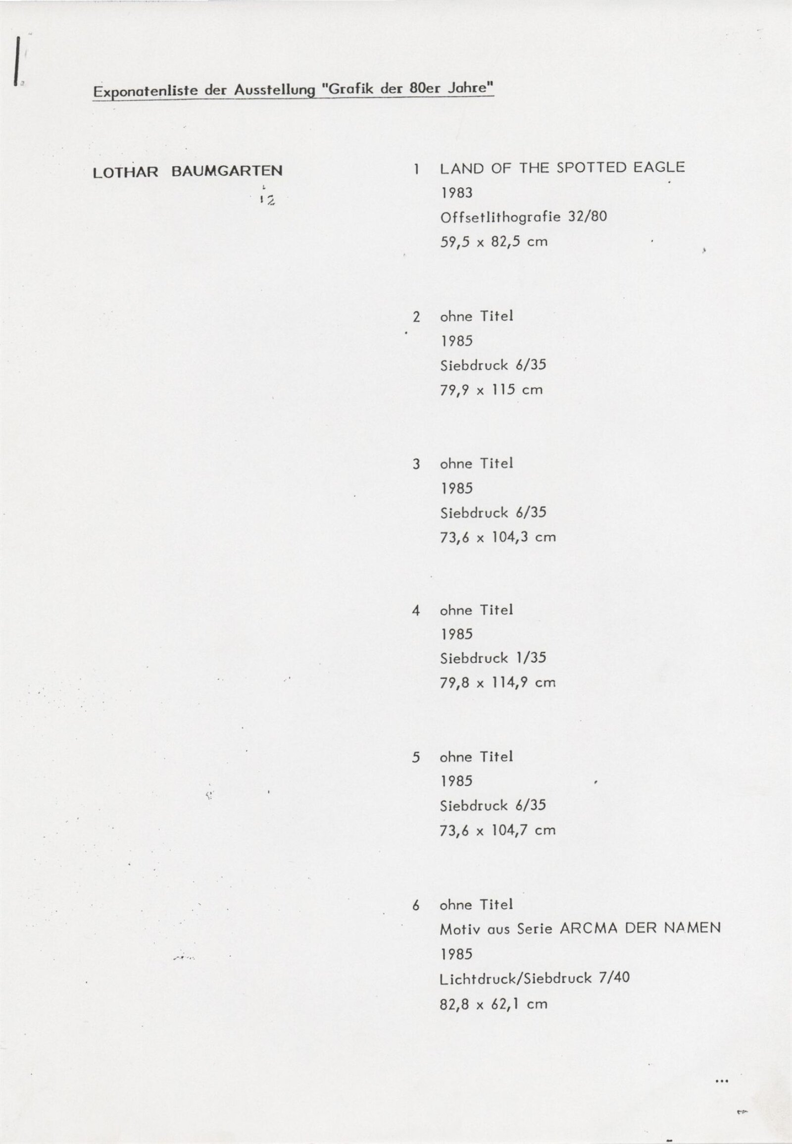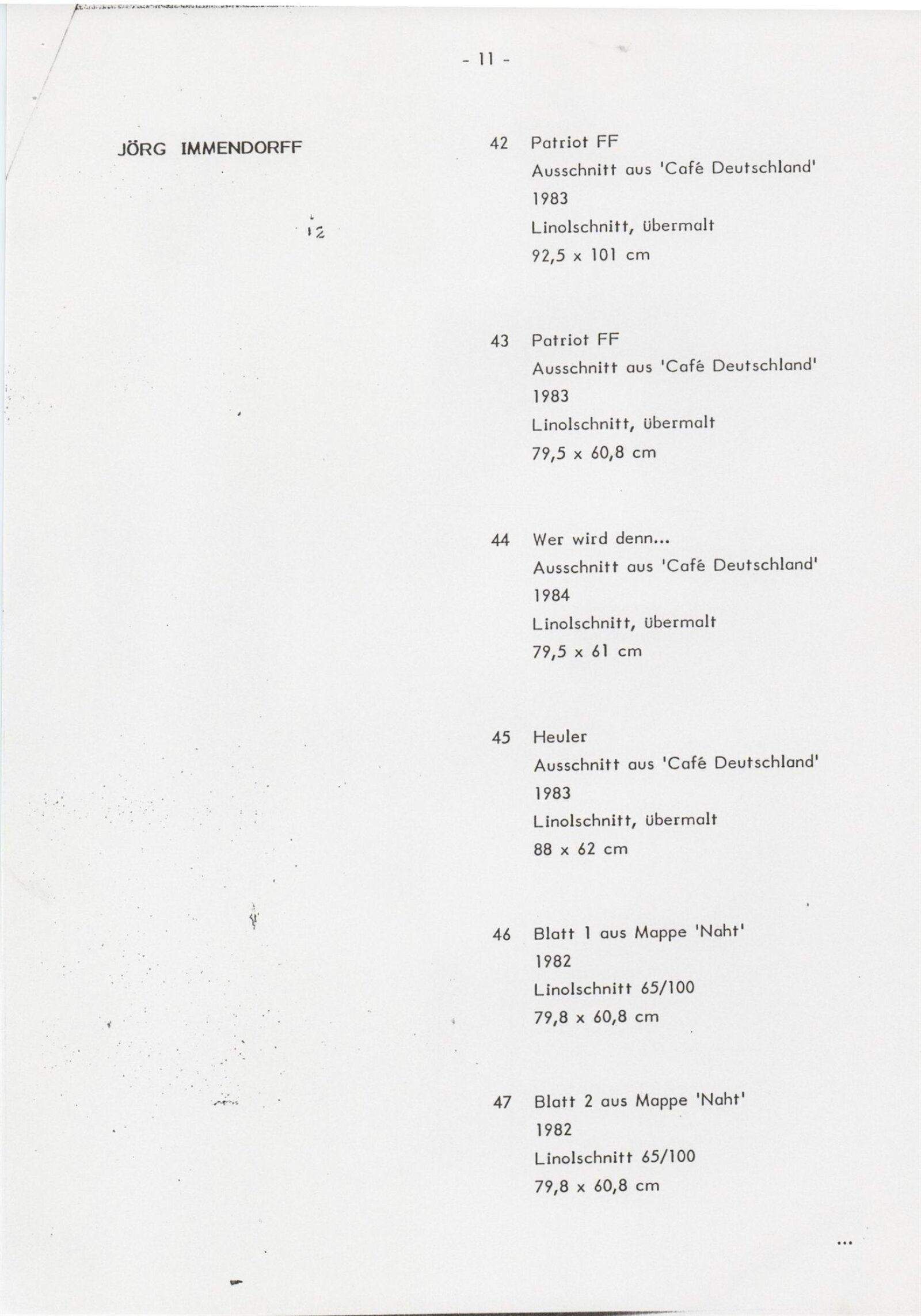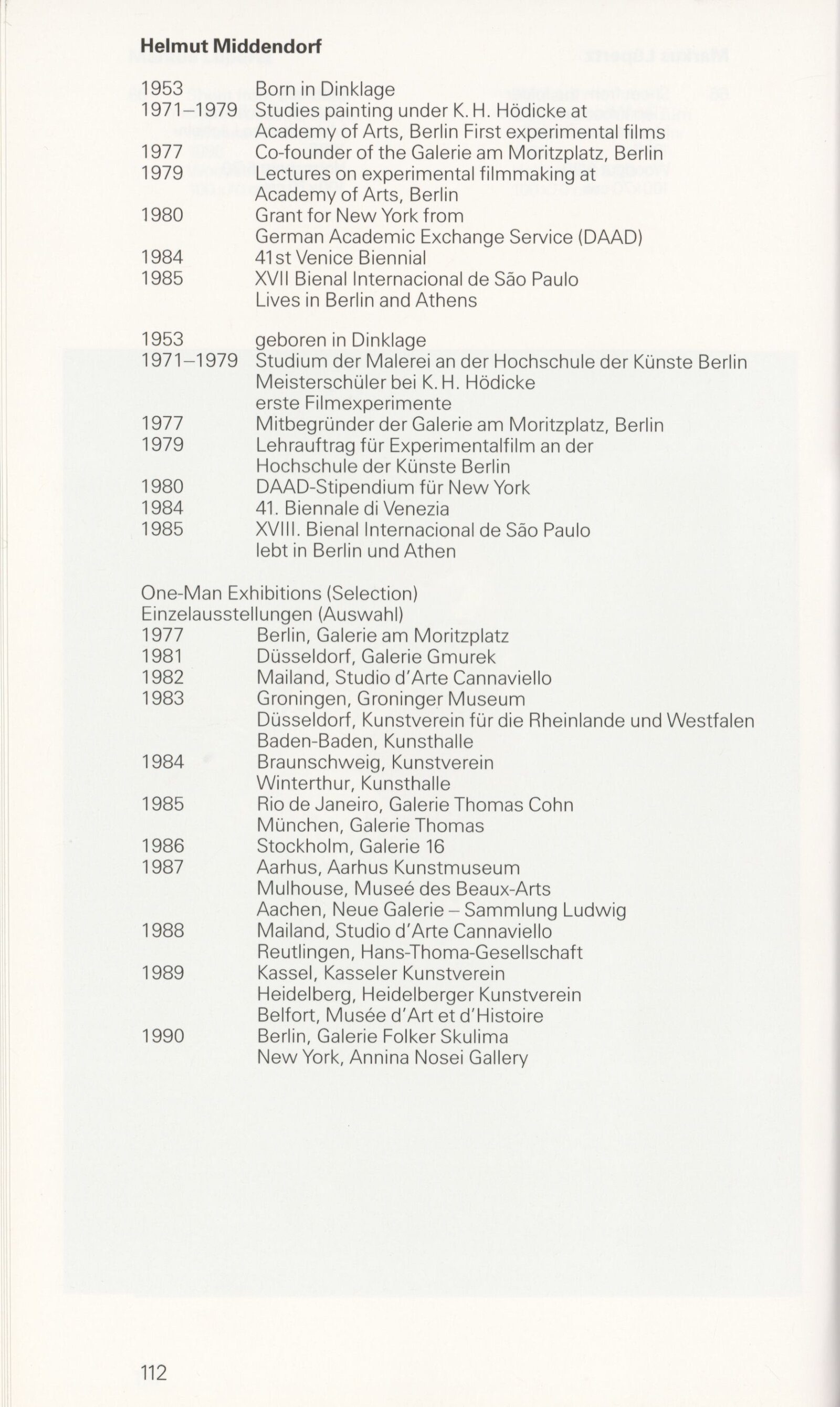 Grafika 80. let Spolkové republiky Německa: Dům umění města Brna, Galerie Jaroslava Krále, hala, 11. 6. – 18. 8. 1991 / Převzatý katalog. Graphics of the 80s Federal Republic of Germany / Text: Johannes Cladders. – Stuttgart: Institut für Auslandsbeziehungen. – 146 s., obr., životní data vystavujících, výstavy, bibliografie, název a text též německy, DU 903