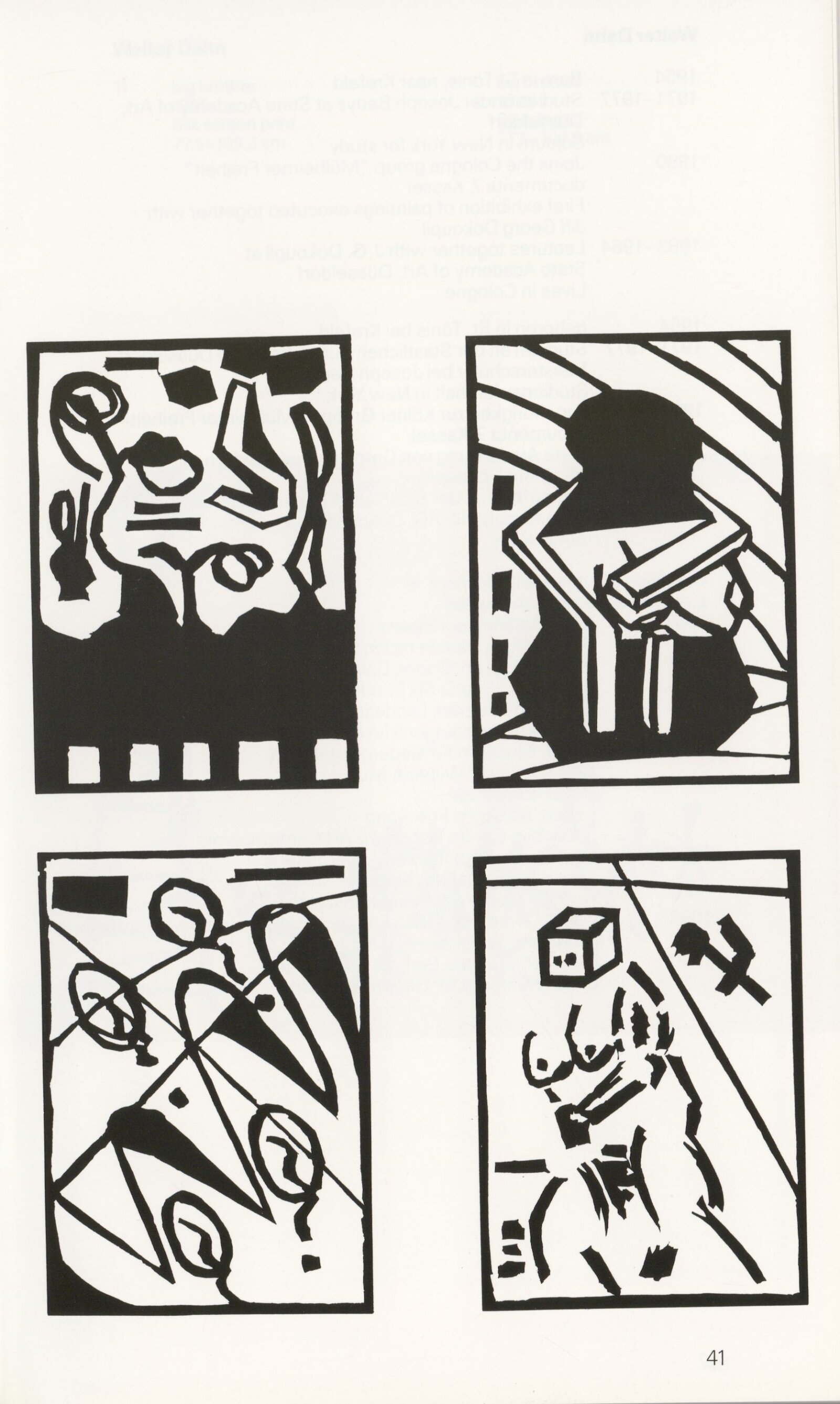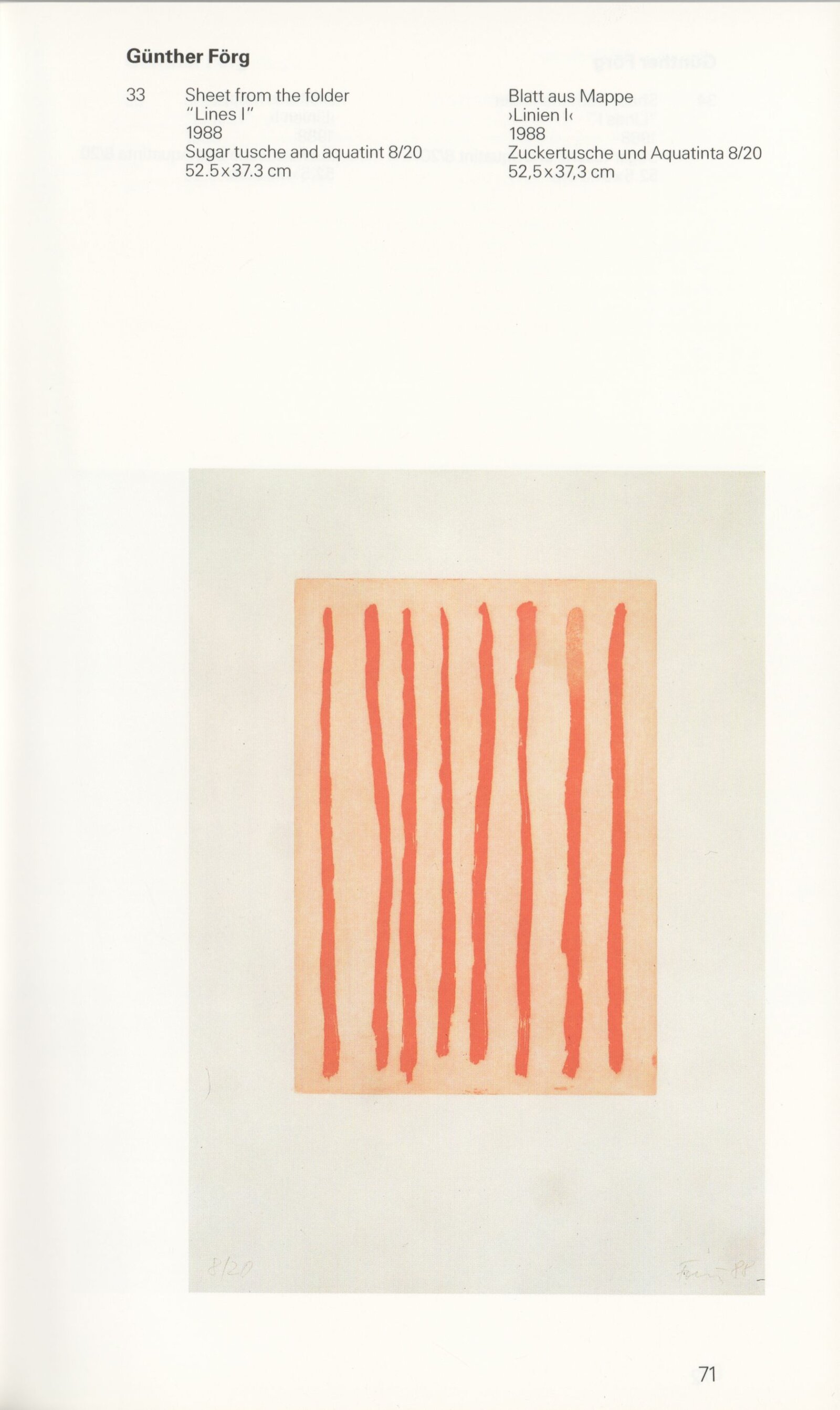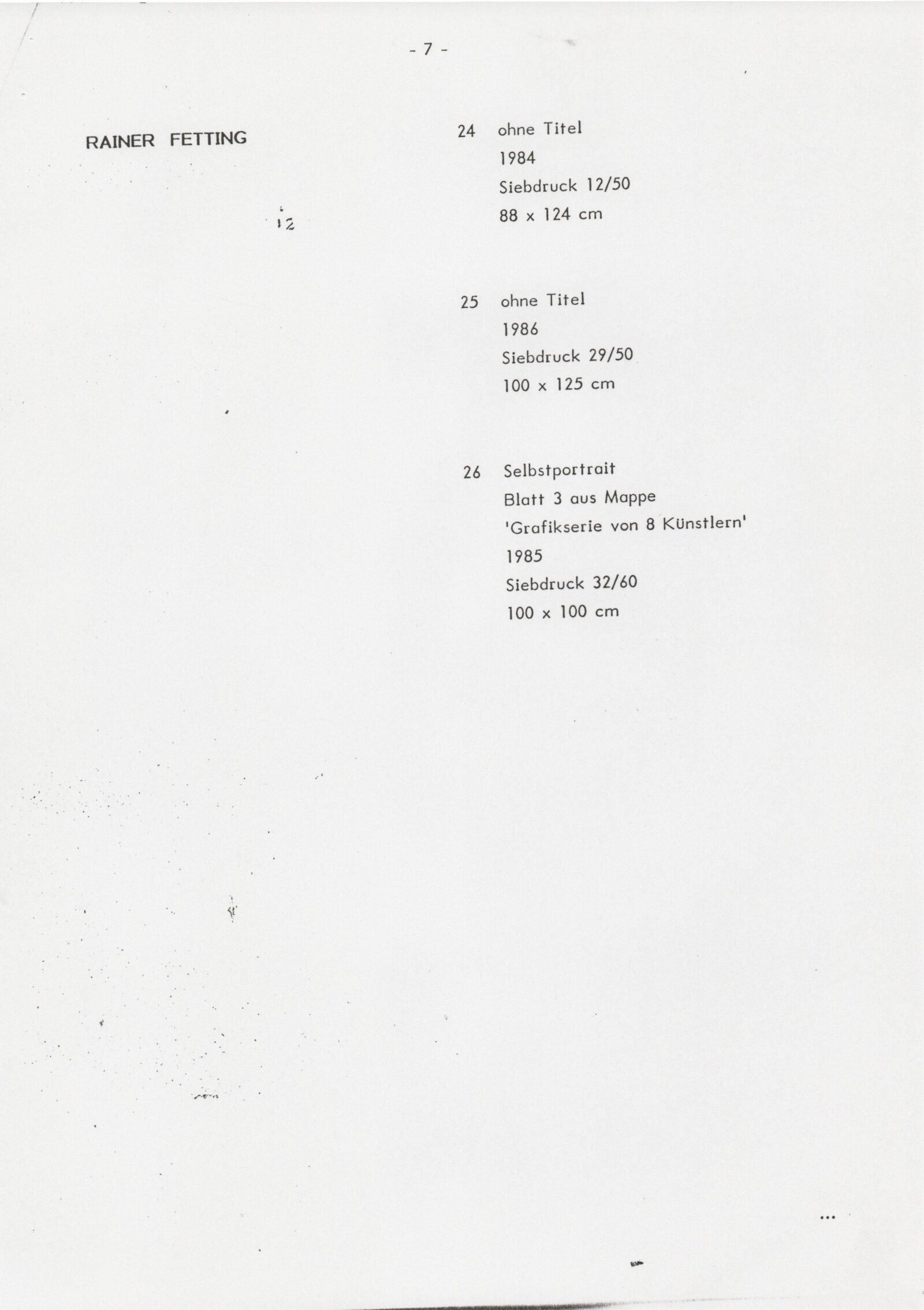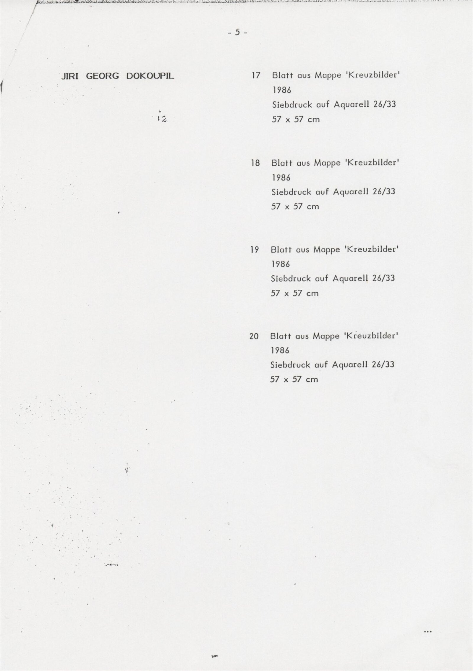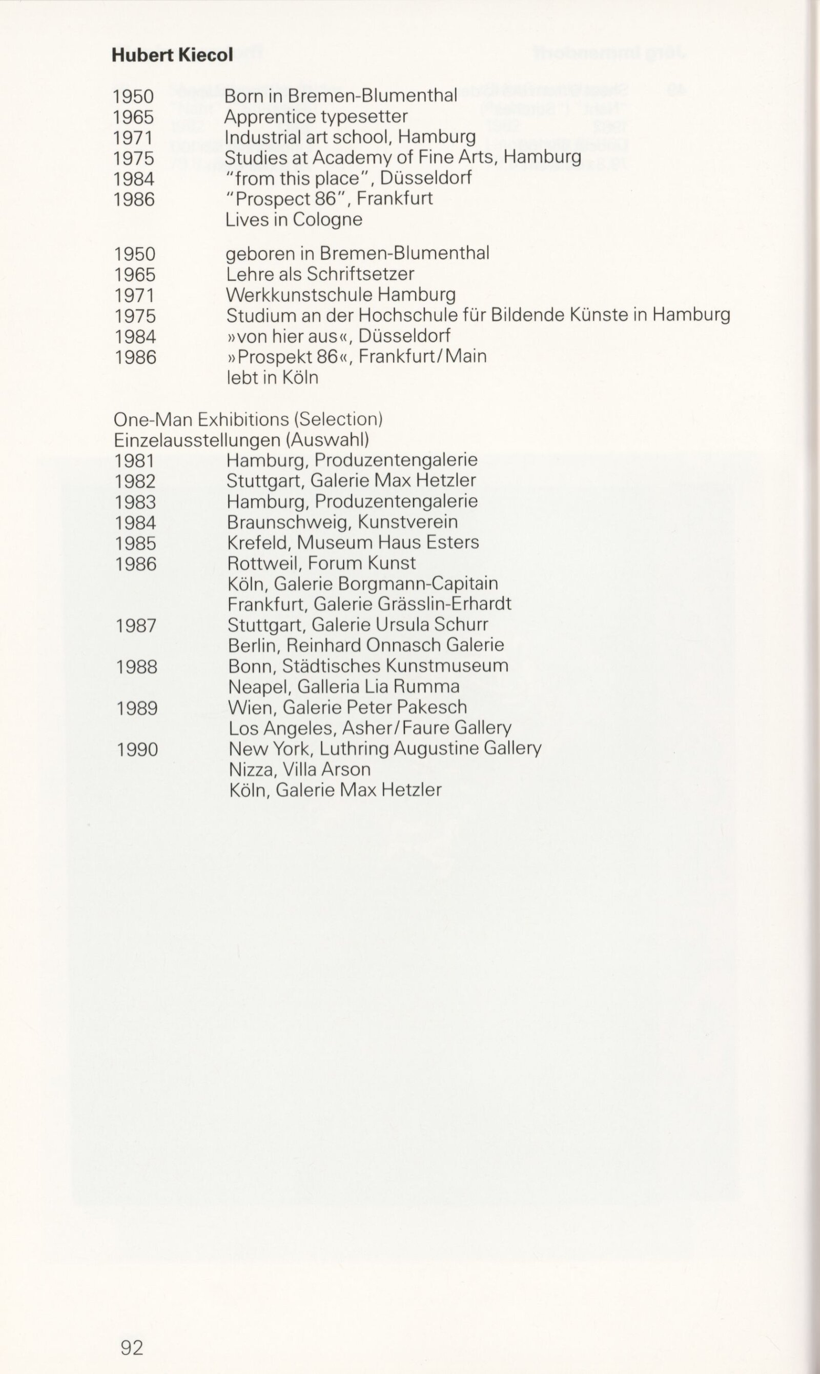 Grafika 80. let Spolkové republiky Německa: Dům umění města Brna, Galerie Jaroslava Krále, hala, 11. 6. – 18. 8. 1991 / Převzatý katalog. Graphics of the 80s Federal Republic of Germany / Text: Johannes Cladders. – Stuttgart: Institut für Auslandsbeziehungen. – 146 s., obr., životní data vystavujících, výstavy, bibliografie, název a text též německy, DU 903