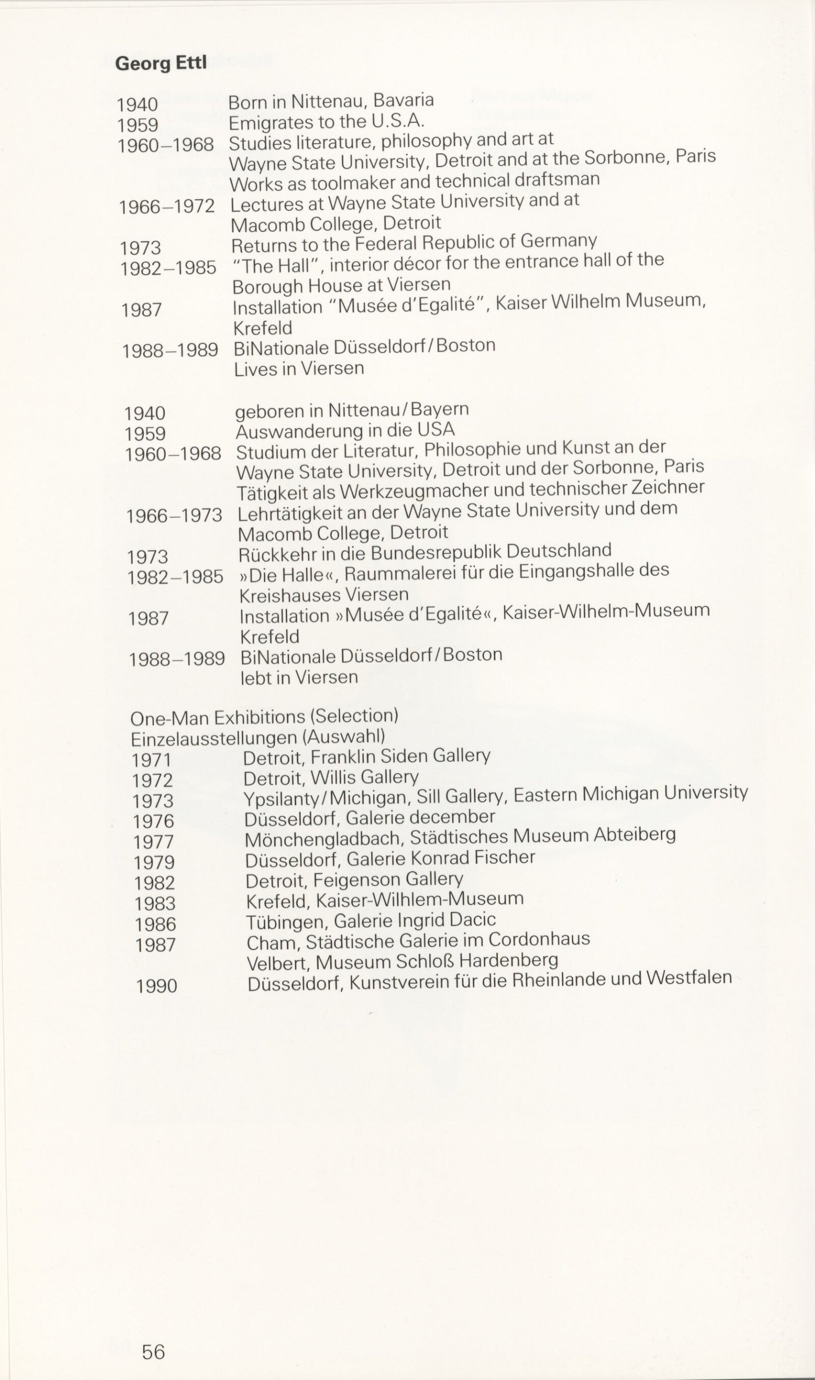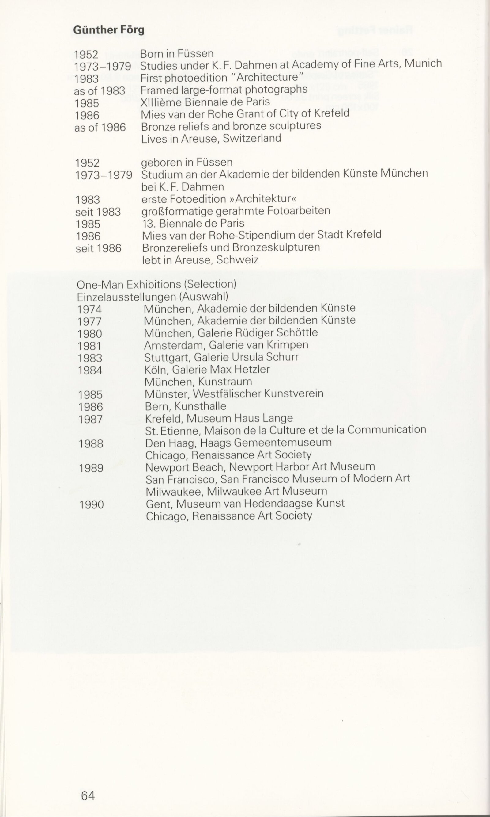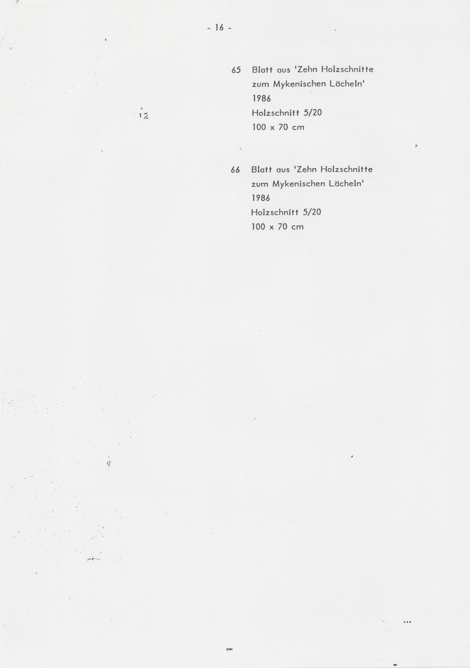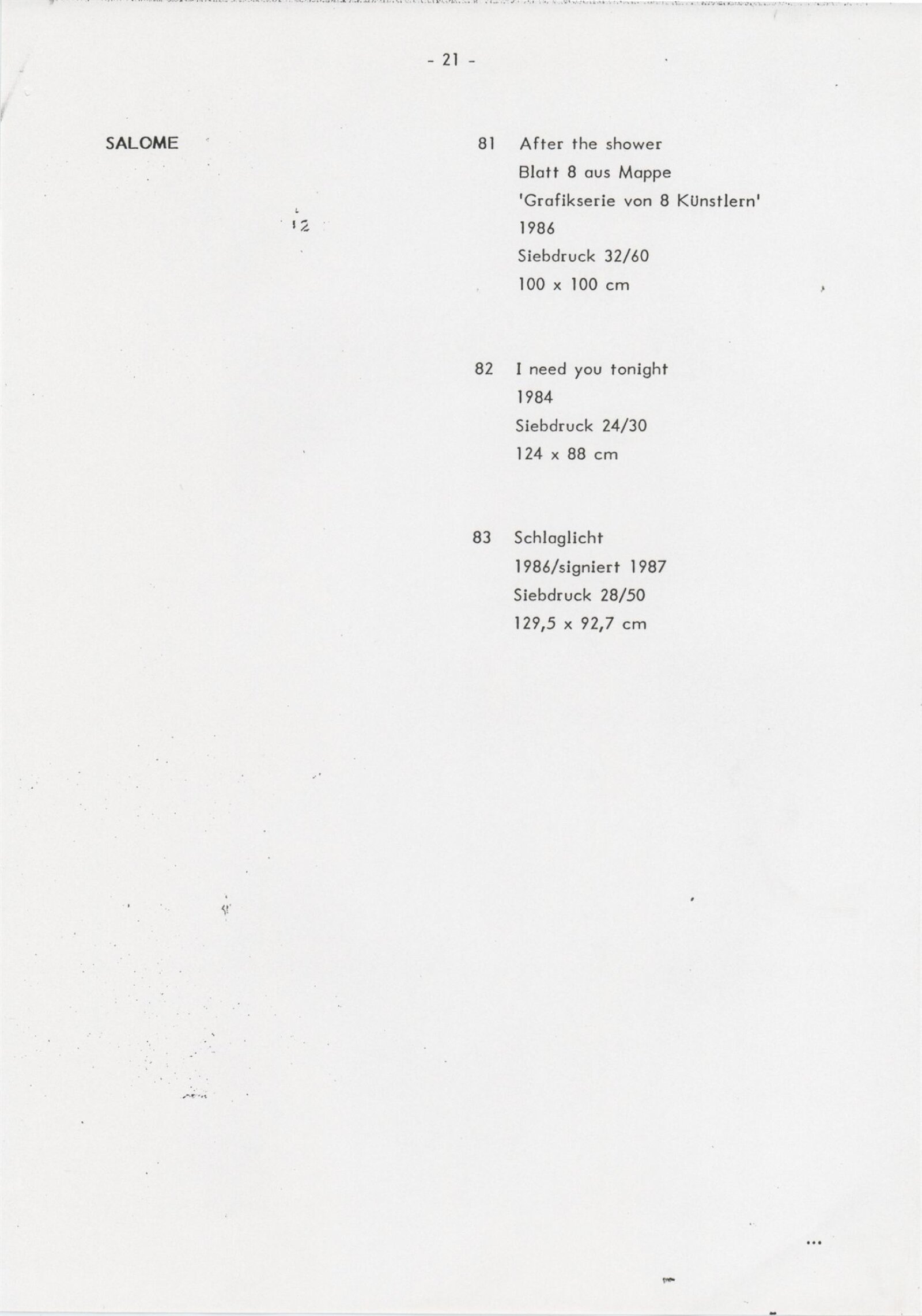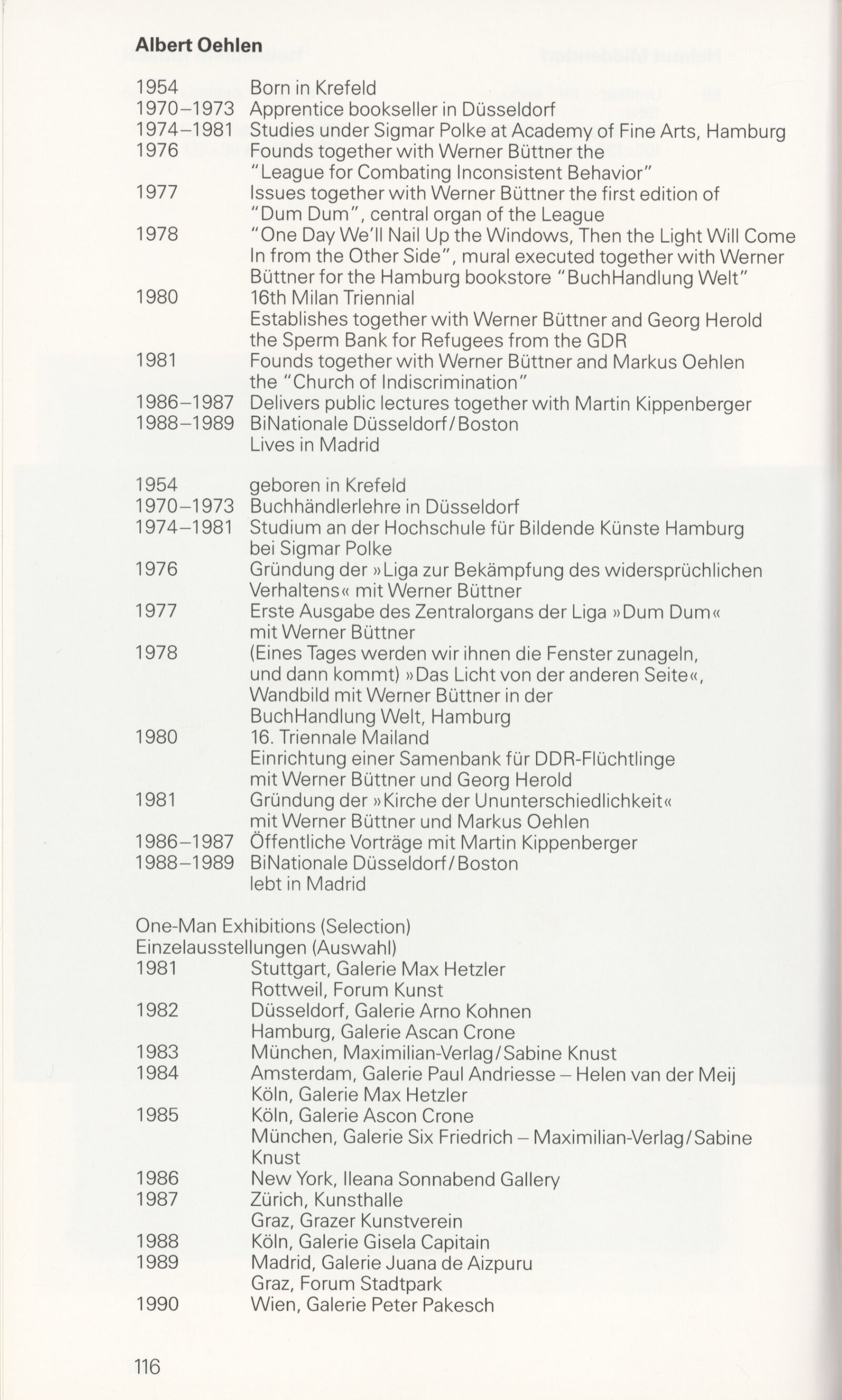 Grafika 80. let Spolkové republiky Německa: Dům umění města Brna, Galerie Jaroslava Krále, hala, 11. 6. – 18. 8. 1991 / Převzatý katalog. Graphics of the 80s Federal Republic of Germany / Text: Johannes Cladders. – Stuttgart: Institut für Auslandsbeziehungen. – 146 s., obr., životní data vystavujících, výstavy, bibliografie, název a text též německy, DU 903