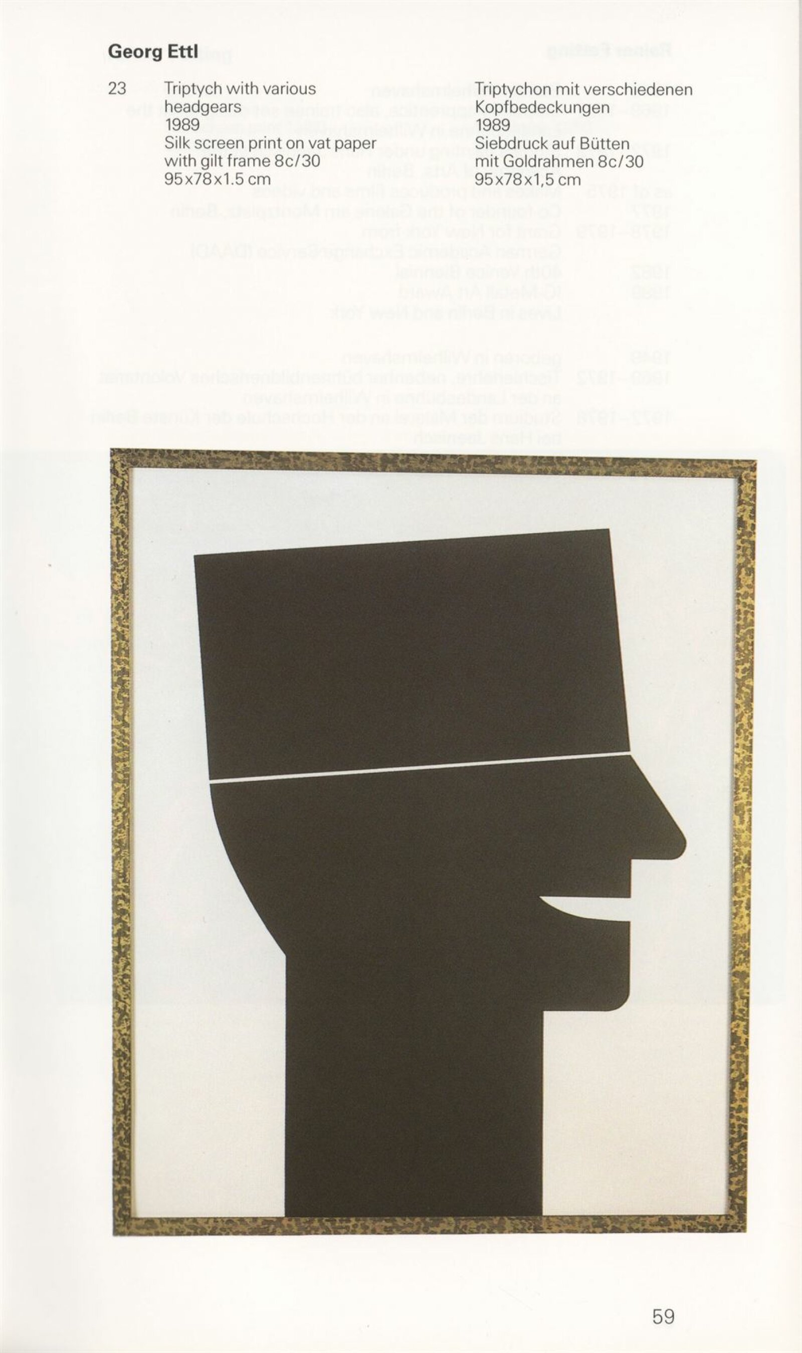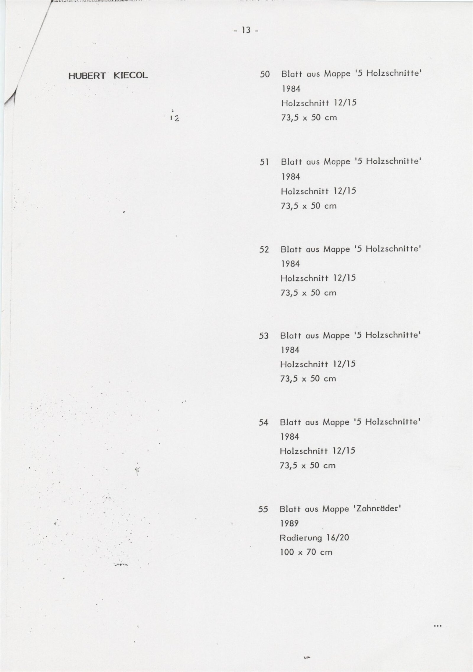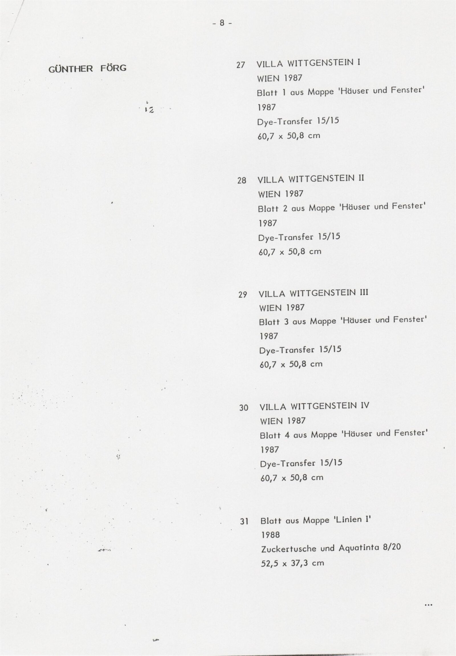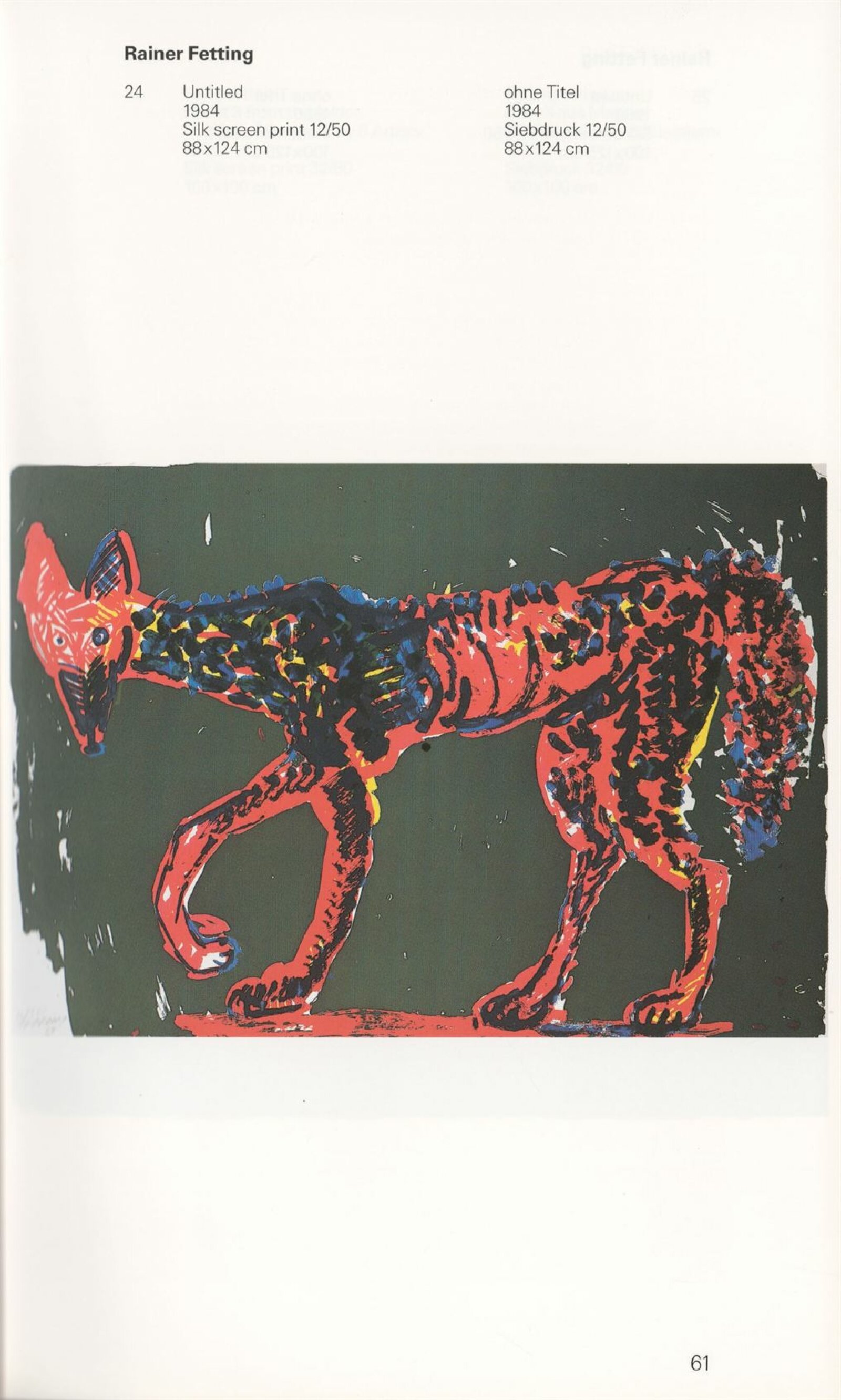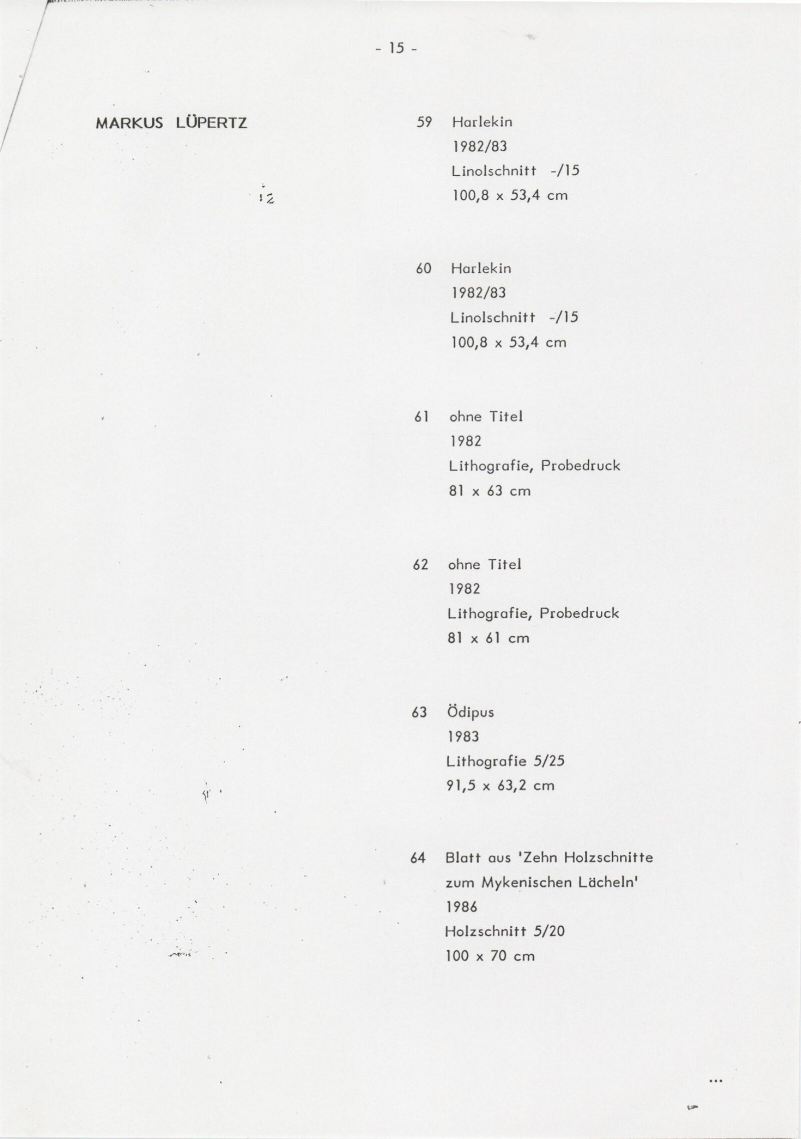Grafika 80. let Spolkové republiky Německa: Dům umění města Brna, Galerie Jaroslava Krále, hala, 11. 6. – 18. 8. 1991 / Převzatý katalog. Graphics of the 80s Federal Republic of Germany / Text: Johannes Cladders. – Stuttgart: Institut für Auslandsbeziehungen. – 146 s., obr., životní data vystavujících, výstavy, bibliografie, název a text též německy, DU 903