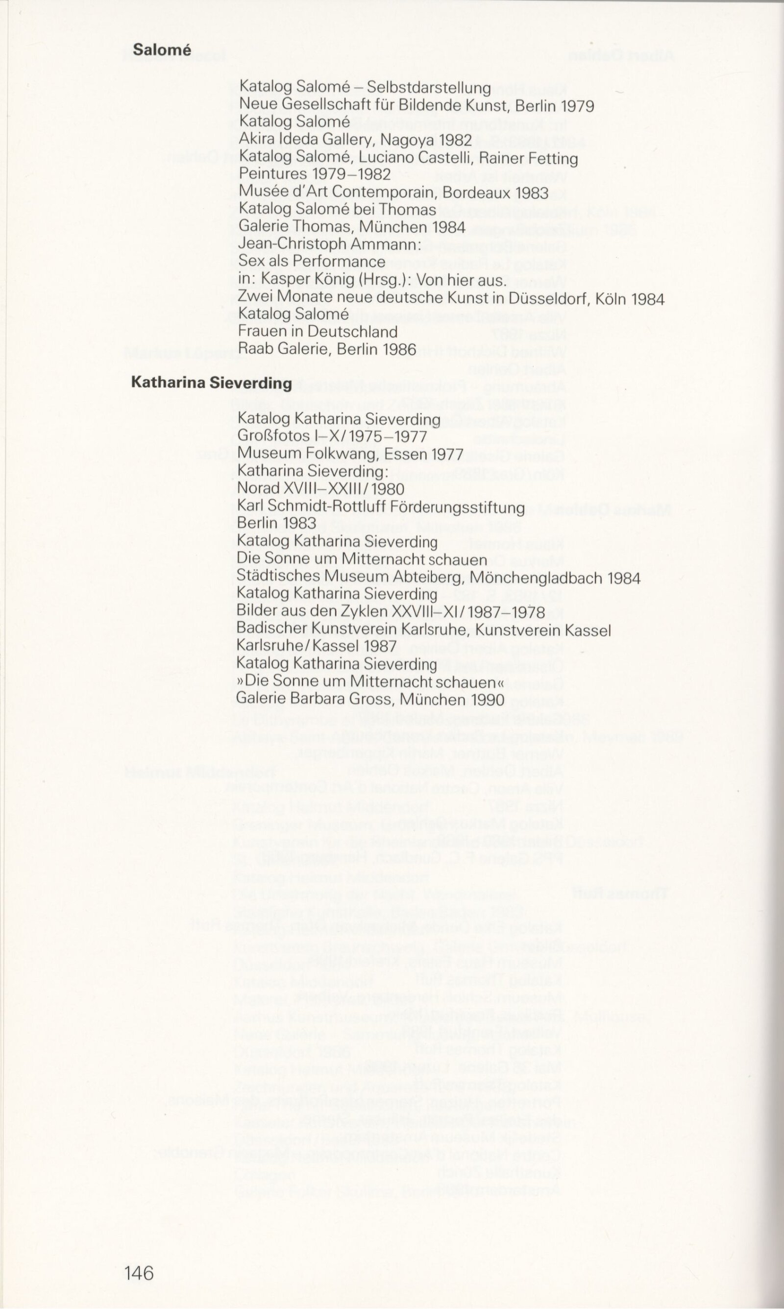 Lothar Baumgarten, Werner Büttner, Walter Dahn, Jiří Georg Dokoupil, Georg Ettl, Rainer Fetting, Günther Förg, Karl Horst Hödicke, Jörg Immendorff, Hubert Kiecol, Markus Lüpertz, Helmut Middendorf, Albert Oehlen, Markus Oehlen, Thomas Ruff, Salome, Katharina Sieverding