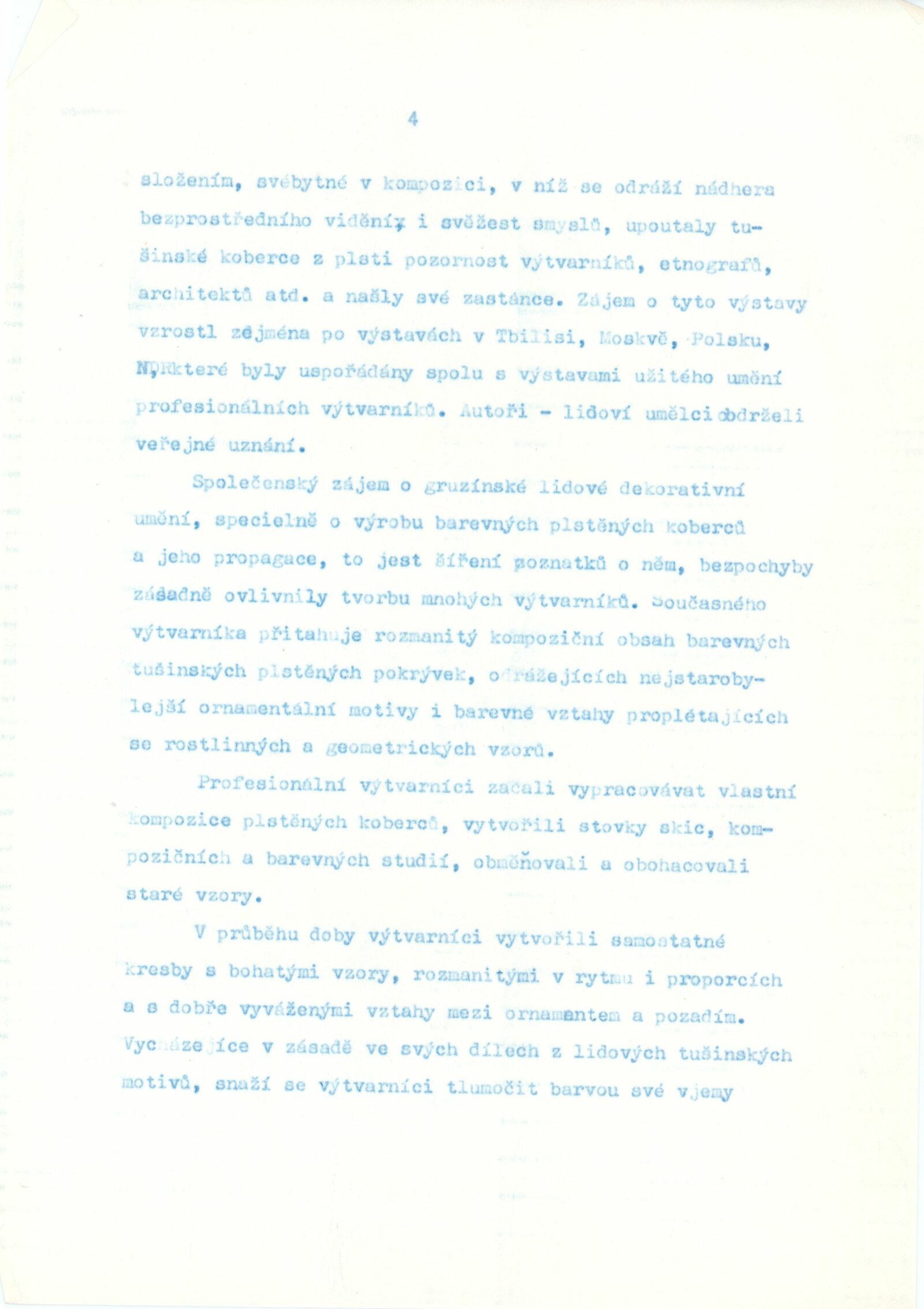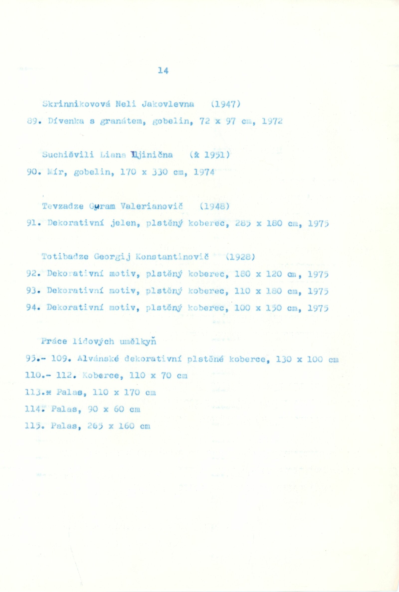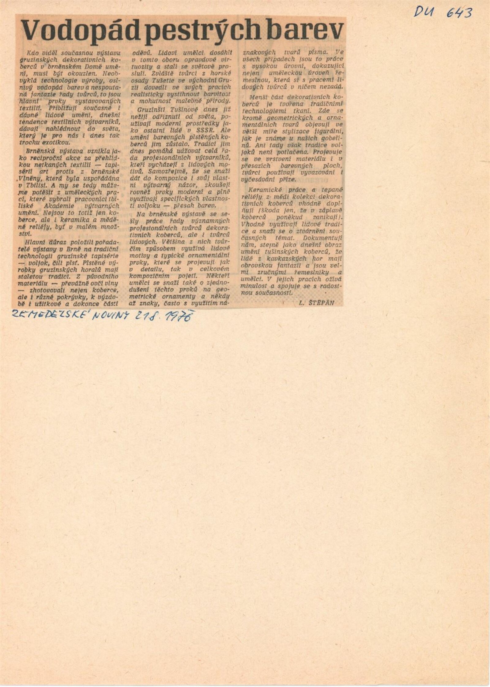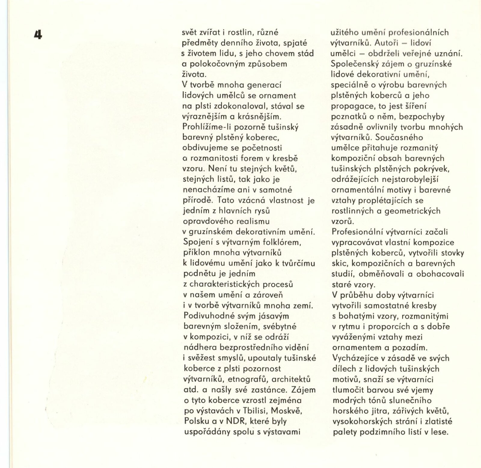Gruzínské dekorativní koberce: Dům umění města Brna, 30. 7. – 29. 8. 1976 / Text: Tbiliská akademie výtvarných umění. – Brno: DUmB, 1976. – 16 s., obr., DU 643. – MZK; MG